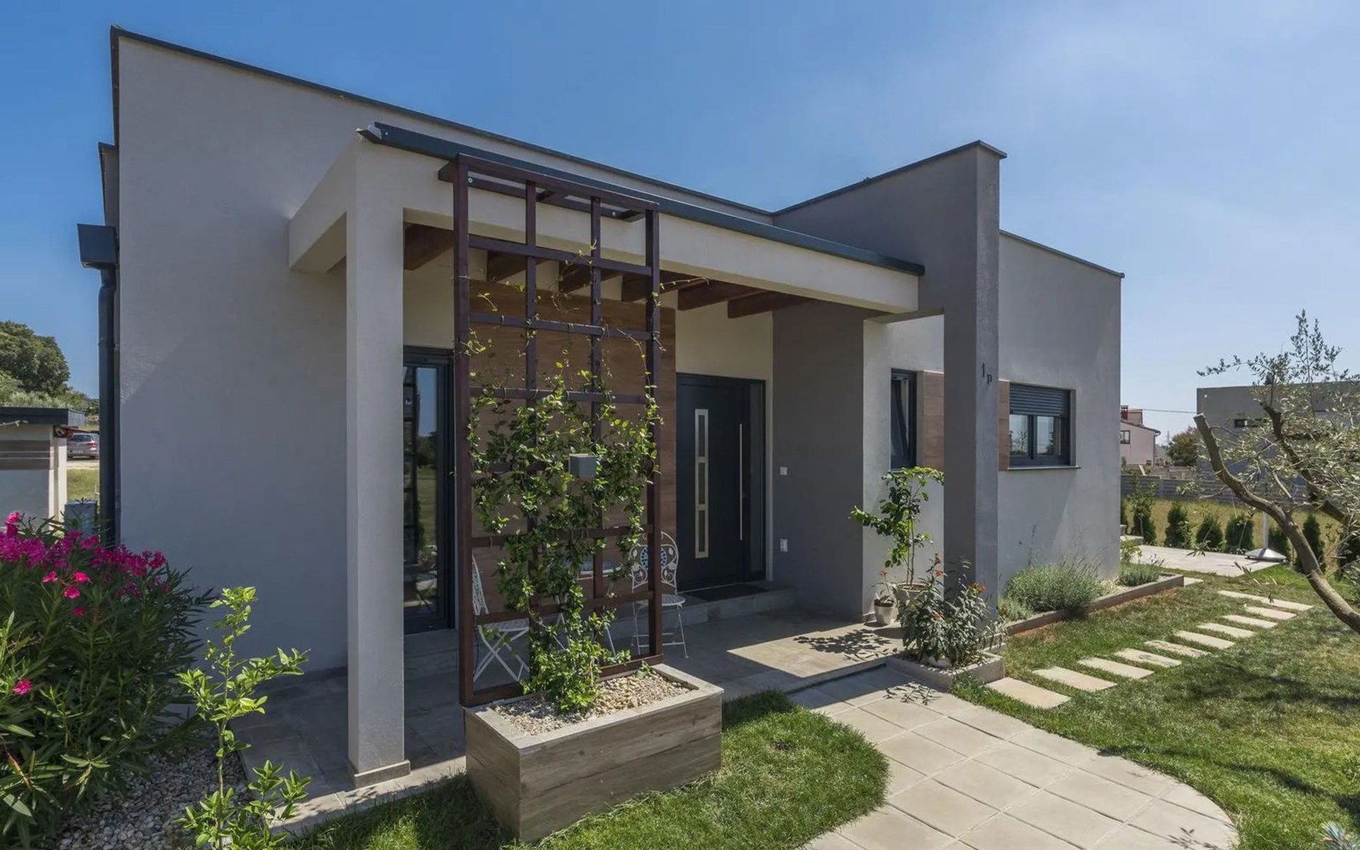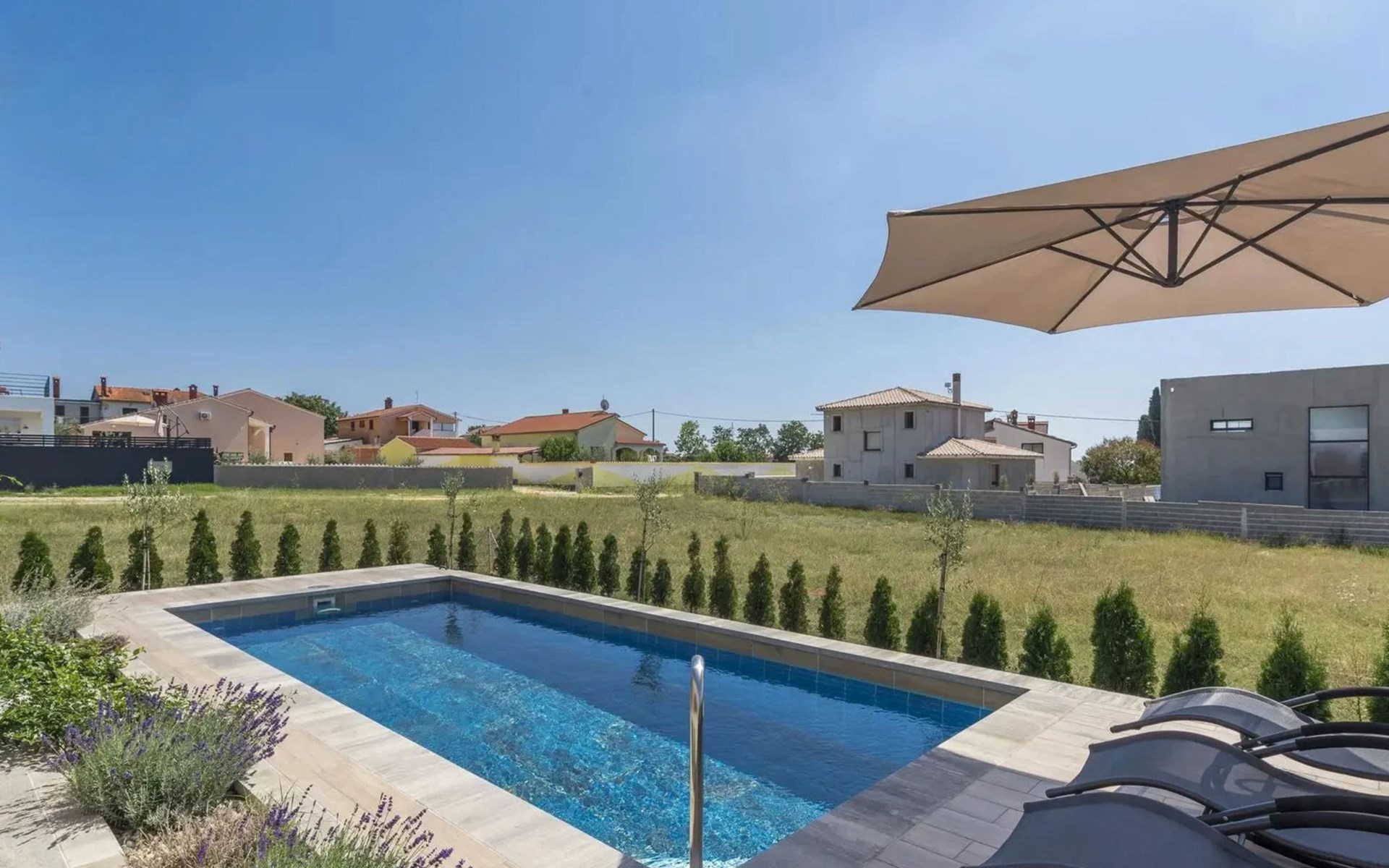 Galižana 5 km from Pula: Modern, cosy house "Ljiljana". 1 km from the centre of Galižana, 5 km from the sea, 5 km from the beach. Private: property 450 m2 (fenced), well-kept garden with wildlife garden and trees, swimming pool angular (8 x 3 m, depth 140 cm, seasonal availability: 01.May. - 01.Oct.) with internal staircase. Outdoor shower, terrace (20 m2), garden furniture, barbecue. In the house: internet access, air conditioning, washing machine. Parking (for 2 cars) at the house on the premises. Shop 400 m, restaurant 3 km, café 400 m, bus stop 1 km, pebble beach 5 km, rocky beach 5 km. Please note: airfield 8 km from the property.