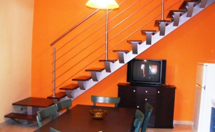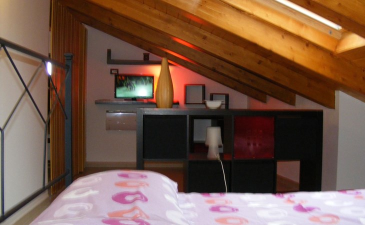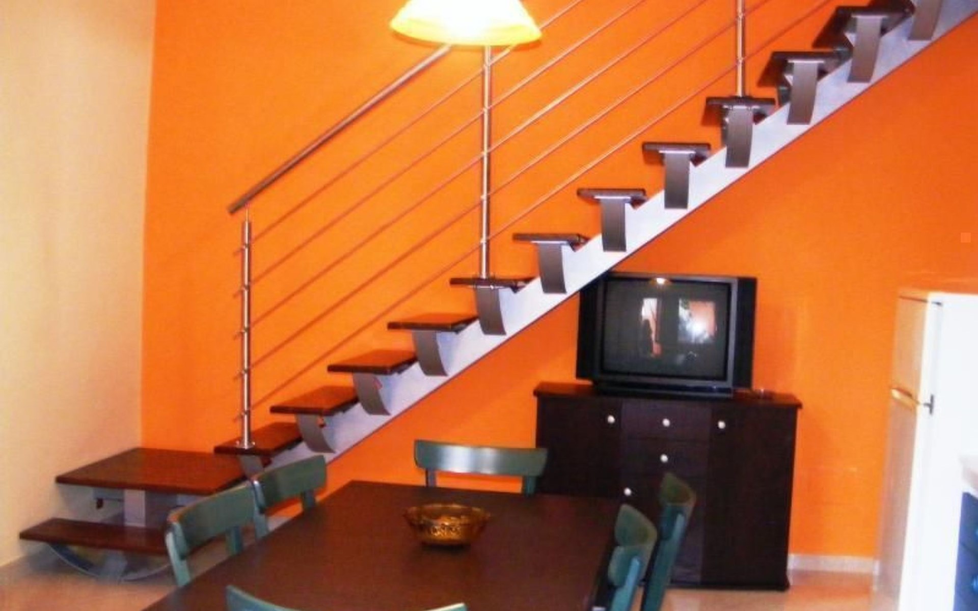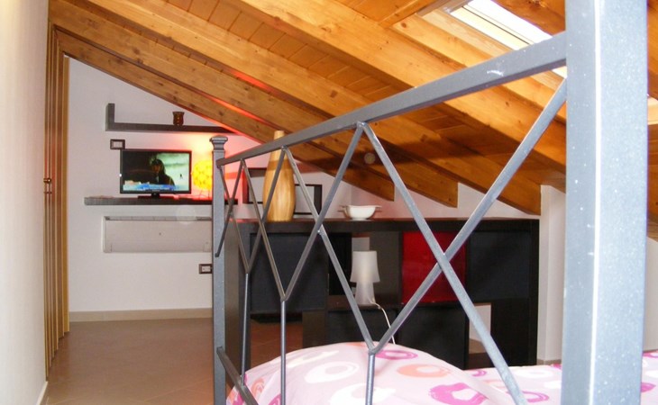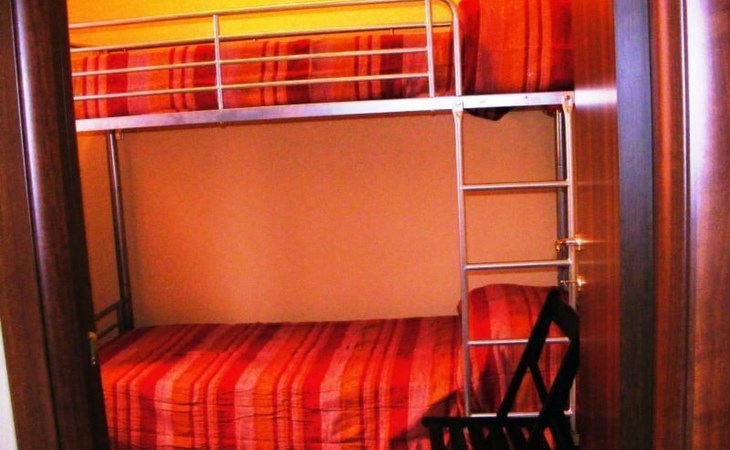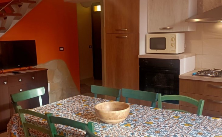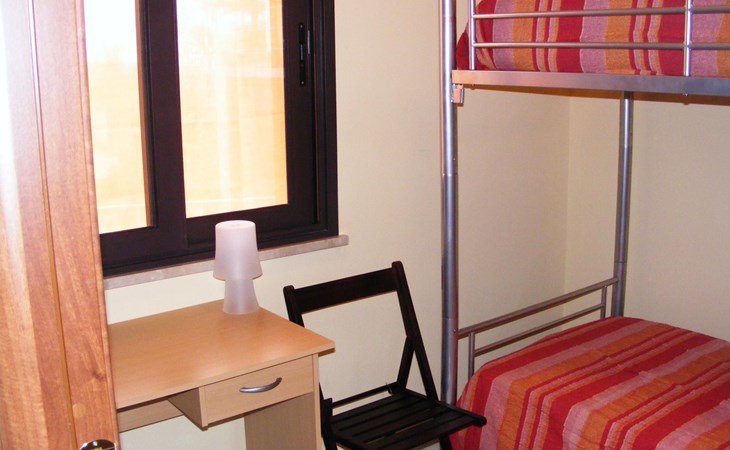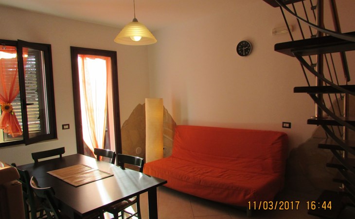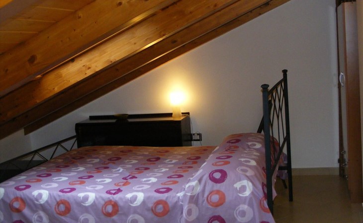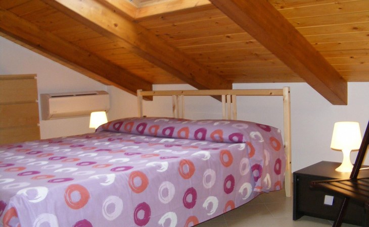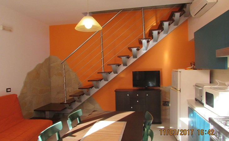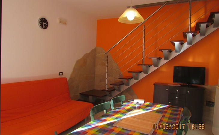 The accommodation offers a fully equipped kitchen, a double room and another smaller room with a bunk bed. On the ground floor there is a bathroom. On the upper floor there are two more sleeping areas separated by a wall of shelves and a bathroom.
