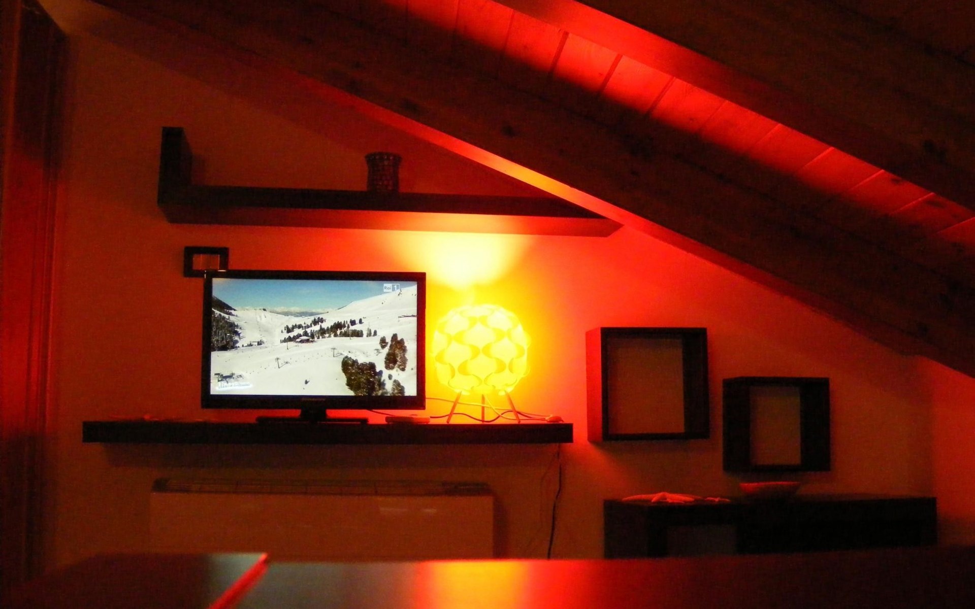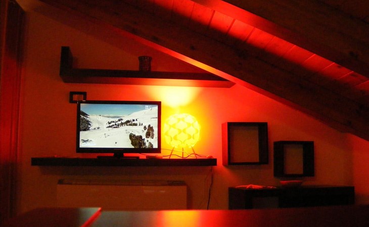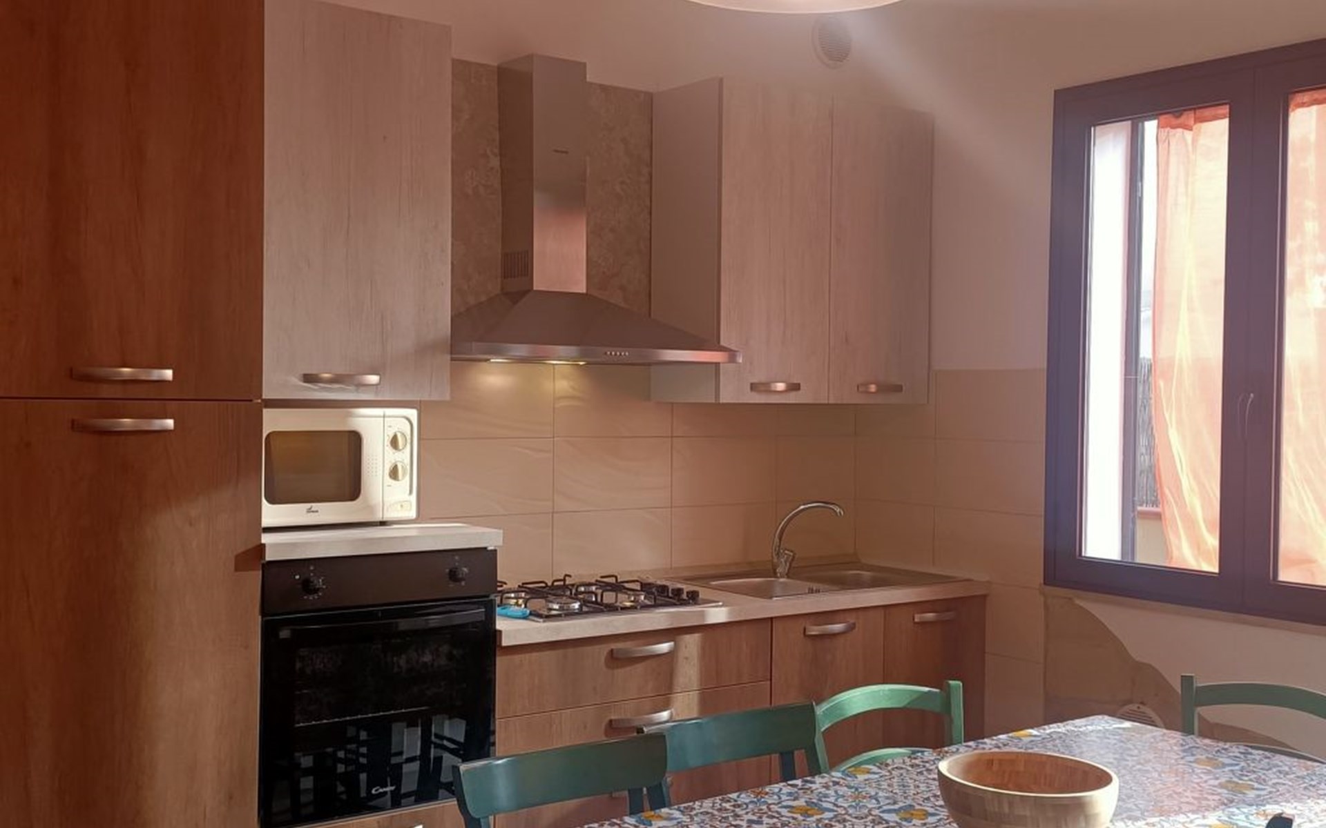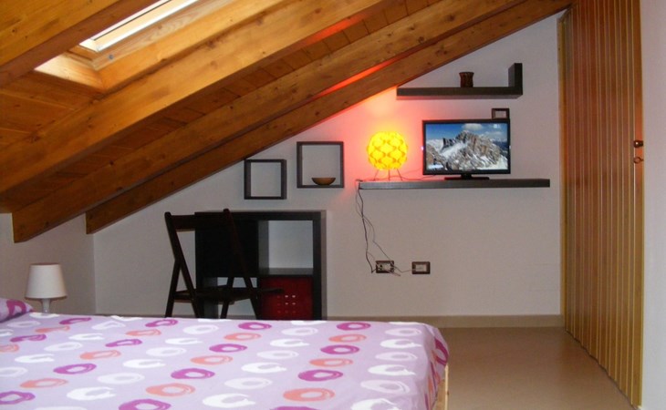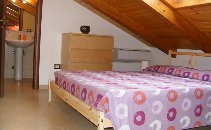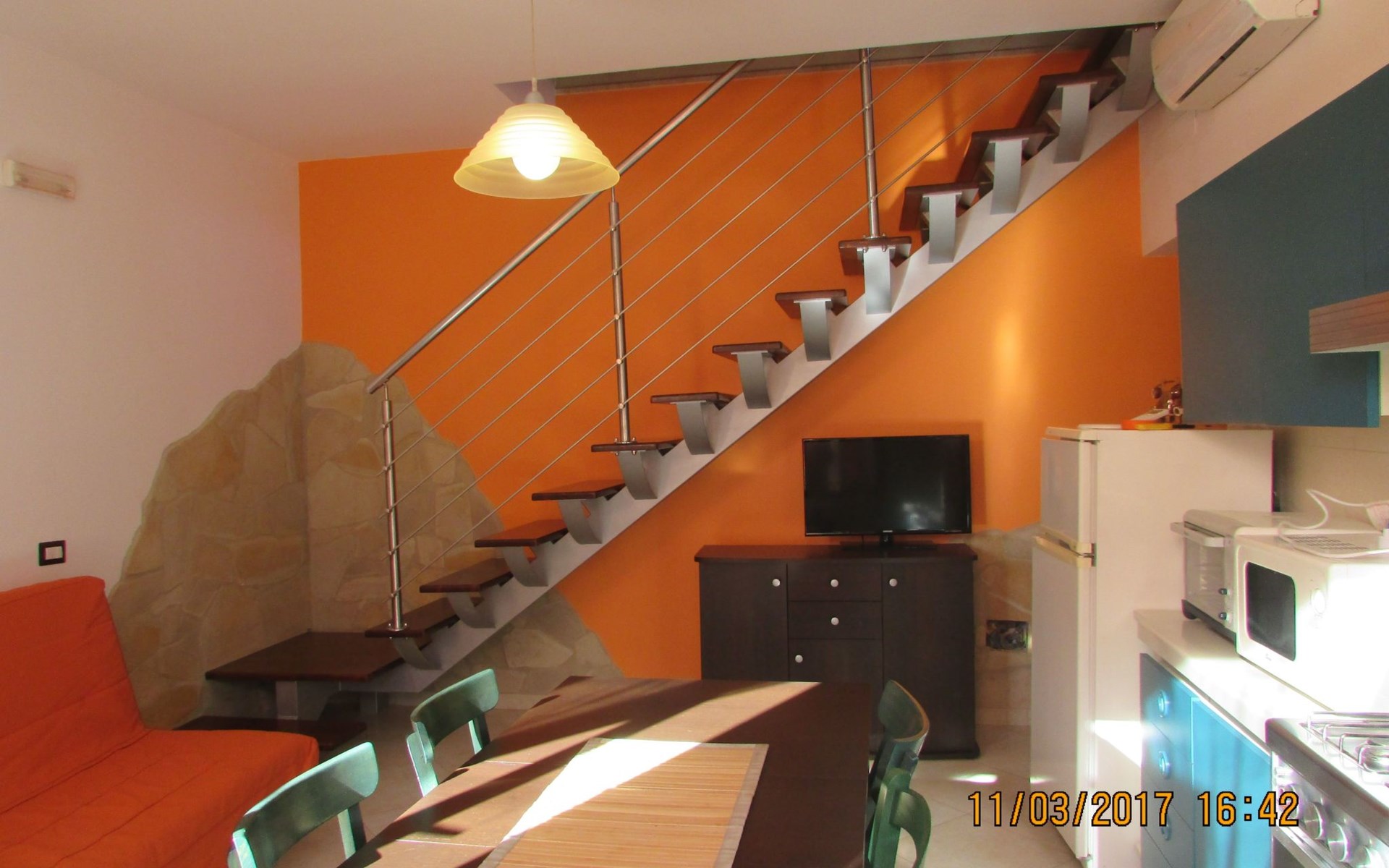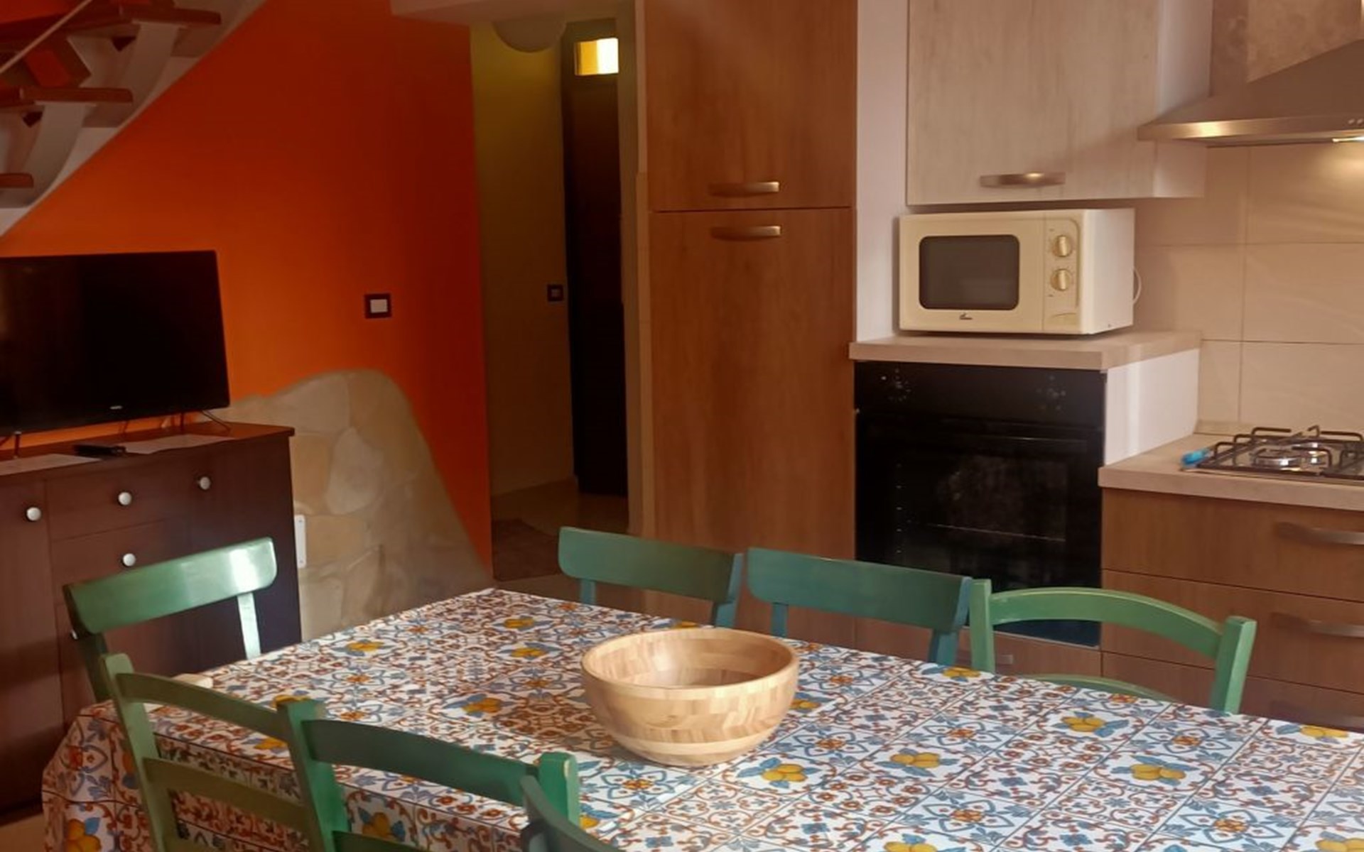 The accommodation offers a fully equipped kitchen, a double room and another smaller room with a bunk bed. On the ground floor there is a bathroom. On the upper floor there are two more sleeping areas separated by a wall of shelves and a bathroom.