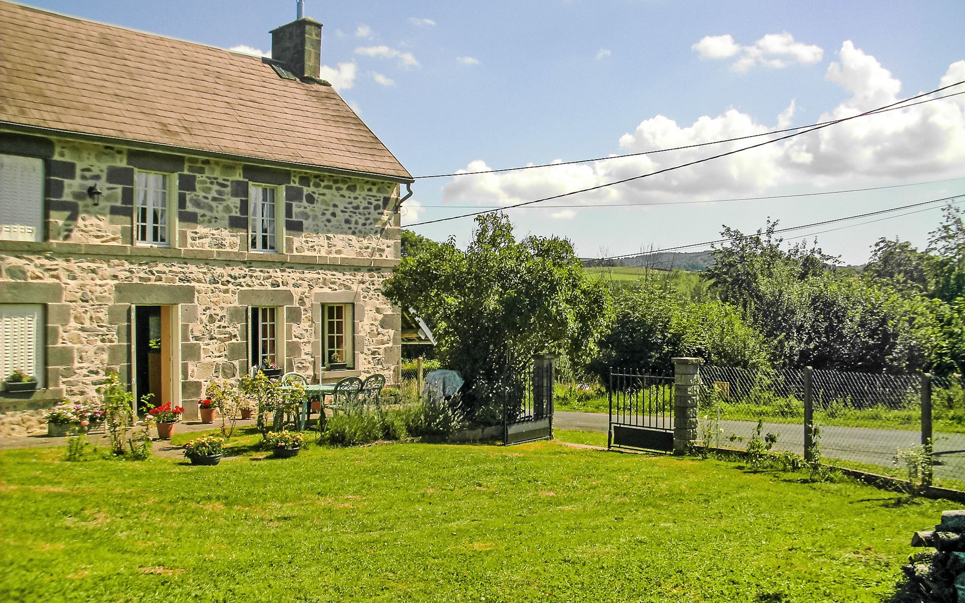 Small single-family house "O'Petit Bonheur", surrounded by trees and fields. On the outskirts, 3 km from the centre. Private: park (fenced) with lawn and trees, parking on the premises, public parking on the road. Shop 6 km, supermarket 3 km, restaurant 3 km, bus stop 3 km, indoor swimming pool 5 km. Riding stable 10 km. Nearby attractions: Vulcania, Volvic, La Vallée de la sioule. Please note: car recommended. Motorway 10 km from the property.
