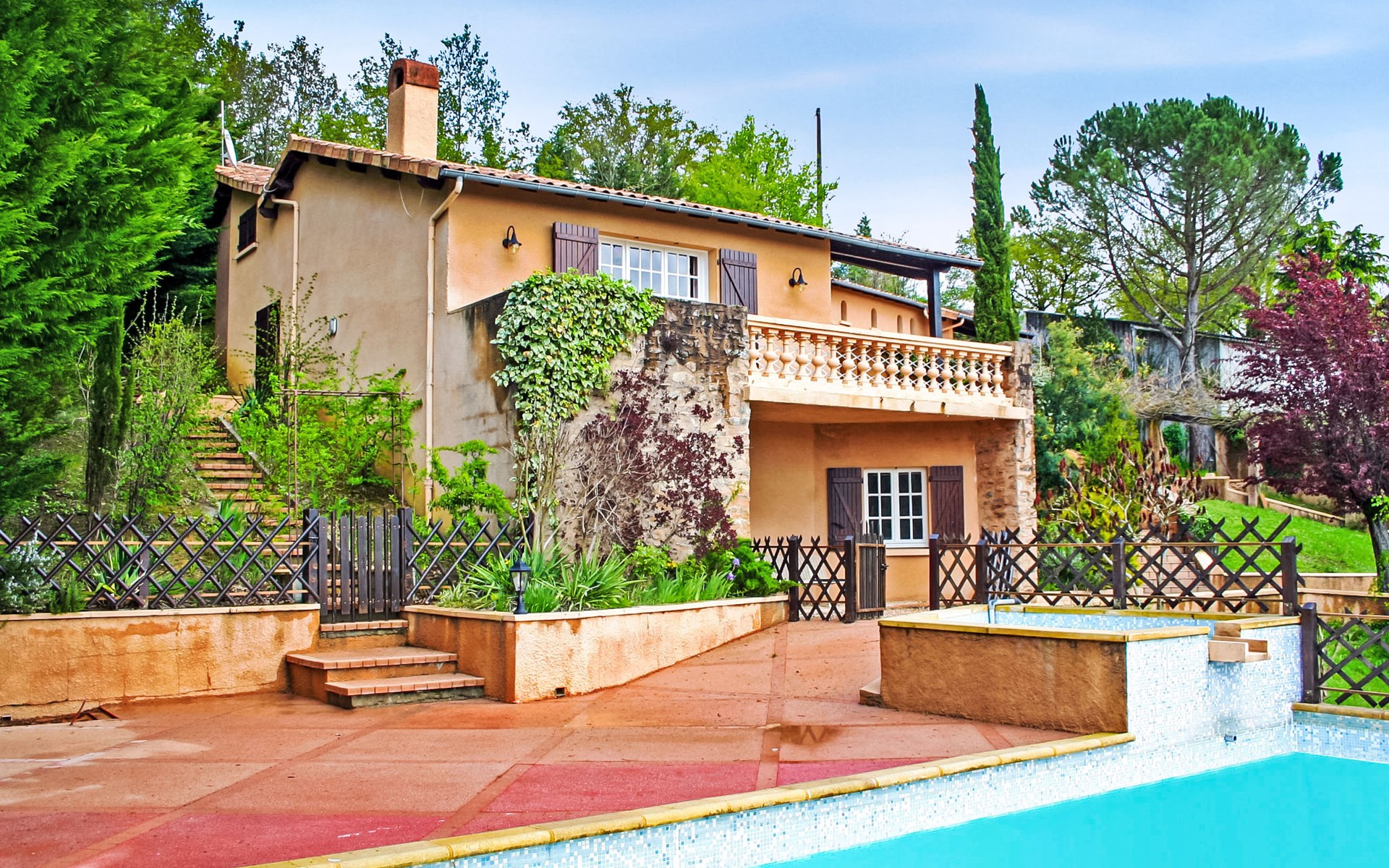 Single-family house "Fromental". 400 m from the centre of Bagnac-sur-Célé, 16 km from the centre of Figeac, 50 km from the centre of Aurillac, on a slope, in the residential district, in a cul-de-sac. Private: terraced garden, 4'000 m2 with trees, swimming pool fenced (5 x 10 m, depth 160 cm, seasonal availability: 15.May. - 15.Sep.). Paddling pool, table tennis. Stepped path (20 steps) to the house. Parking at the house on the premises, single garage. Shop, restaurant 400 m, bus stop "Figeac" 15 km. Tennis 1 km. Nearby attractions: Gouffre de Padirac 50 km, Rocamadour 60 km, Sarlat 100 km, Grottes de Lascaux 130 km. Please note: car recommended.
