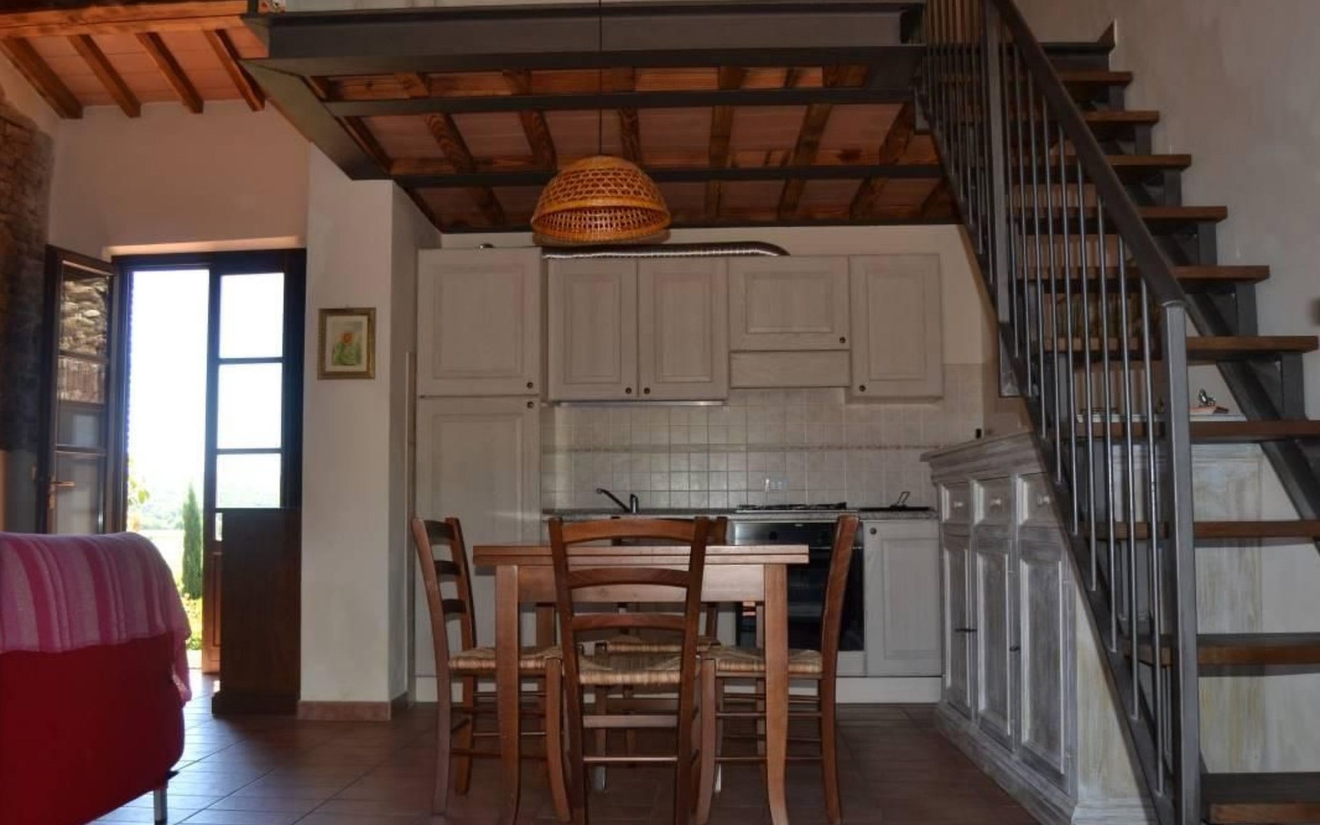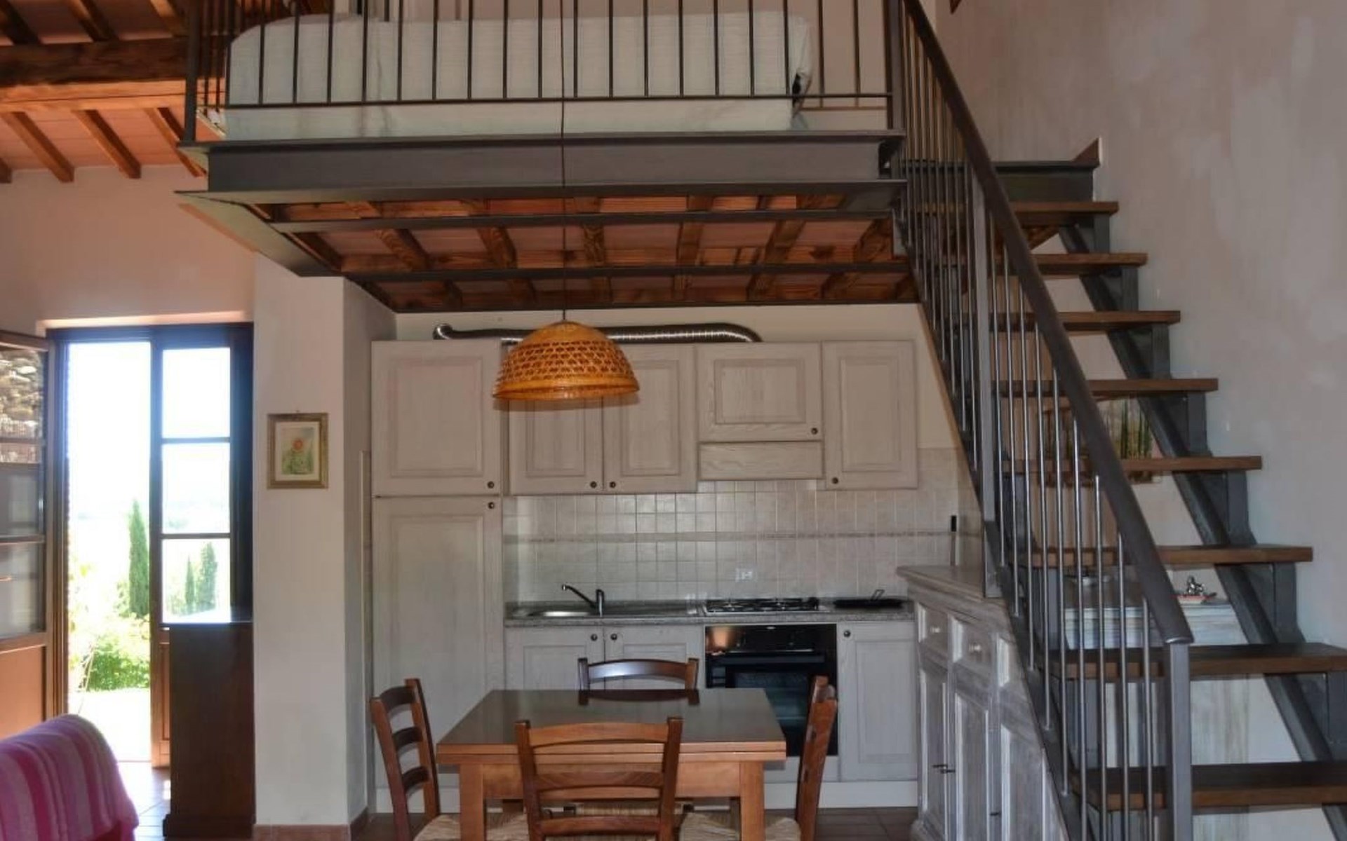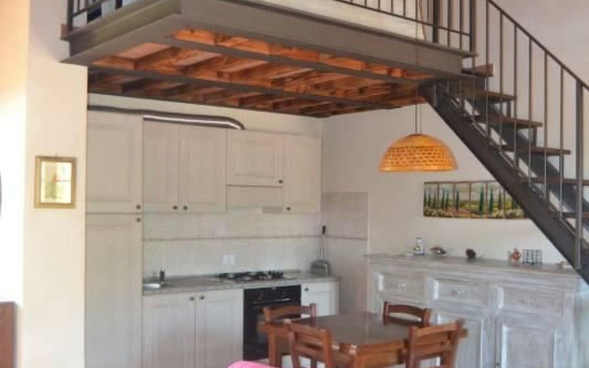 ONE BEDROOM APARTMENT SUPERIOR sq. mt. 50, occupancy 2/4 people is a quiet and panoramic apartments on the ground floor with a wide garden equipped with table, chairs, parasol and barbecue. The apartment has a large living room with dining area and kitchenette (it has 4-zone hob, oven, fridge and freezer, as well as all the necessary kitchenware); TV set and sofa bed; double bedroom; bathroom with shower. Through a staircase in the living room you can access the mezanine floor with 2 more single beds. It is equipped with washing machine, and air conditioning.