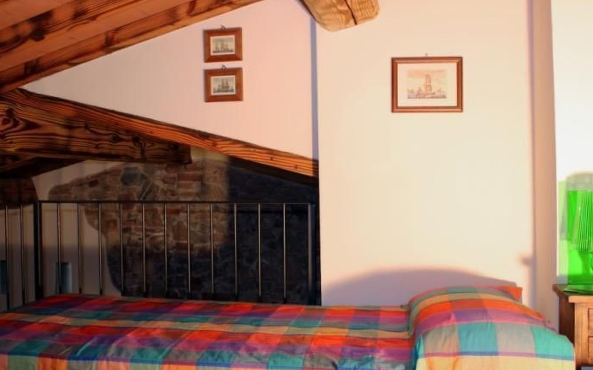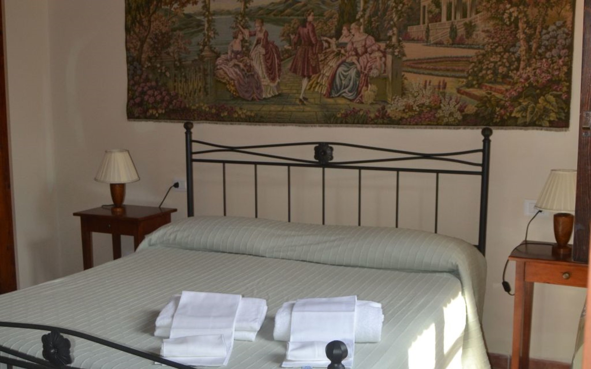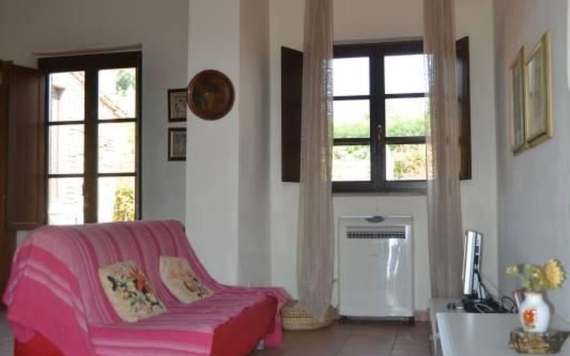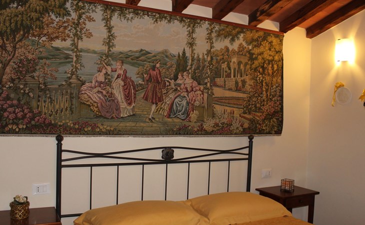 ONE BEDROOM APARTMENT SUPERIOR sq. mt. 50, occupancy 2/4 people is a quiet and panoramic apartments on the ground floor with a wide garden equipped with table, chairs, parasol and barbecue. The apartment has a large living room with dining area and kitchenette (it has 4-zone hob, oven, fridge and freezer, as well as all the necessary kitchenware); TV set and sofa bed; double bedroom; bathroom with shower. Through a staircase in the living room you can access the mezanine floor with 2 more single beds. It is equipped with washing machine, and air conditioning.