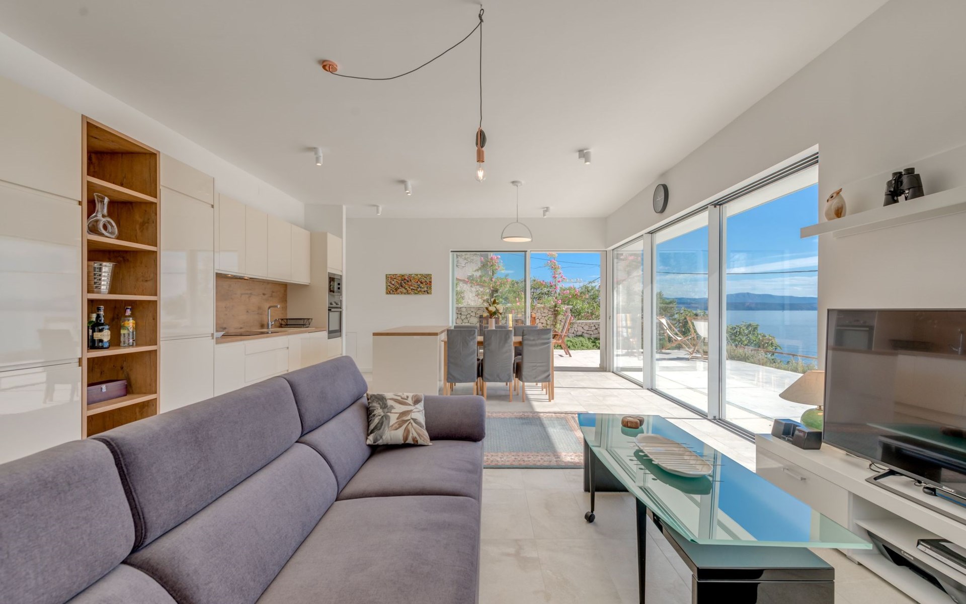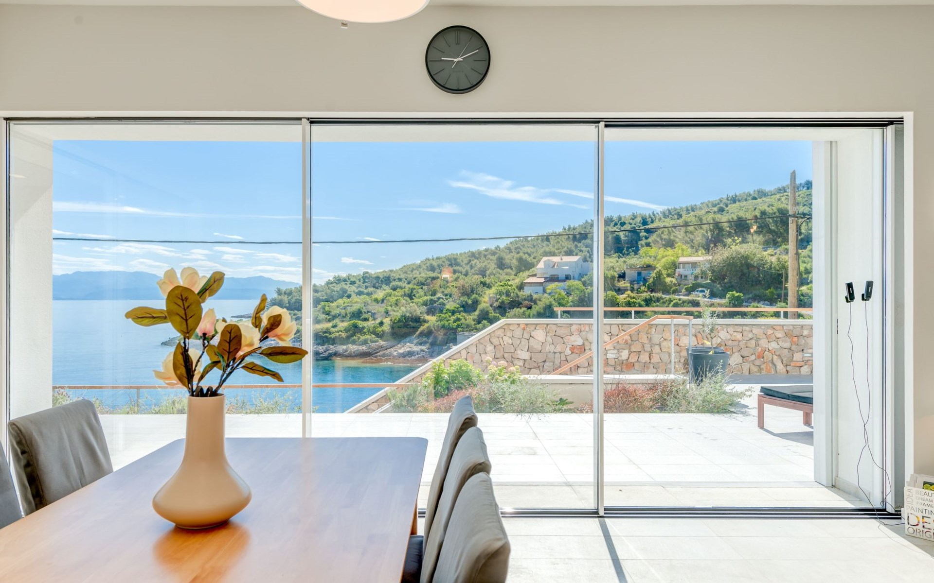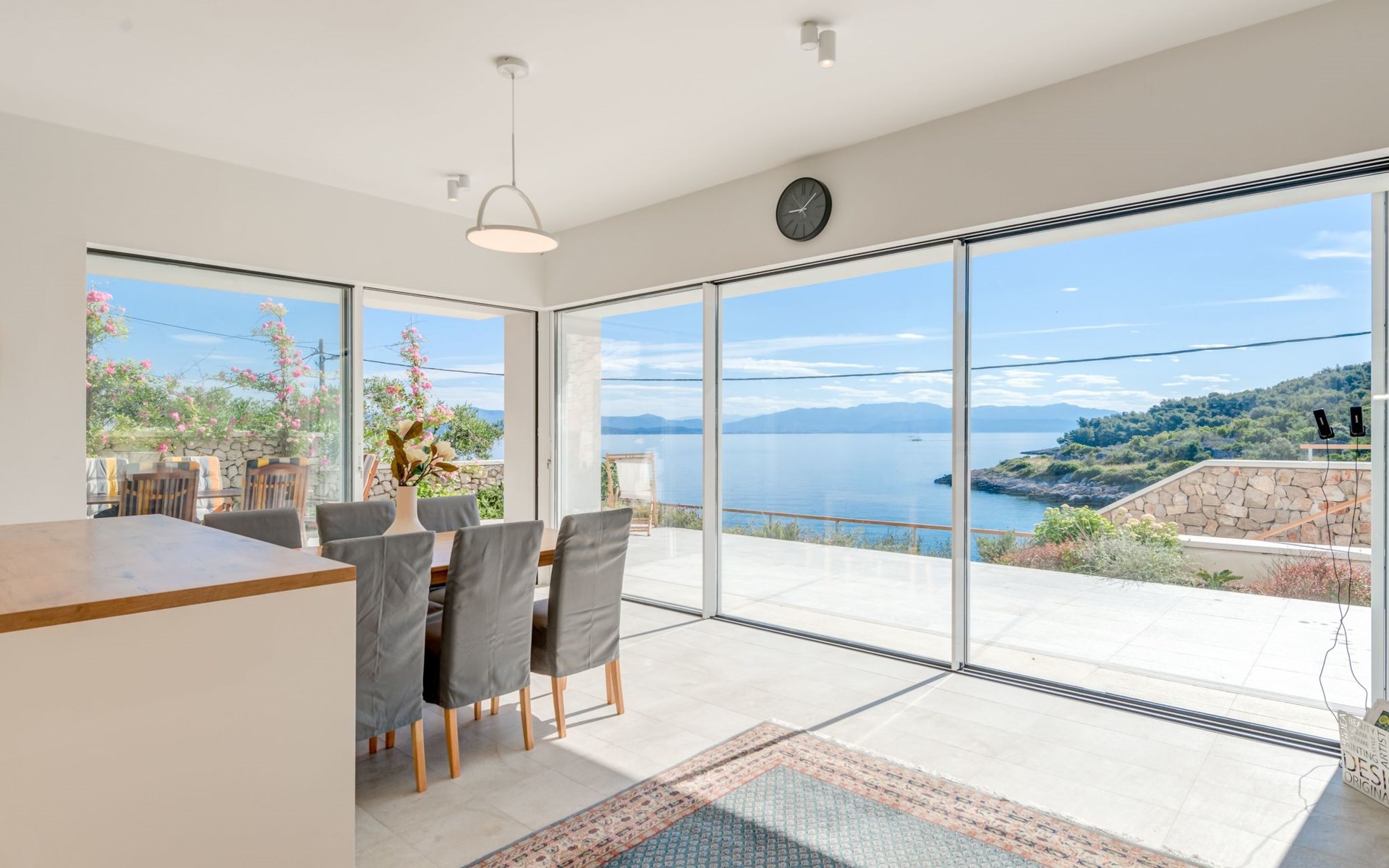 The house features 4 beautifully decorated bedrooms and 3 bathrooms, designed to offer comfort and luxury. The living room is a cozy space with a fireplace, perfect for those cooler evenings. The property is fully air-conditioned and equipped with modern amenities, including a TV, WiFi, dishwasher, microwave, kettle and coffee machine for your convenience. The house also provides a washing machine, iron and hairdryer, ensuring all your needs are catered for.