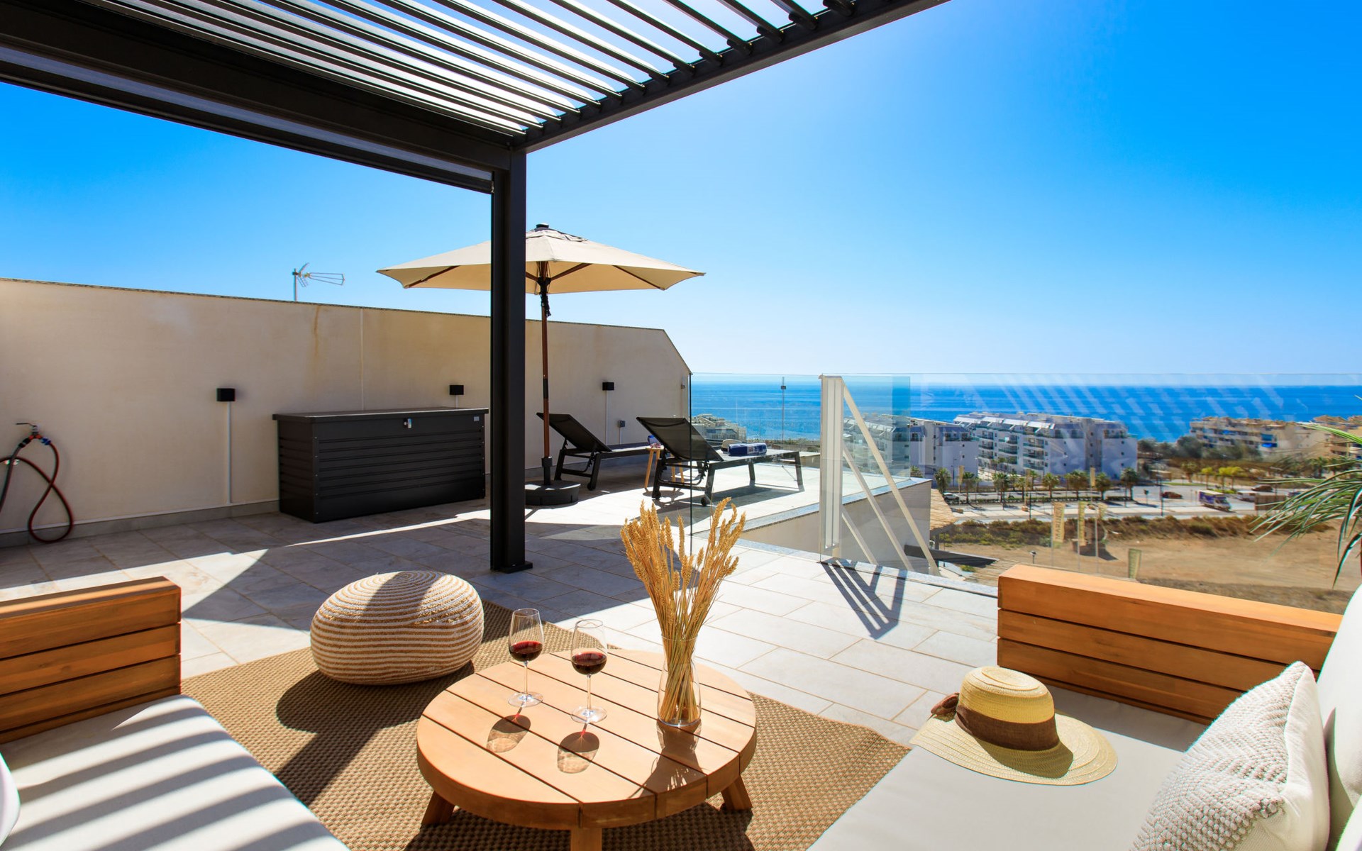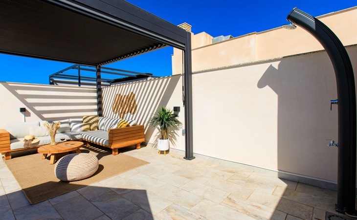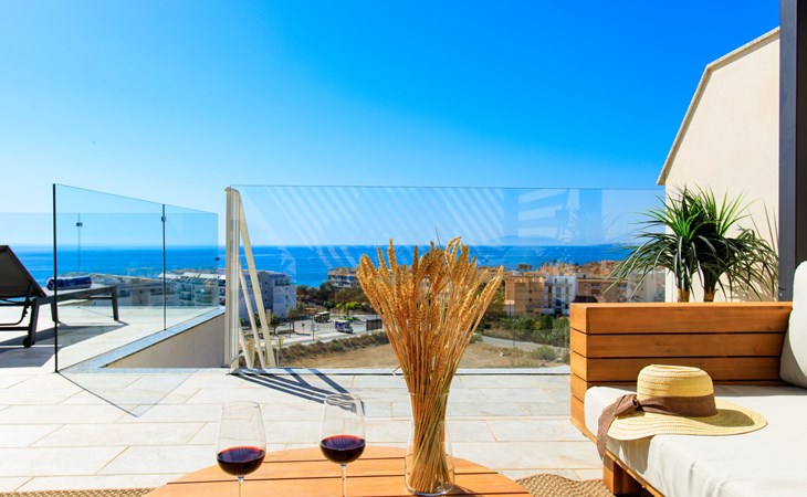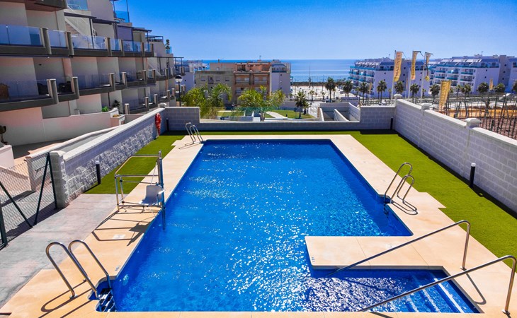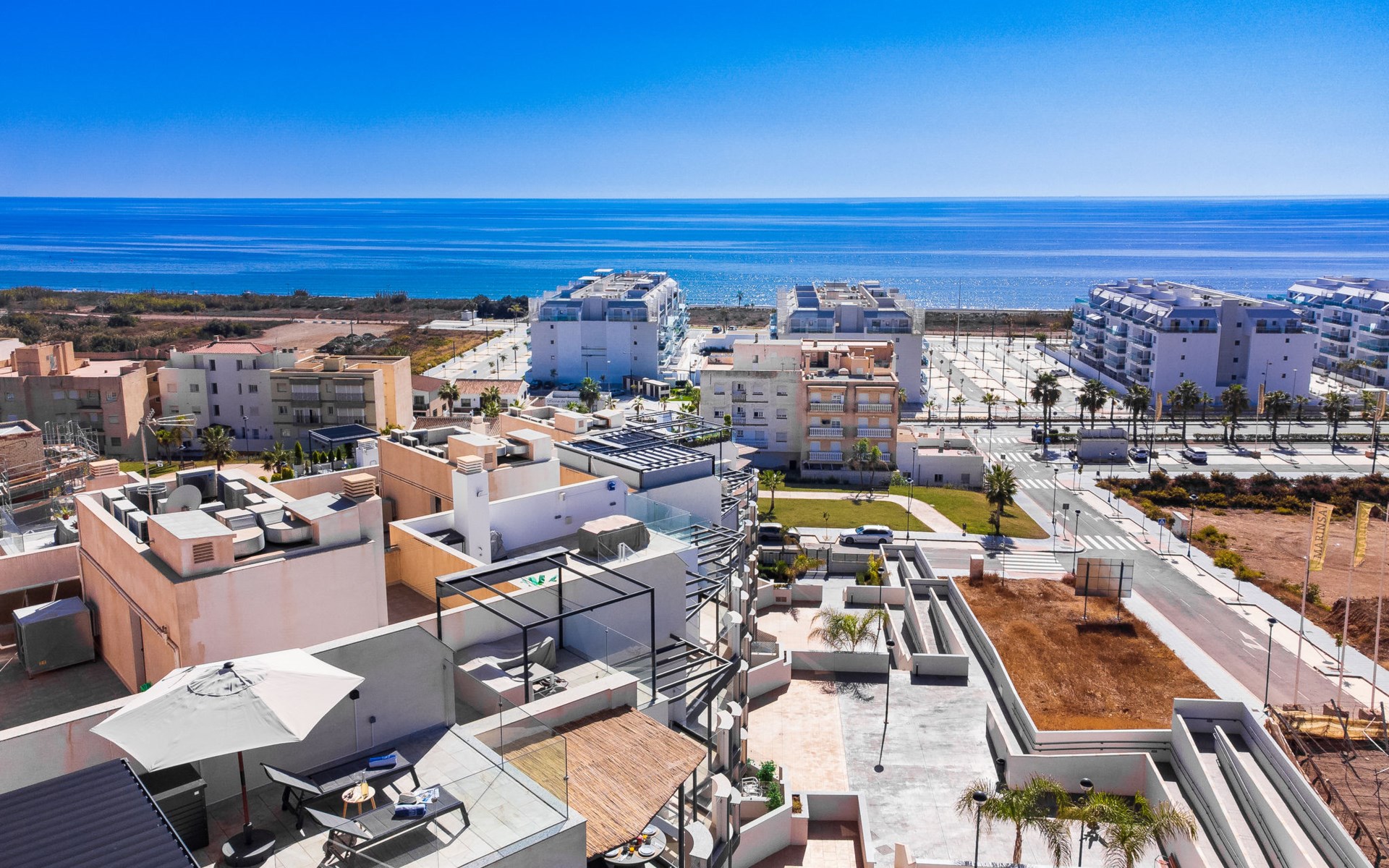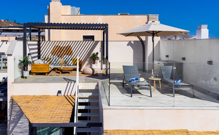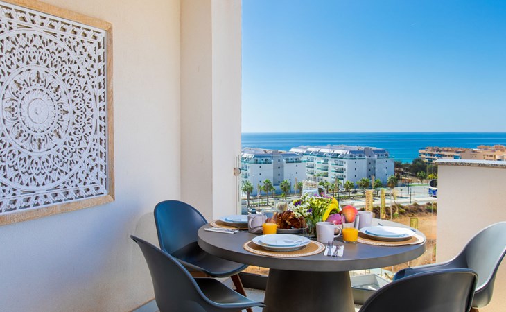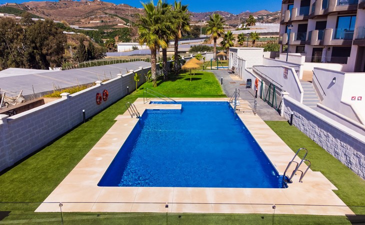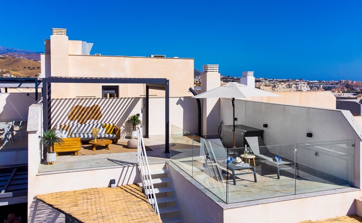 Torrox Costa: The property has: Wifi, community pool, air conditioning / hot air heating, smart tv and community parking space. In the bathroom there is a washer and dryer. Kitchen is very well equipped with: oven, microwave, dishwasher, wine fridge, fridge/freezer, blender, juicer, kettle, electric coffee maker. On the terrace in front of the living room there is a large table and chairs. The roof terrace has two sun loungers, parasols, an outdoor shower, a pergola covers a comfortable sofa. Beautiful, comfortable apartment block "Marinsa Beach Sea View/Roof Terrace". In a sunny position, 100 m from the sea, 100 m from the beach. For shared use: lawn for sunbathing, swimming pool angular (10 x 4 m, depth 100 - 180 cm, seasonal availability: 01.Jun. - 01.Oct.). Shower/WC in the pool area, terrace. In the house: internet access, WiFi, solarium, lift, central heating system, air conditioning, burglar alarm system, washing machine, tumble dryer. Roofed, parking space n 12. Shop 1 km, supermarket 1 km, shopping centre 20 km, restaurant 500 m, bakery 1 km, pedestrian zone 500 m, bus stop "Torrox Costa" 100 m, railway station "Malaga" 50 km, ferry "Malaga" 50 km, sandy beach 250 m, diving center 12 km. Sports harbour 8 km, marina 8 km, golf course (18 hole) 13 km, surf school 11 km, sailing school 11 km, tennis 11 km. Nearby attractions: Nerja, Frigiliana, Malaga, Competa, Torre del Mar, Almuñecar. Well-known ski regions can easily be reached: Sierra Nevada. Hiking paths: Sierra Almijara, Sierra Tejeda. Please note: baby equipment (included). The owner does not accept any youth groups. Loading and unloading of baggage is possible at the holiday house.