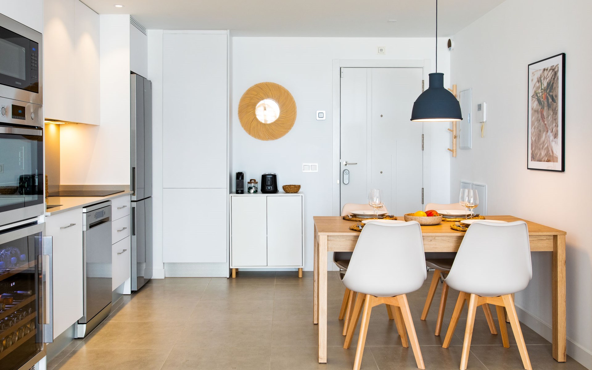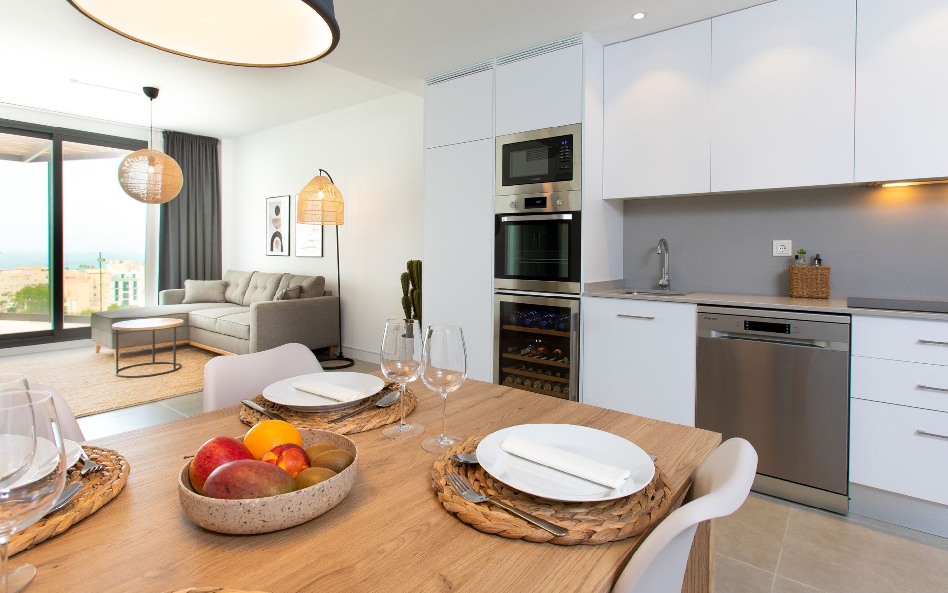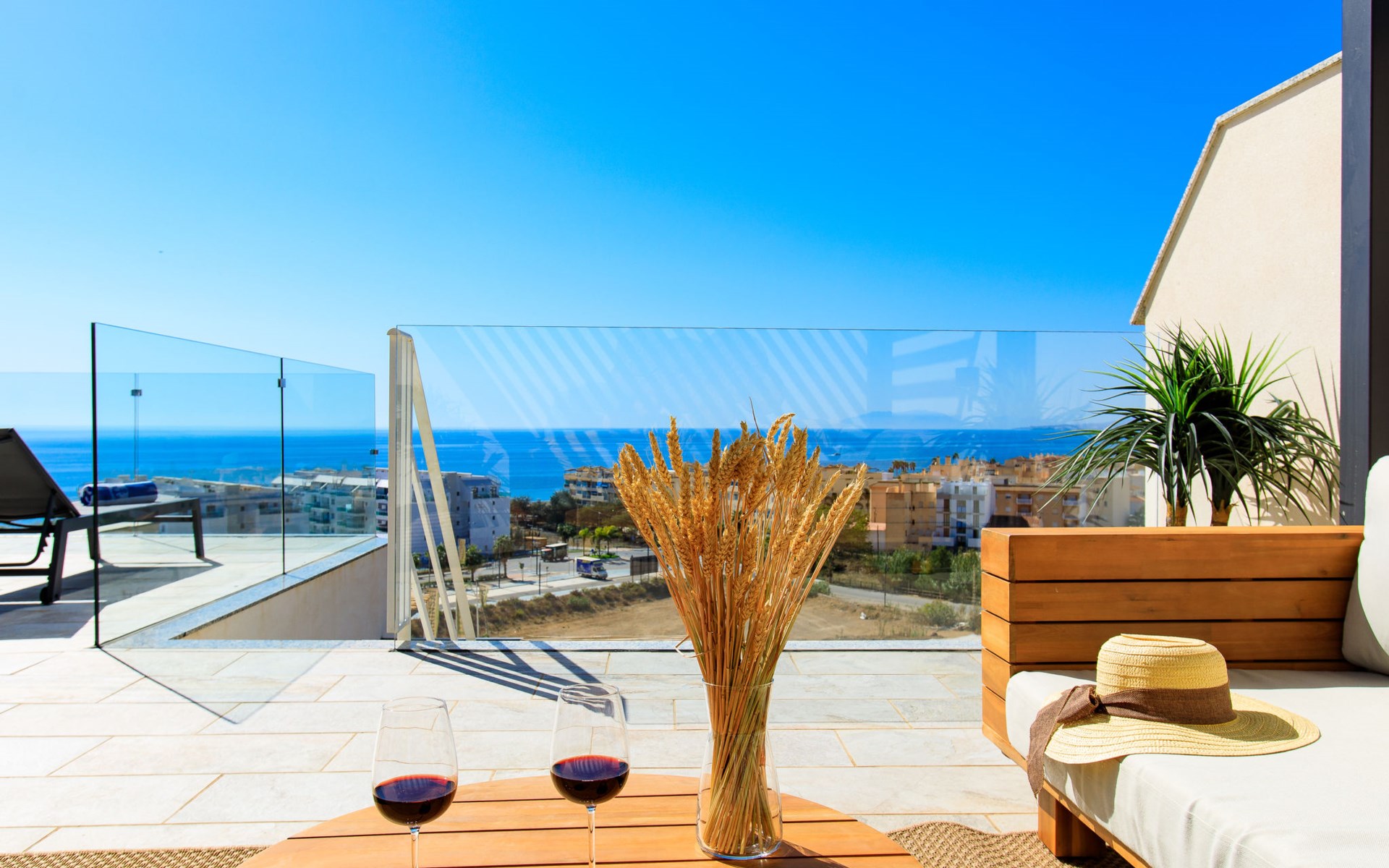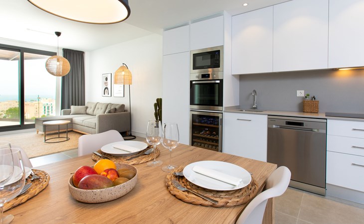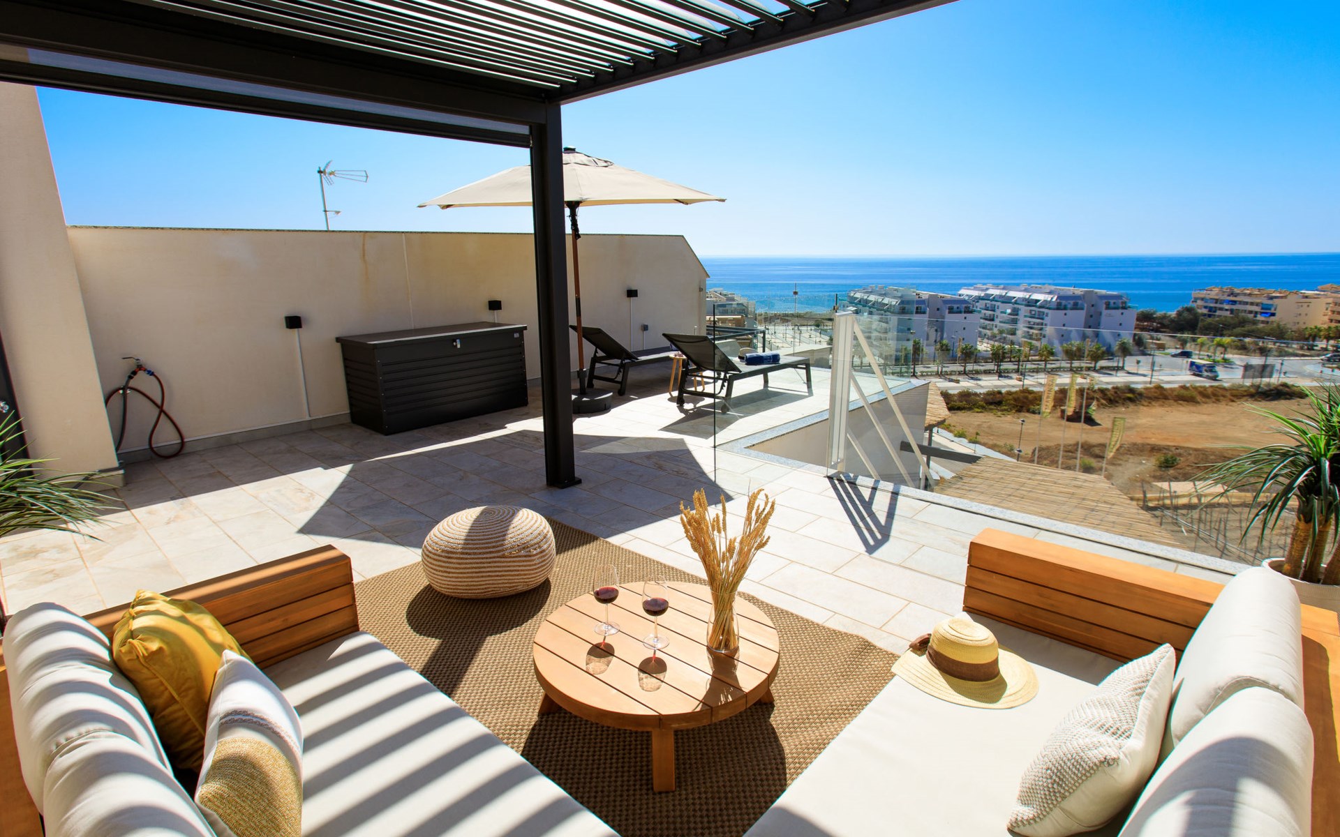 Torrox Costa: The property has: Wifi, community pool, air conditioning / hot air heating, smart tv and community parking space. In the bathroom there is a washer and dryer. Kitchen is very well equipped with: oven, microwave, dishwasher, wine fridge, fridge/freezer, blender, juicer, kettle, electric coffee maker. On the terrace in front of the living room there is a large table and chairs. The roof terrace has two sun loungers, parasols, an outdoor shower, a pergola covers a comfortable sofa. Beautiful, comfortable apartment block "Marinsa Beach Sea View/Roof Terrace". In a sunny position, 100 m from the sea, 100 m from the beach. For shared use: lawn for sunbathing, swimming pool angular (10 x 4 m, depth 100 - 180 cm, seasonal availability: 01.Jun. - 01.Oct.). Shower/WC in the pool area, terrace. In the house: internet access, WiFi, solarium, lift, central heating system, air conditioning, burglar alarm system, washing machine, tumble dryer. Roofed, parking space n 12. Shop 1 km, supermarket 1 km, shopping centre 20 km, restaurant 500 m, bakery 1 km, pedestrian zone 500 m, bus stop "Torrox Costa" 100 m, railway station "Malaga" 50 km, ferry "Malaga" 50 km, sandy beach 250 m, diving center 12 km. Sports harbour 8 km, marina 8 km, golf course (18 hole) 13 km, surf school 11 km, sailing school 11 km, tennis 11 km. Nearby attractions: Nerja, Frigiliana, Malaga, Competa, Torre del Mar, Almuñecar. Well-known ski regions can easily be reached: Sierra Nevada. Hiking paths: Sierra Almijara, Sierra Tejeda. Please note: baby equipment (included). The owner does not accept any youth groups. Loading and unloading of baggage is possible at the holiday house.