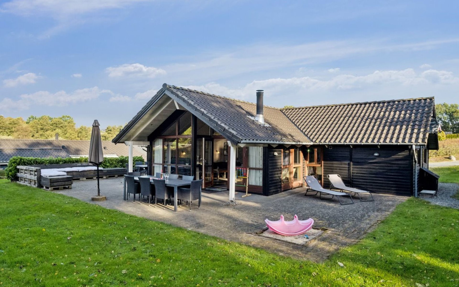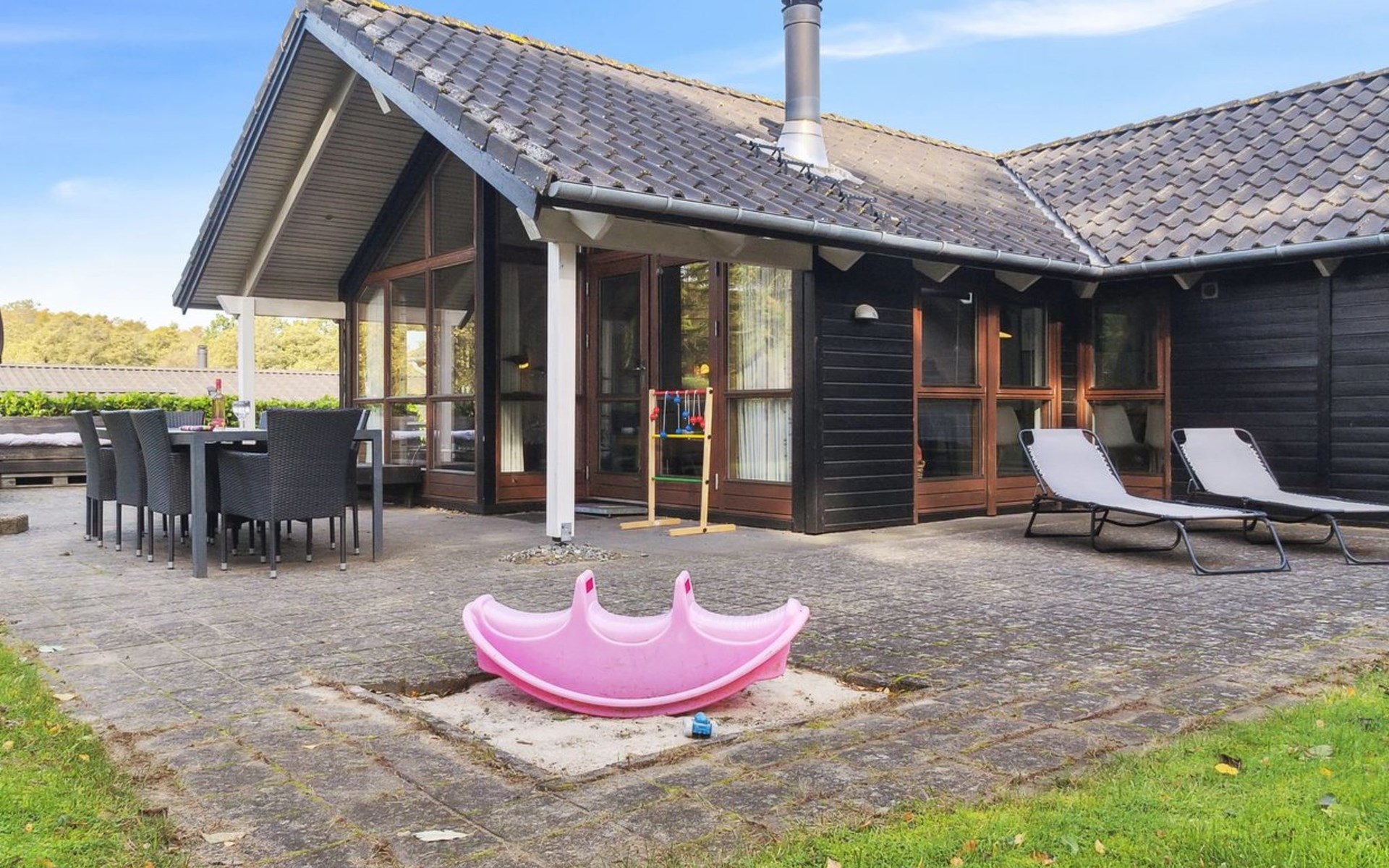 Single-family house, built in 2006. 250 m from the sea. Private: natural state property 860 m2. Barbecue. In the house: sauna, washing machine, tumble dryer. Parking at the house. Grocery 4 km. Golf course 4 km. The owner does not accept any youth groups.