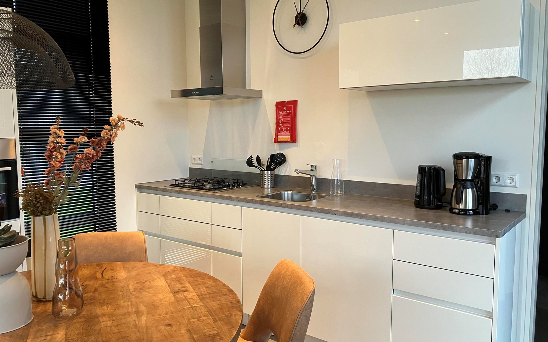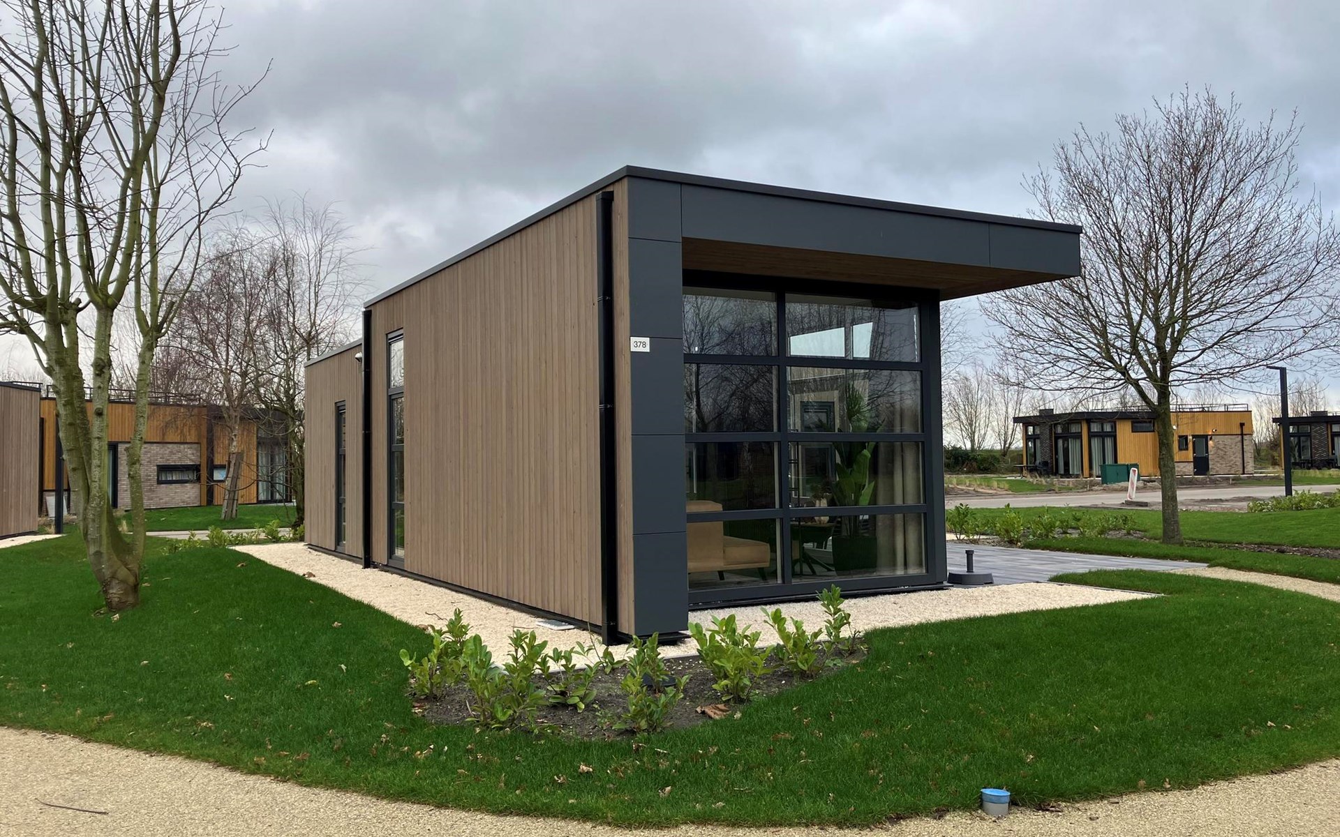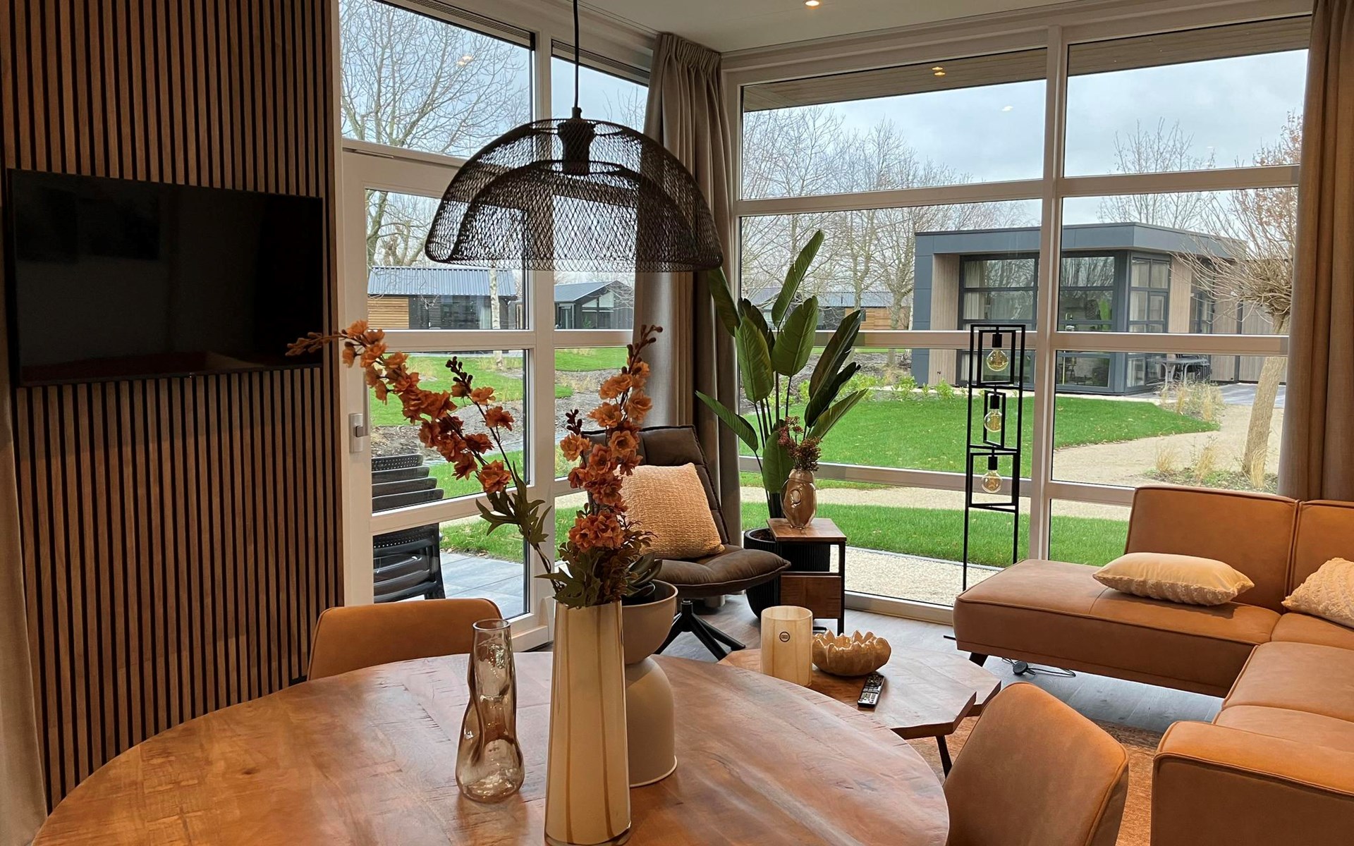 This single-storey, detached chalet can accommodate up to 4 people. The chalet's name says it all: the chalet is L-shaped. Thanks to the high windows and ceilings, this chalet has plenty of light and gives a feeling of space. In the living room you will find a lovely sitting area with television, dining area suitable for 4 and a modern open-plan kitchen. The kitchen is fully equipped, including an induction hob, combination microwave, oven, filter coffee maker, dishwasher and fridge-freezer. The chalet has 2 bedrooms, one bedroom has a double bed (with twin single box spring beds) and the other bedroom has 2 single beds. The bathroom is modern and includes a sink, toilet and walk-in shower. The master bedroom also has an ensuite bathroom. Furthermore, this chalet has a separate toilet. Outside you can enjoy the garden with terrace. You can park your car near the chalet.