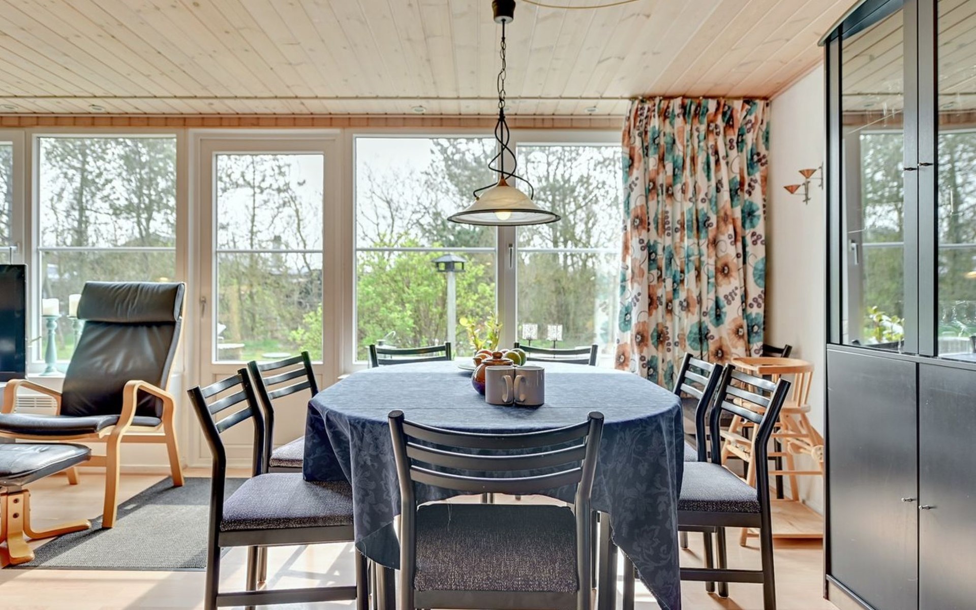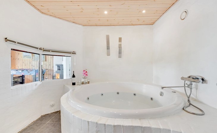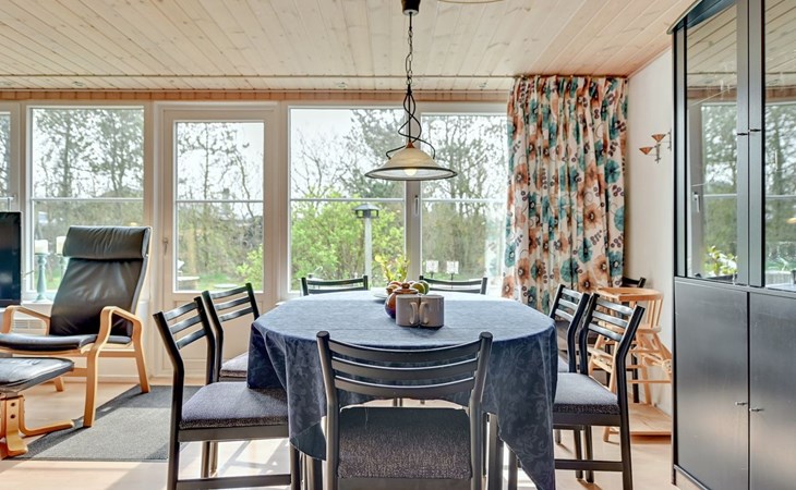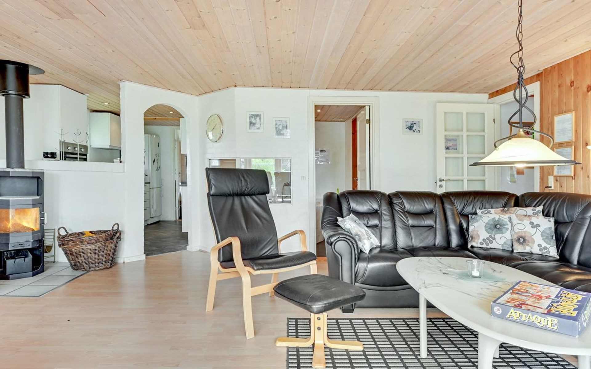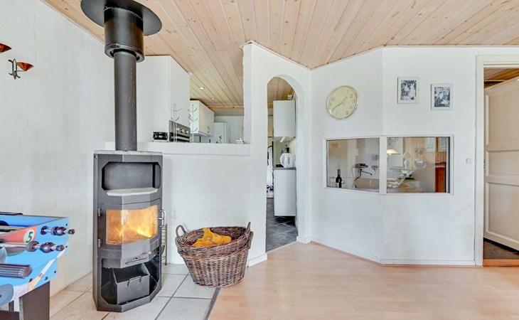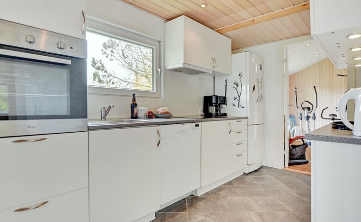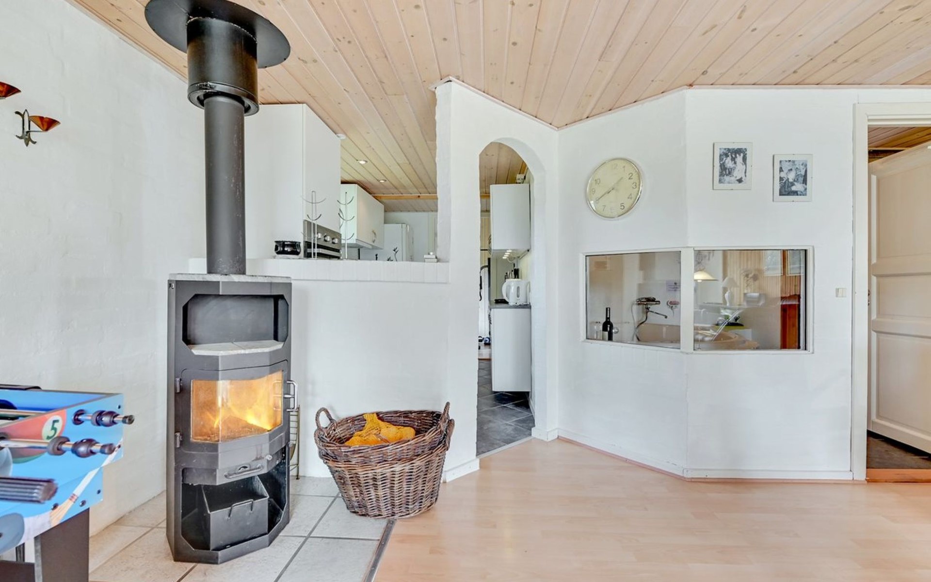 Single-family house, built in 1995. 700 m from the sea. Private: natural state property 1'200 m2. Terrace (100 m2), fireplace, children's playground (swing). In the house: sauna, washing machine, tumble dryer. Parking at the house. Carport. Grocery 300 m. Golf course 20 km. The owner does not accept any youth groups.