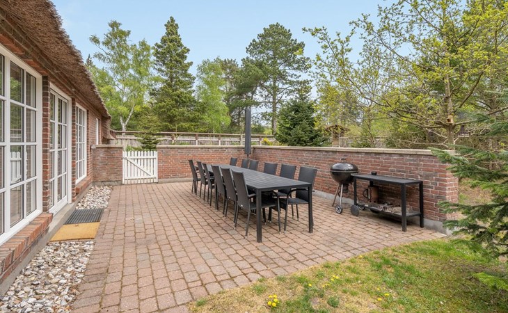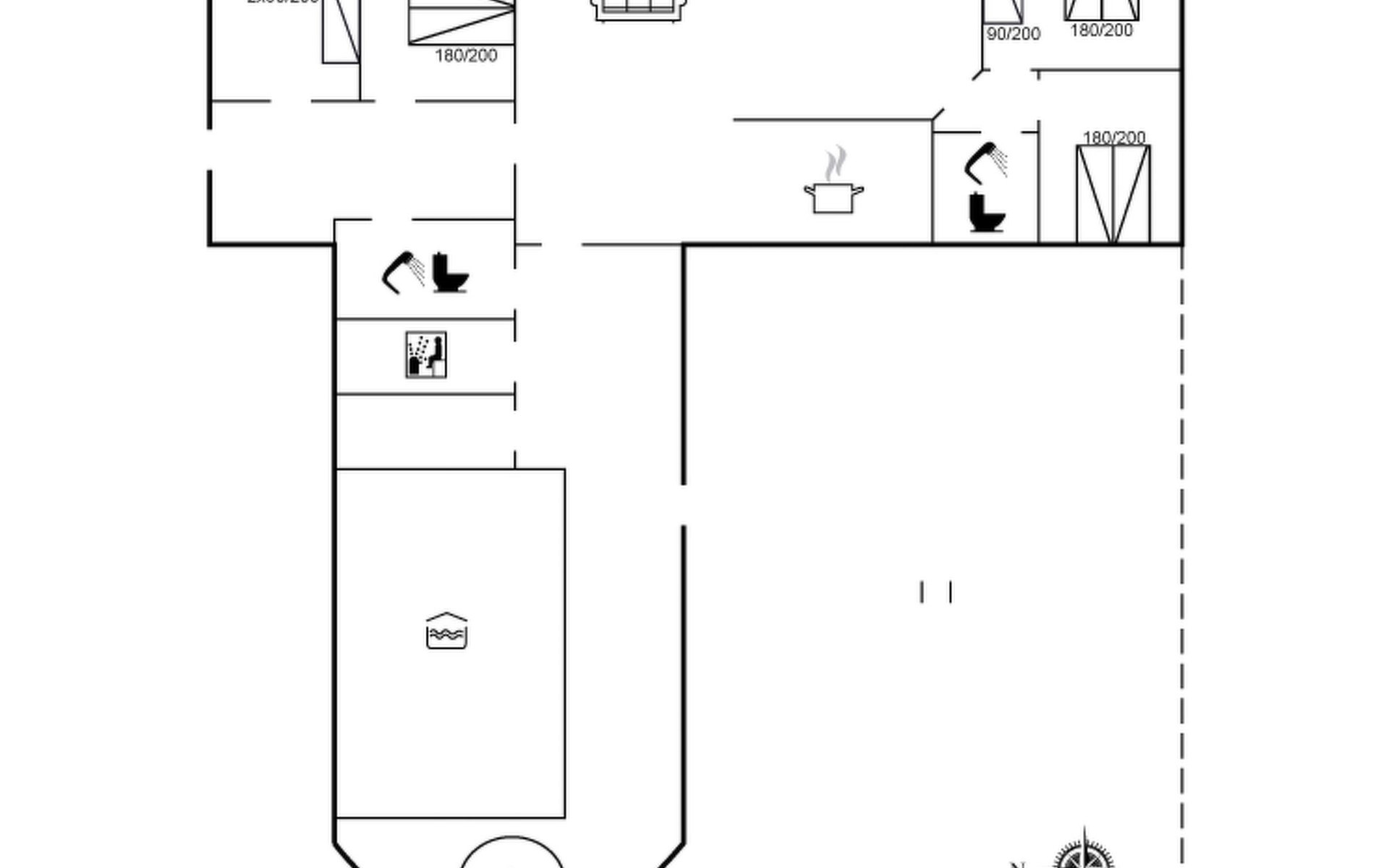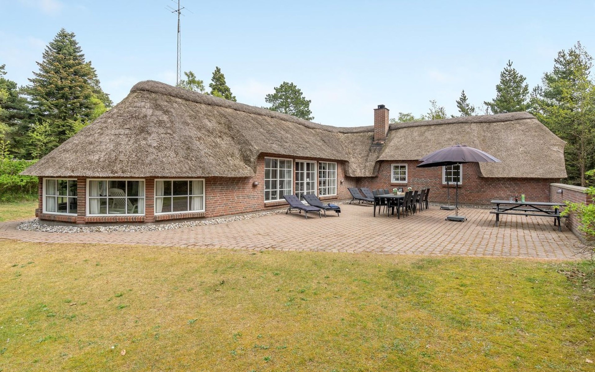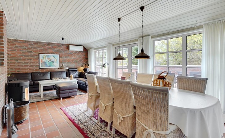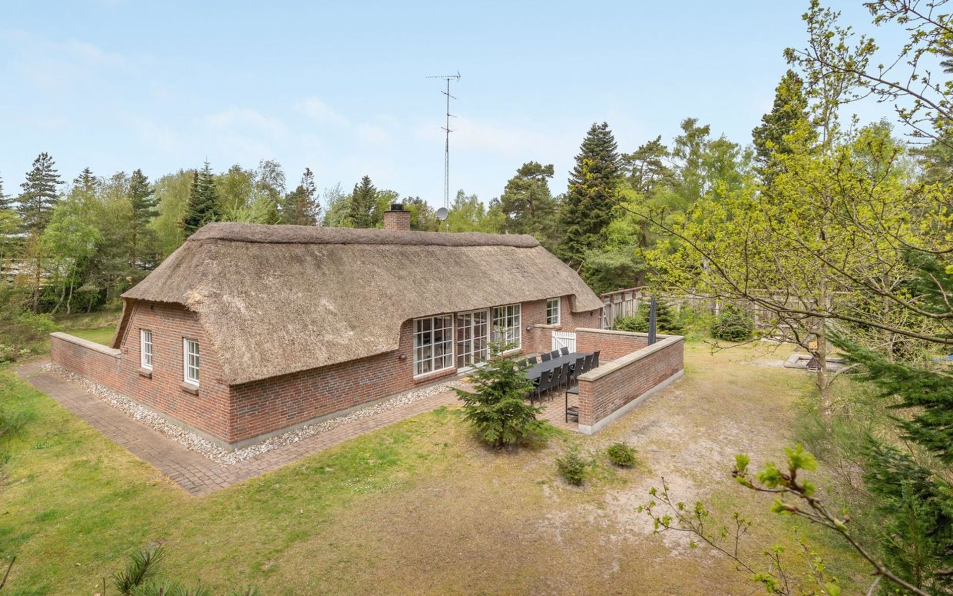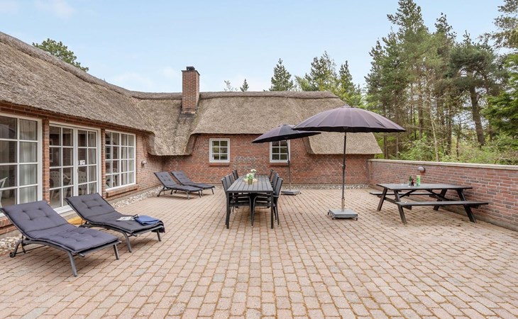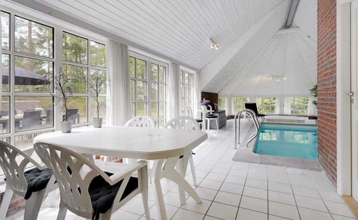 Single-family house, built in 1993. 50 m from the sea. For shared use: garden. Private: natural state property 3'000 m2, garden (fenced), indoor pool (4 x 5 m, 20 m2, depth 140 - 140 cm). Terrace (70 m2), barbecue, children's playground (slide, swing). In the house: sauna, washing machine, tumble dryer. Parking at the house. Grocery 400 m. Golf course 2 km. The owner does not accept any youth groups.
