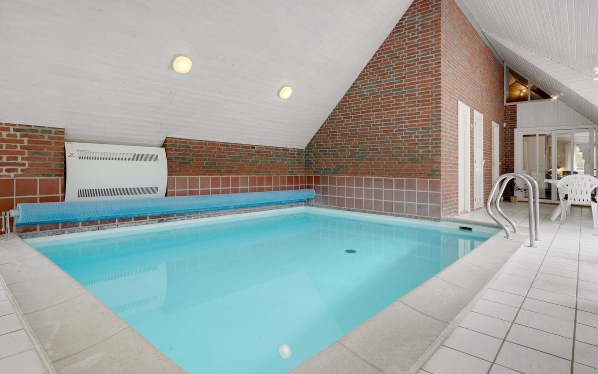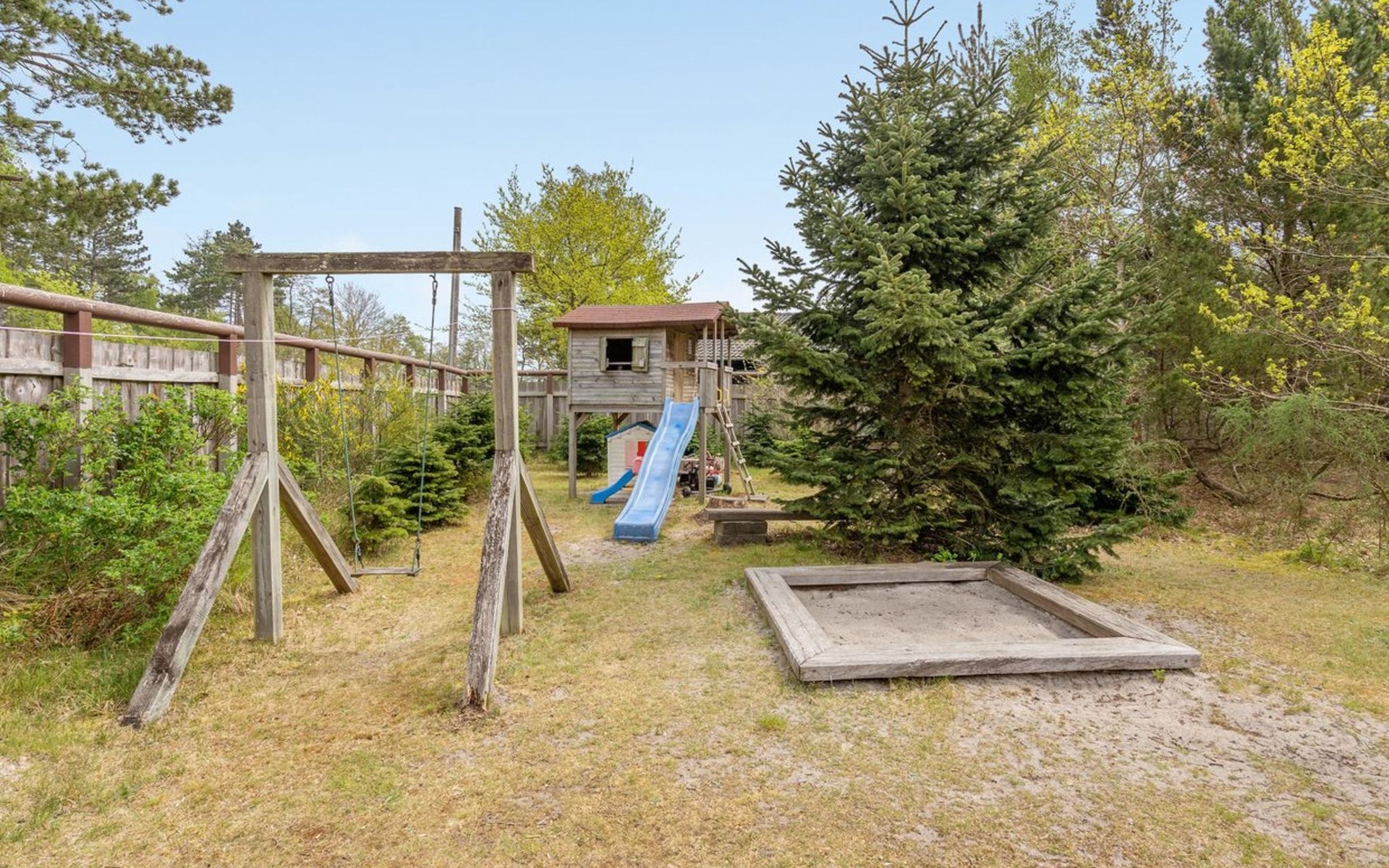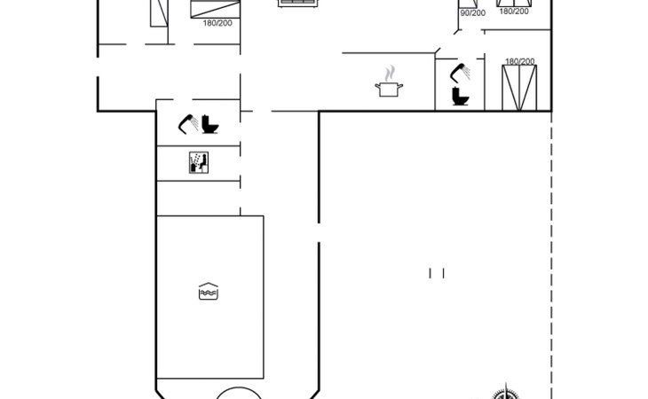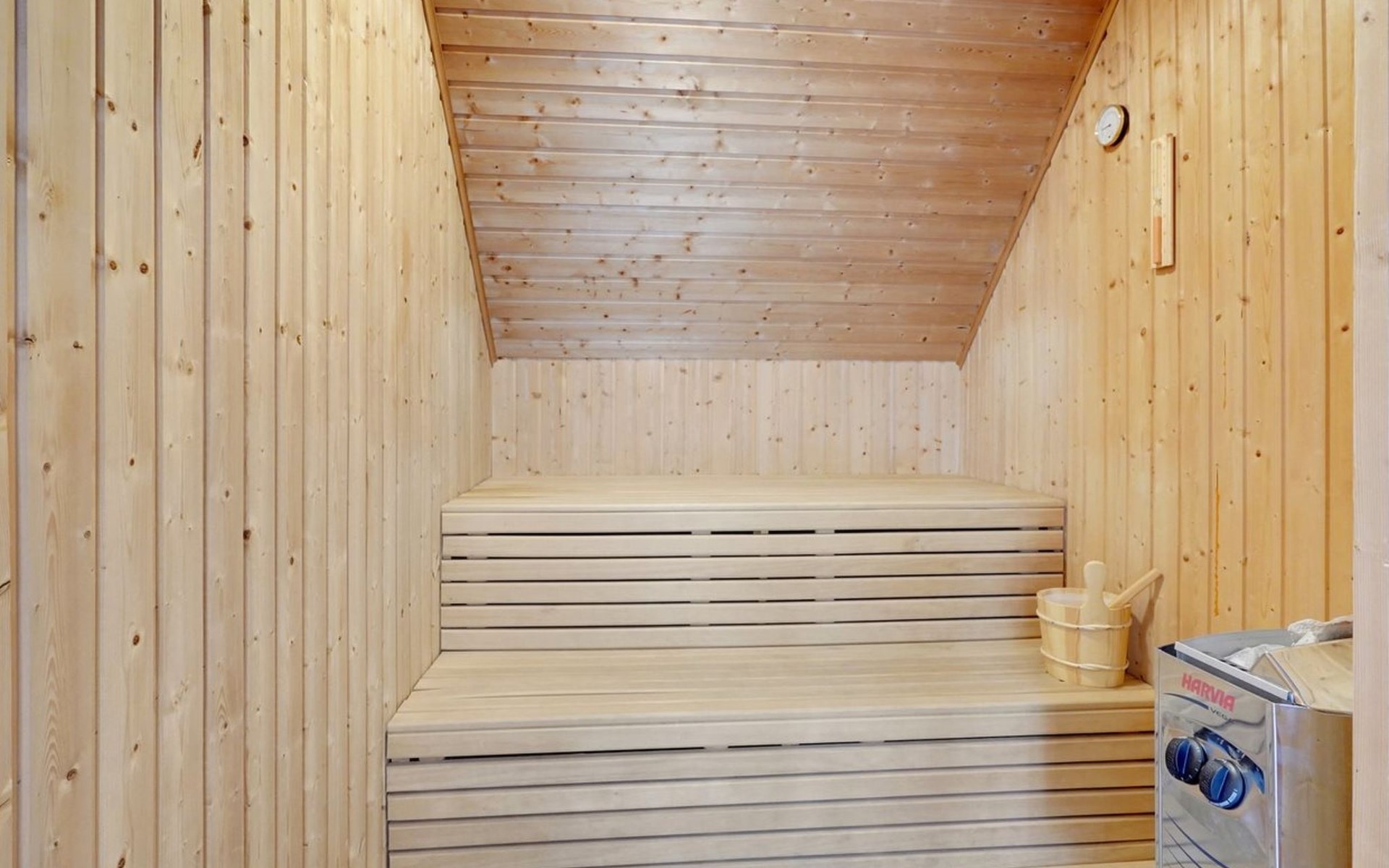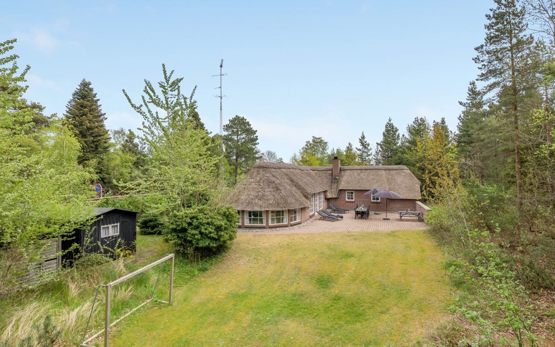 Single-family house, built in 1993. 50 m from the sea. For shared use: garden. Private: natural state property 3'000 m2, garden (fenced), indoor pool (4 x 5 m, 20 m2, depth 140 - 140 cm). Terrace (70 m2), barbecue, children's playground (slide, swing). In the house: sauna, washing machine, tumble dryer. Parking at the house. Grocery 400 m. Golf course 2 km. The owner does not accept any youth groups.