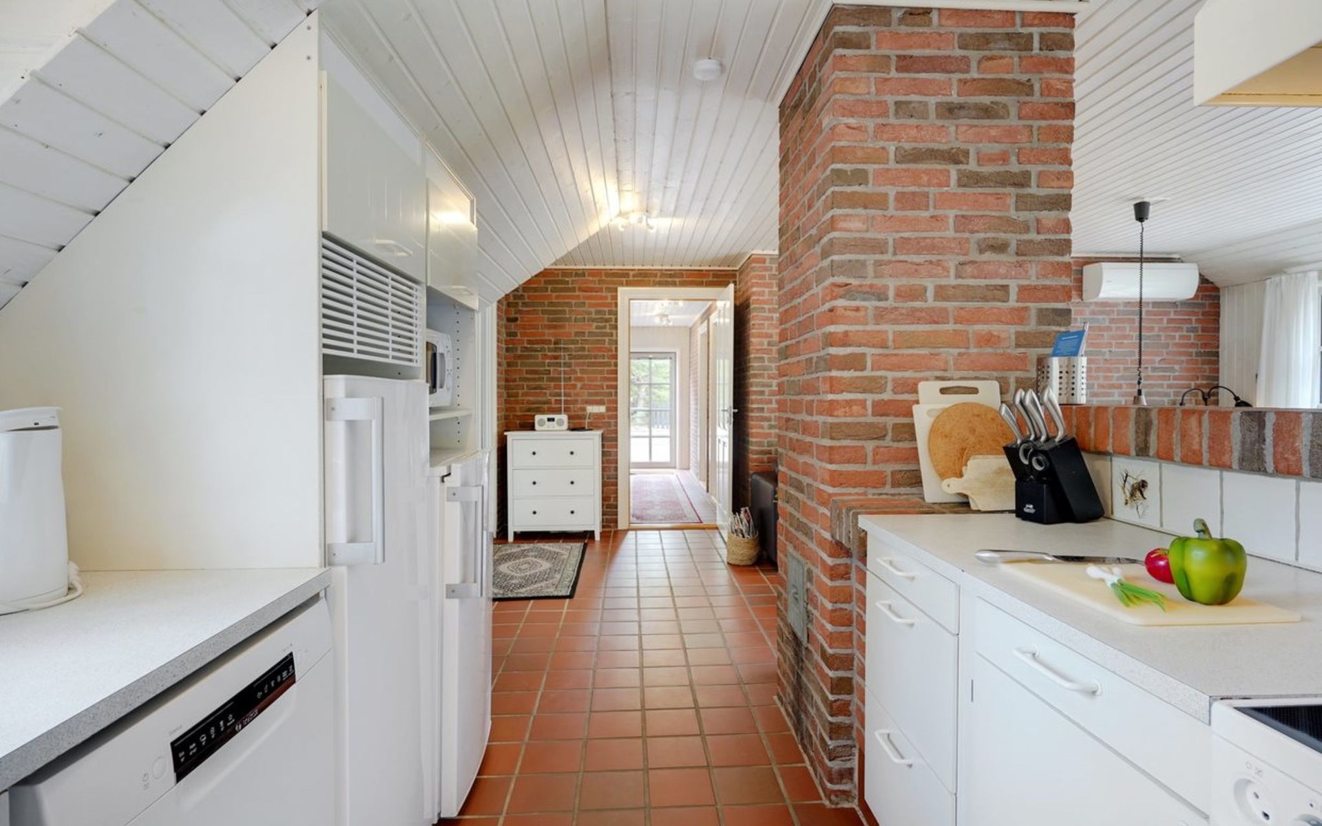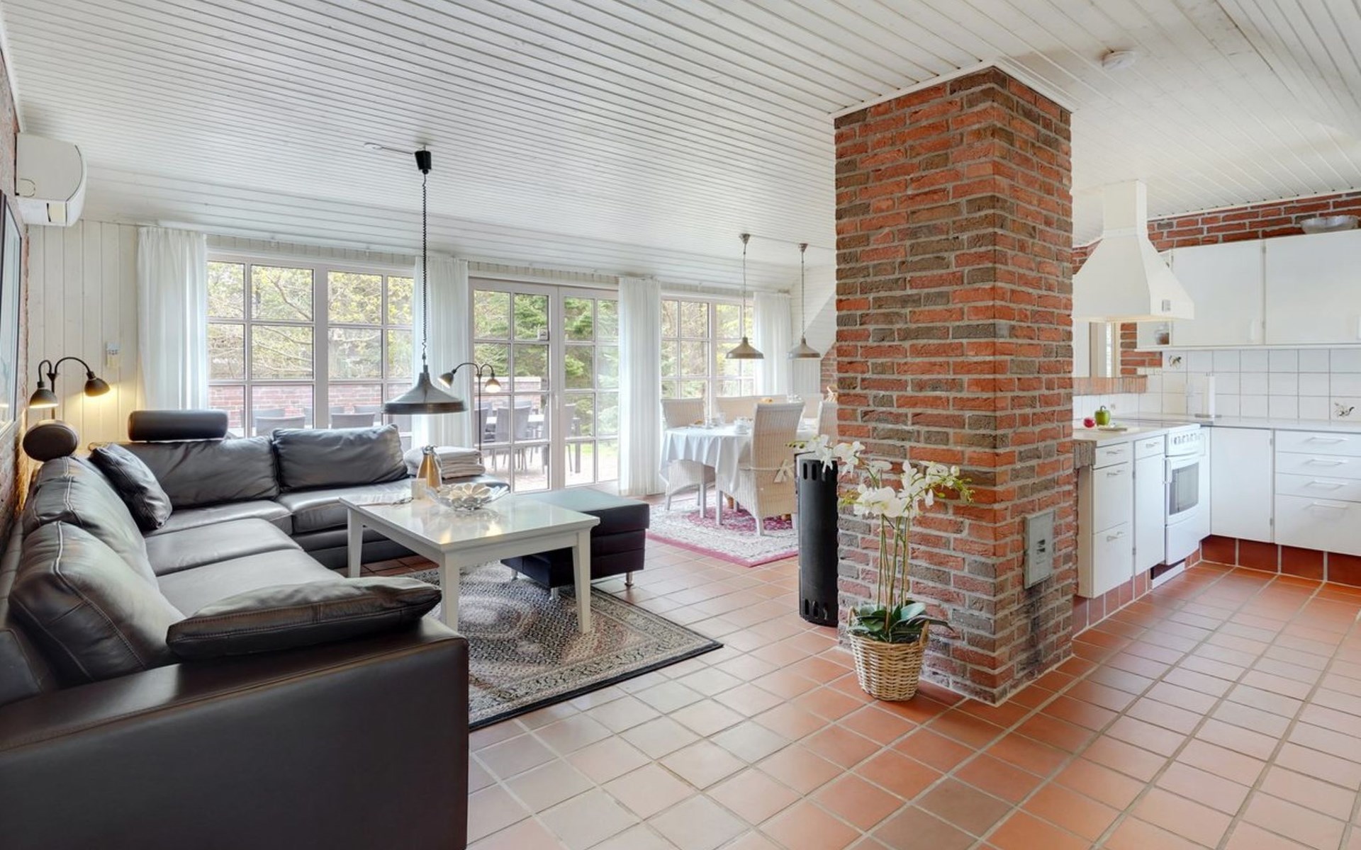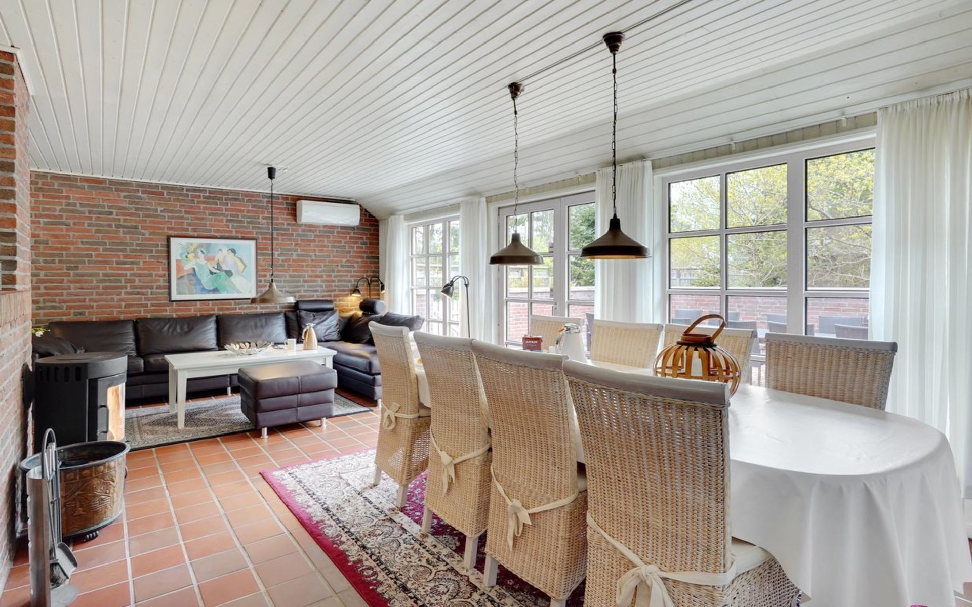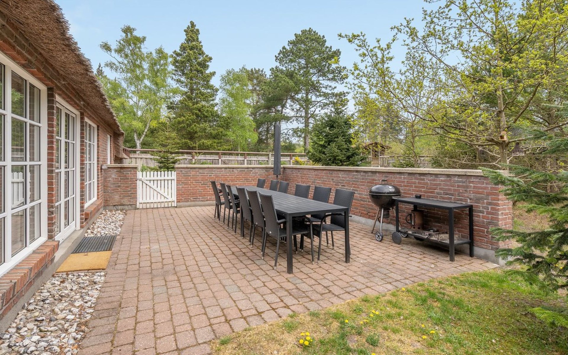 Single-family house, built in 1993. 50 m from the sea. For shared use: garden. Private: natural state property 3'000 m2, garden (fenced), indoor pool (4 x 5 m, 20 m2, depth 140 - 140 cm). Terrace (70 m2), barbecue, children's playground (slide, swing). In the house: sauna, washing machine, tumble dryer. Parking at the house. Grocery 400 m. Golf course 2 km. The owner does not accept any youth groups.