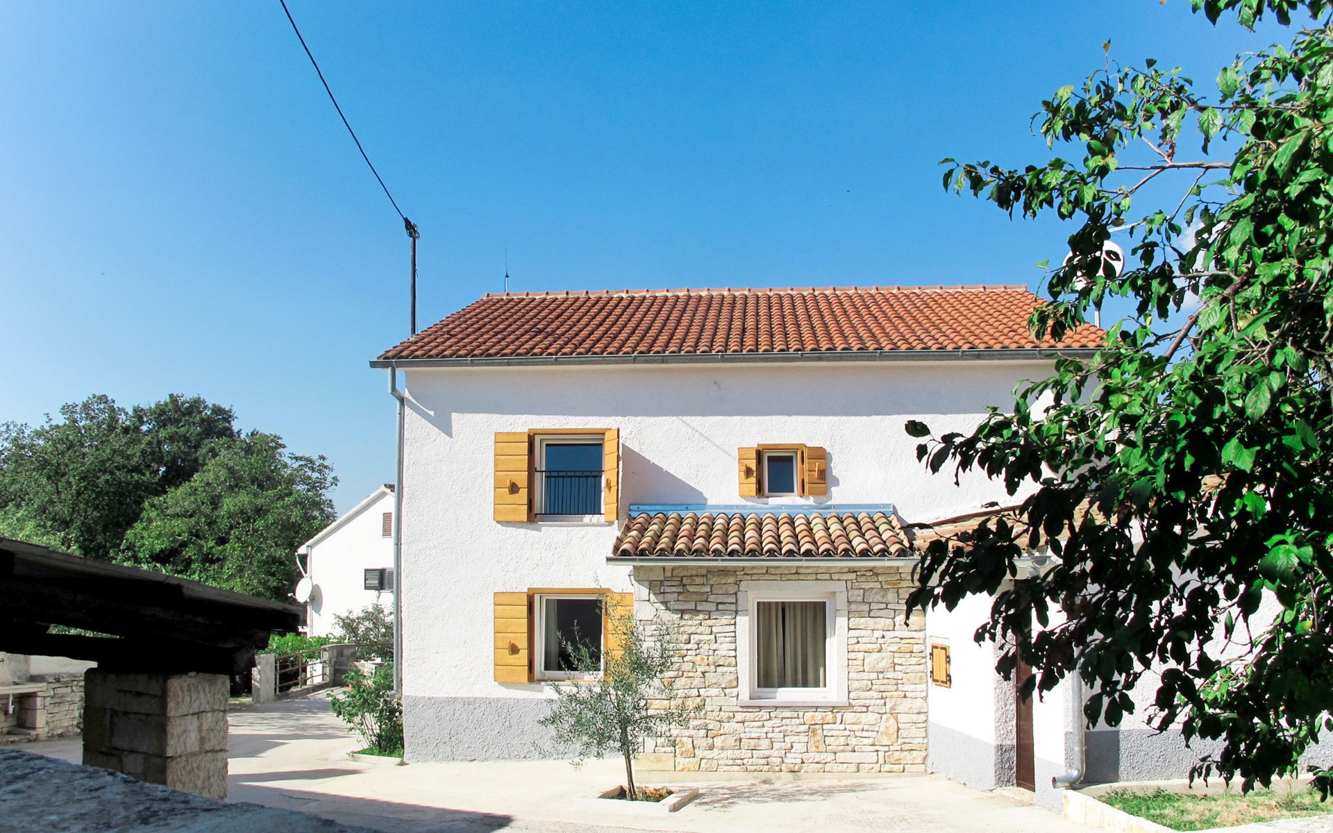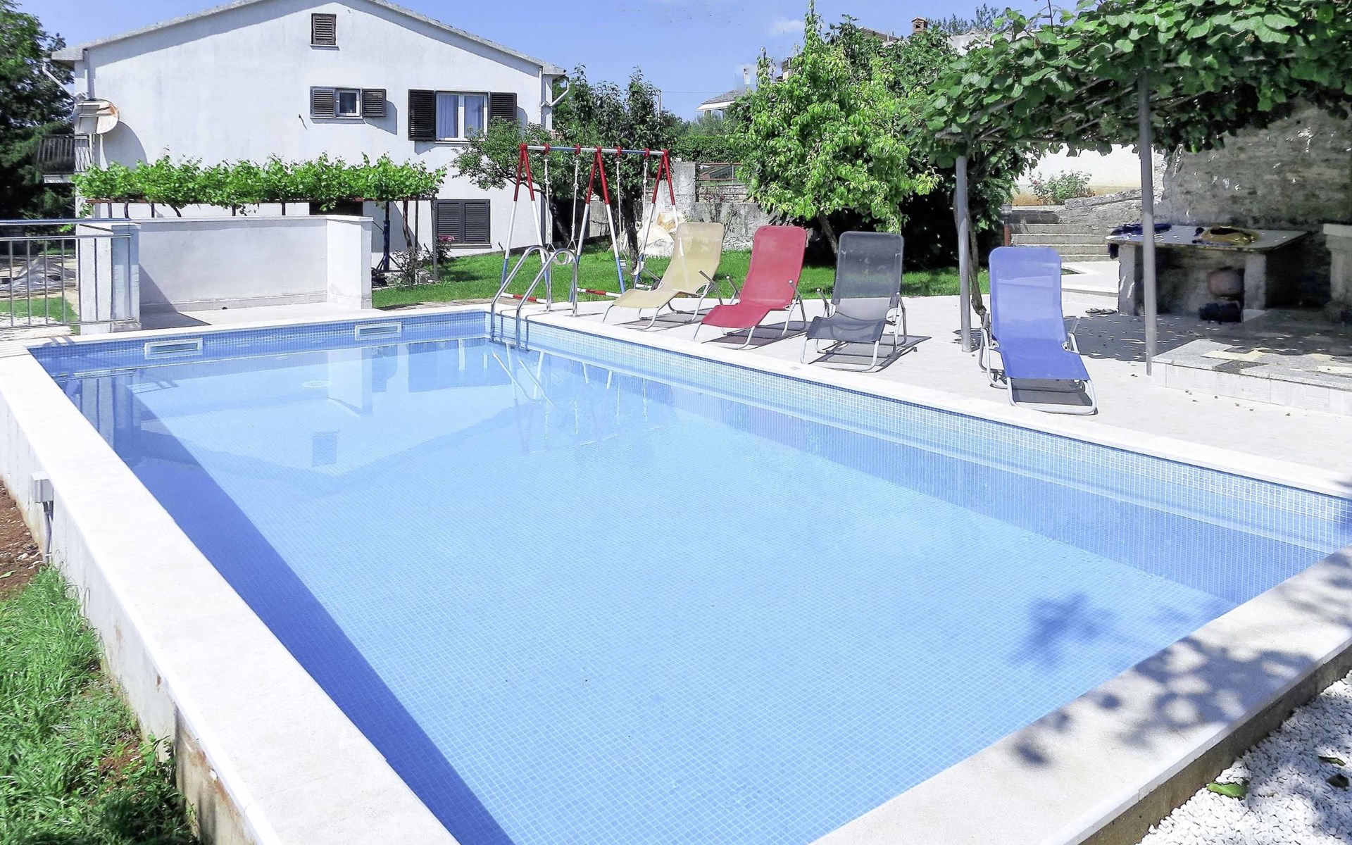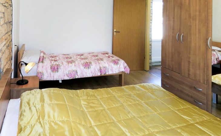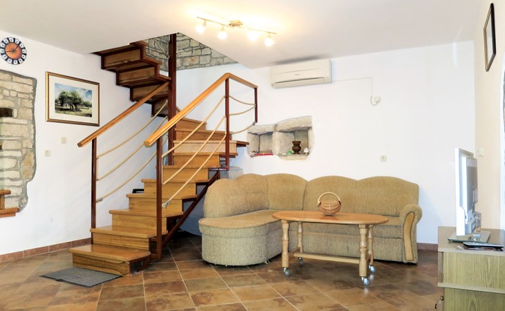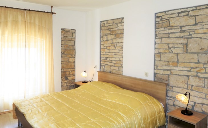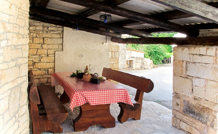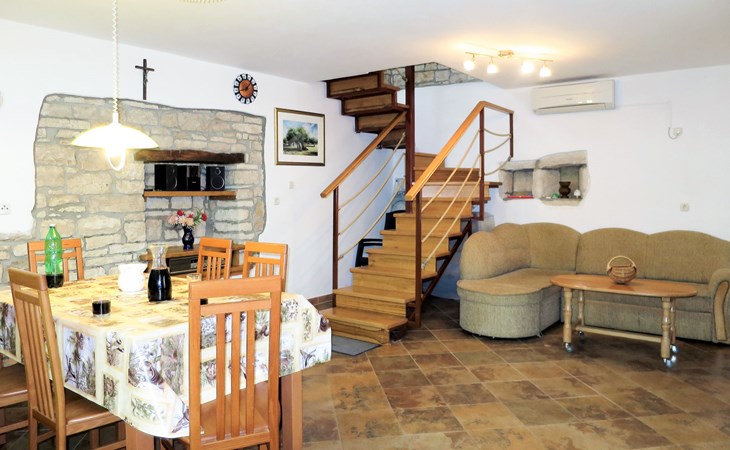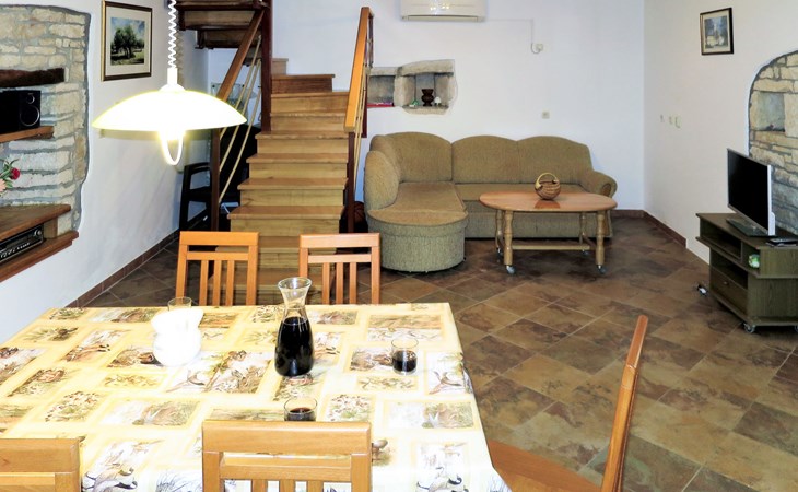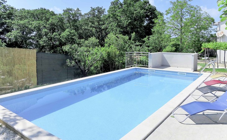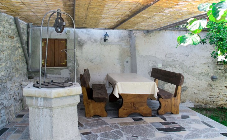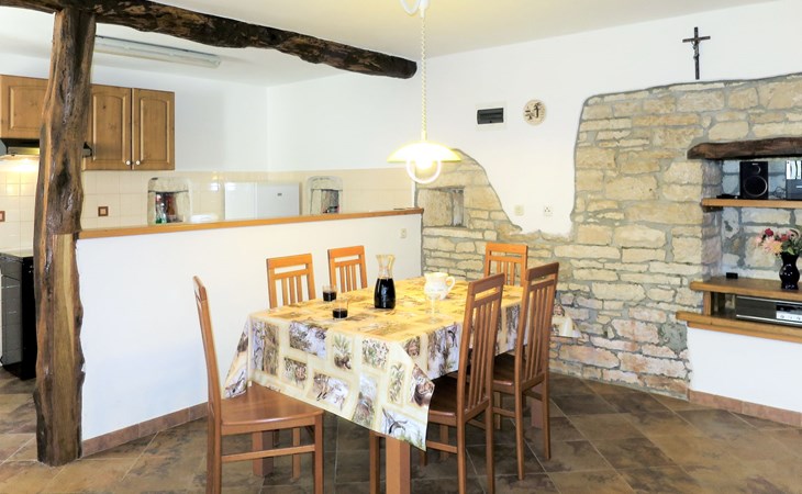 Single-family house "Josip", 2 storeys. Gljuščići 1 km from the centre of Sveti Petar u Šumi, 7 km from the centre of Žminj, 28 km from the centre of Rovinj, 28 km from the sea. For shared use: property 2'000 m2 with trees. Private: swimming pool angular (8 x 4 m, depth 130 cm, seasonal availability: 01.May. - 01.Oct.). WC in the pool area, outdoor shower (swing). In the house: washing machine. Parking (for 2 cars) on the premises. Shop 1 km, restaurant 1 km, bus stop 6.1 km, pebble beach 28 km. Marina 28 km. Please note: the owner lives on the same property.