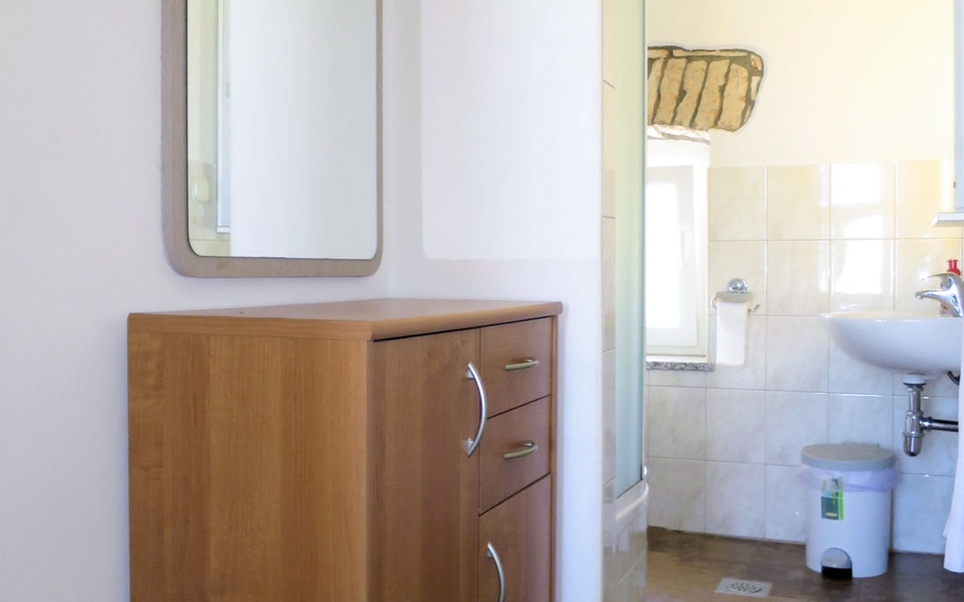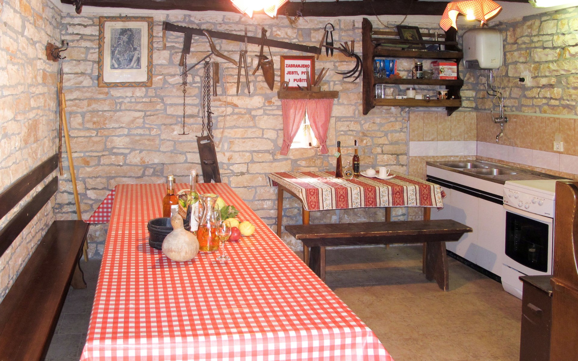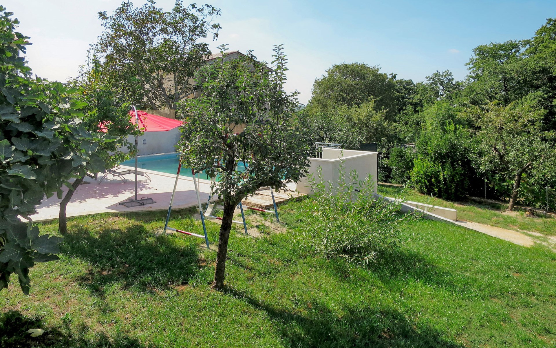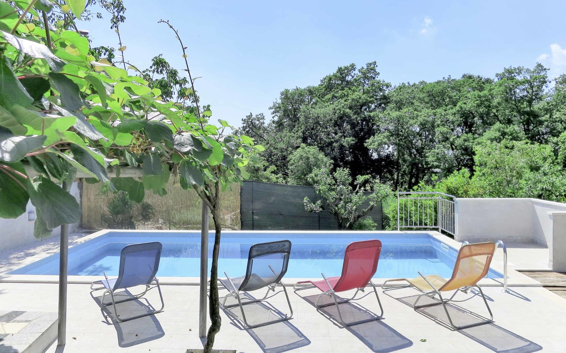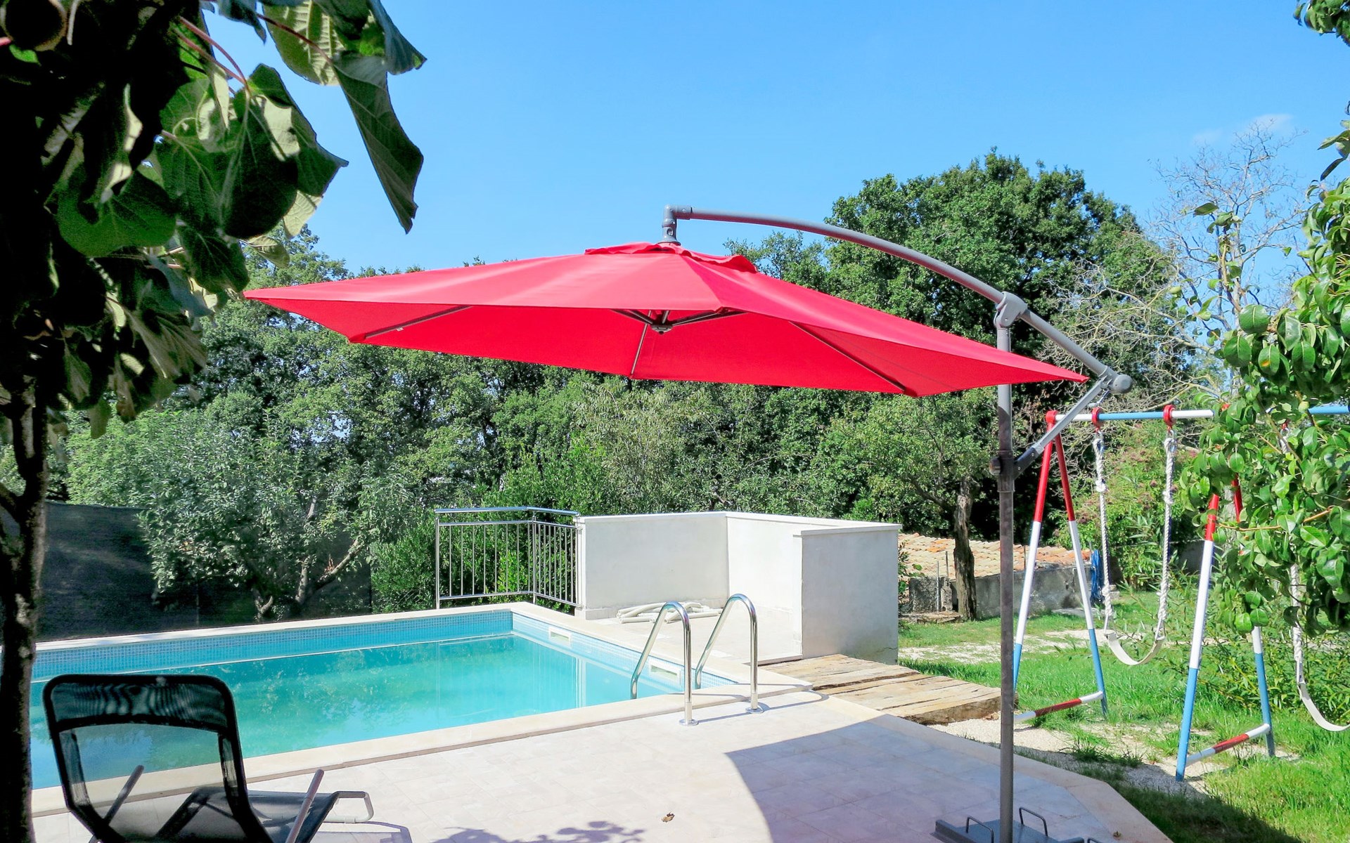 Single-family house "Josip", 2 storeys. Gljuščići 1 km from the centre of Sveti Petar u Šumi, 7 km from the centre of Žminj, 28 km from the centre of Rovinj, 28 km from the sea. For shared use: property 2'000 m2 with trees. Private: swimming pool angular (8 x 4 m, depth 130 cm, seasonal availability: 01.May. - 01.Oct.). WC in the pool area, outdoor shower (swing). In the house: washing machine. Parking (for 2 cars) on the premises. Shop 1 km, restaurant 1 km, bus stop 6.1 km, pebble beach 28 km. Marina 28 km. Please note: the owner lives on the same property.