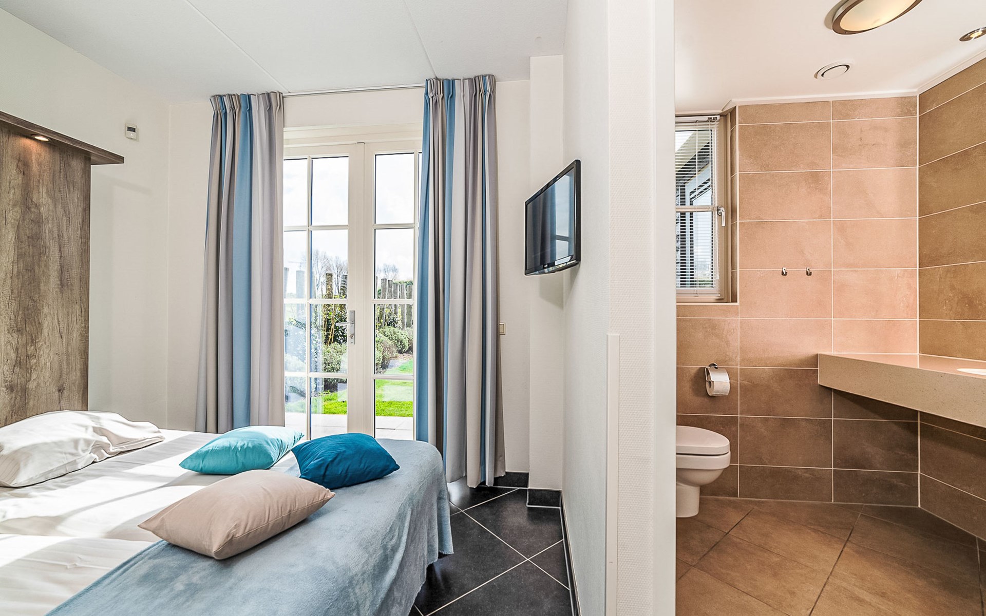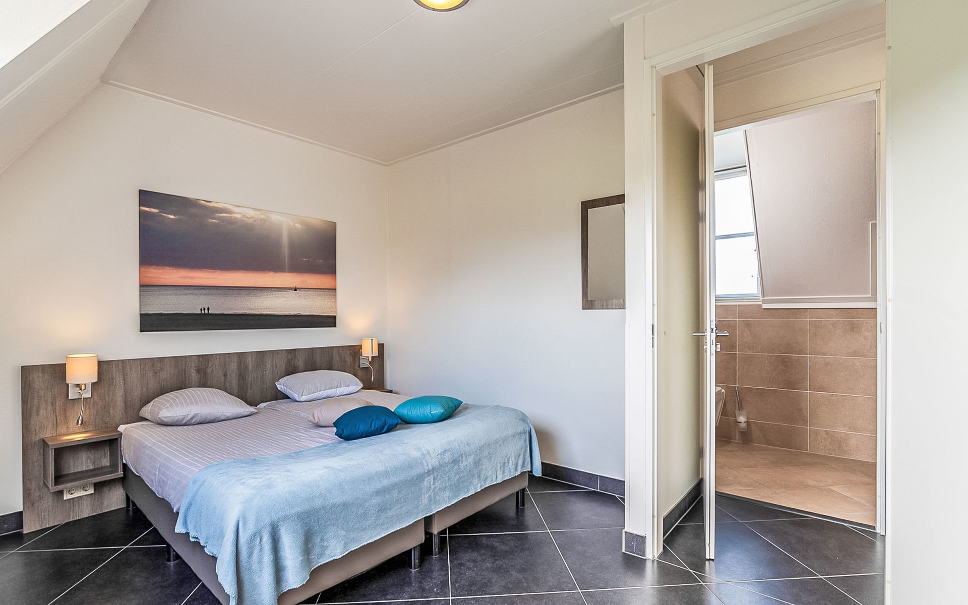Colijnsplaat 15 km from Goes: Small, comfortable resort "Ganuenta". Outside the resort, 1.5 km from the centre of Colijnsplaat, in a quiet position, 150 m from the sea, 150 m from the beach. For shared use: children's playground. Private: indoor pool. In the complex: reception, bicycle rental. Central parking spaces. Supermarket 1.3 km, restaurant 1 km, bar 1 km, bakery 1.2 km, 10 minute walk to the centre, bus stop 850 m, railway station "Goes" 12 km, sandy beach "De Banjaard" 15 km. Sports harbour 1 km. Nearby attractions: Deltawerken Neeltje Jans 9 km, Oosterscheldekering 15 km, Watersnoodmuseum Ouwerkerk 18 km, Berkenhof's Tropical Zoo 26 km, Stadhuis Middelburg 29 km, Plompetoren 30 km. Please note: car recommended. Suitable for families, baby equipment on request (extra). The owner does not accept any youth groups. The photograph shows a typical example. All houses/apartments are individually designed/furnished. Preference costs €35,-. Long stays (longer than 14 nights) and/ or workers on request only.