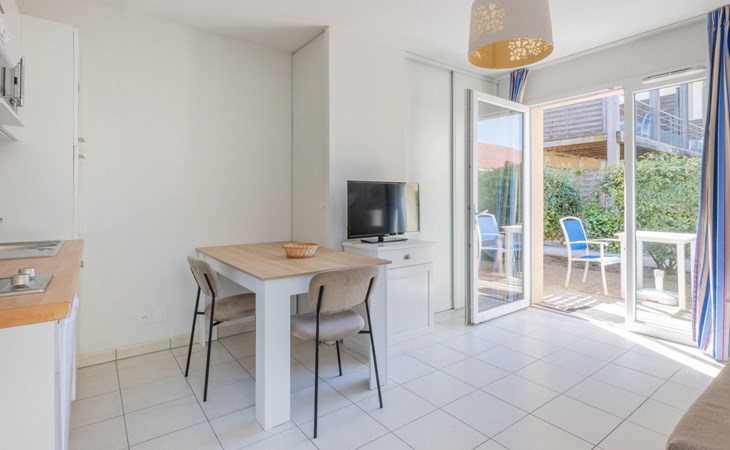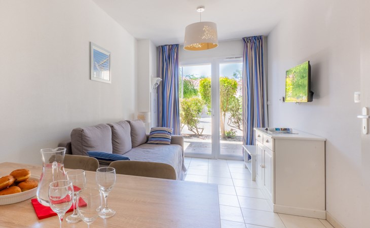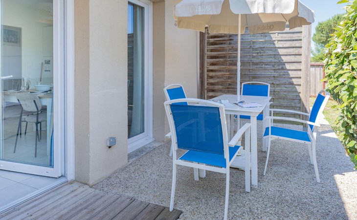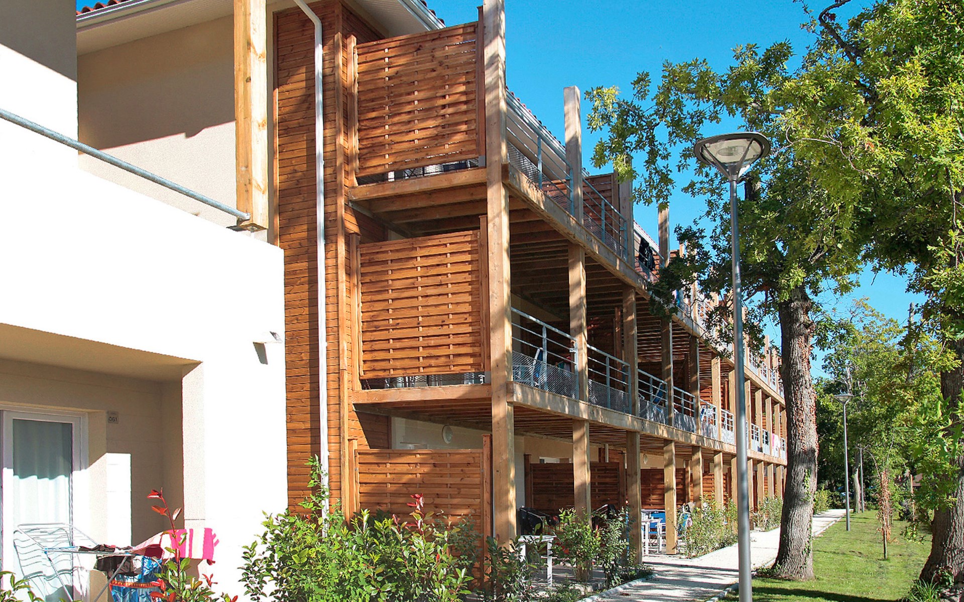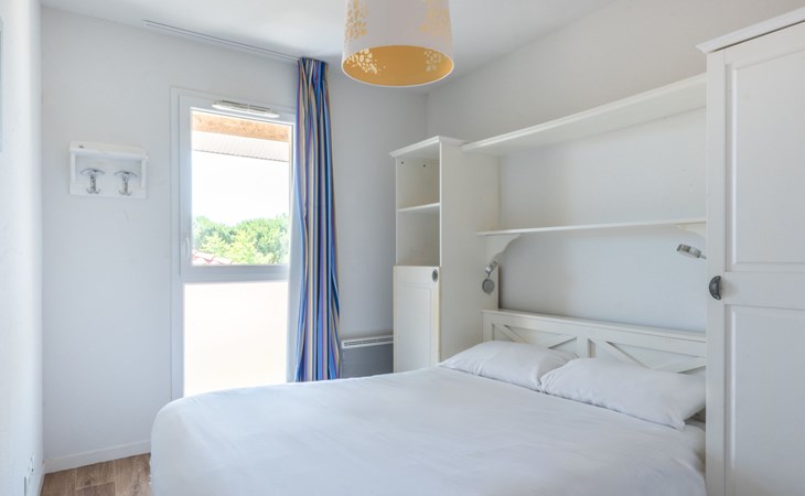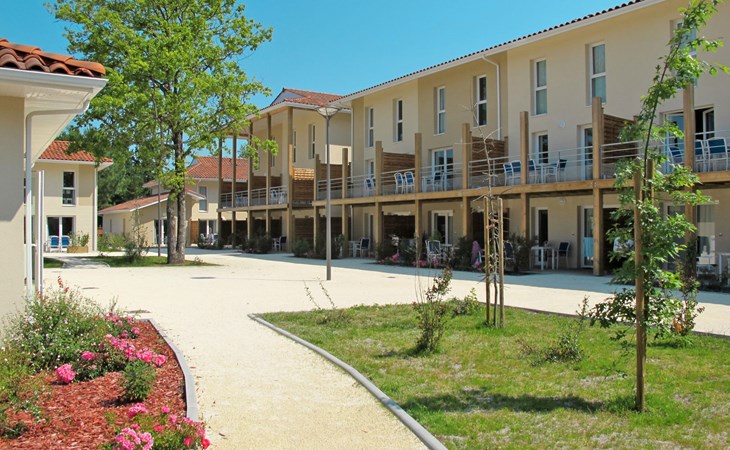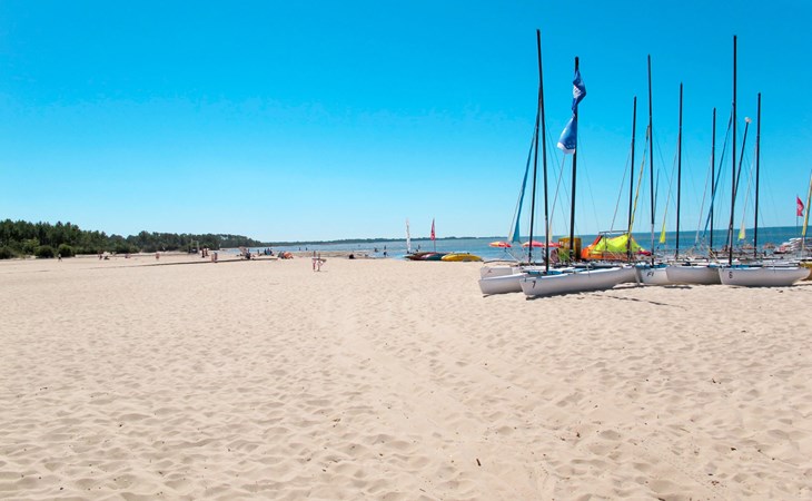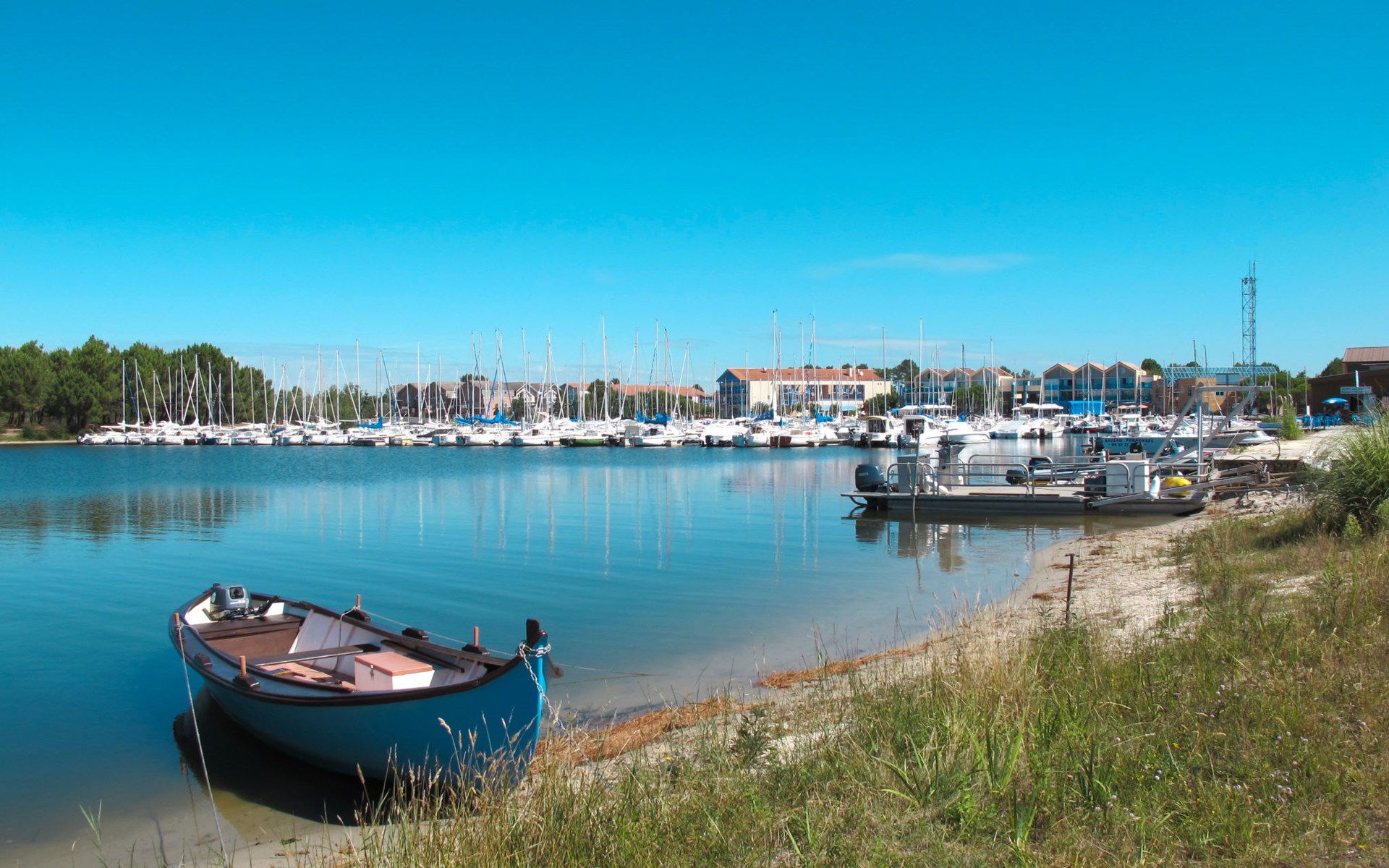 Resort "Le Petit Pont", 3 storeys. 79 apartments in the residence. In the district of Hourtin-Port 400 m from the centre of Hourtin-Port, 2.5 km from the centre of Hourtin, 65 km from the centre of Bordeaux, 12 km from the sea, 700 m from the lake, 12 km from the beach. For shared use: property (fenced) with lawn and trees, swimming pool heated, fenced (14 x 5 m, seasonal availability: 01.May. - 31.Sep.). Children's pool, table tennis, boccia, beach volleyball, children's playground. In the complex: reception, fitness room, steam room (extra). Storage room for bicycles, washing machine, tumble dryer (for shared use, extra). Parking on the premises. Shop 400 m, bus stop 3 km, sandy beach "Hourtin-Plage" 12 km, bathing lake "Lac d'Hourtin" 700 m. Please note: the photograph shows a typical example. The holiday properties may differ in living space, floorplan, equipment and furnishing.