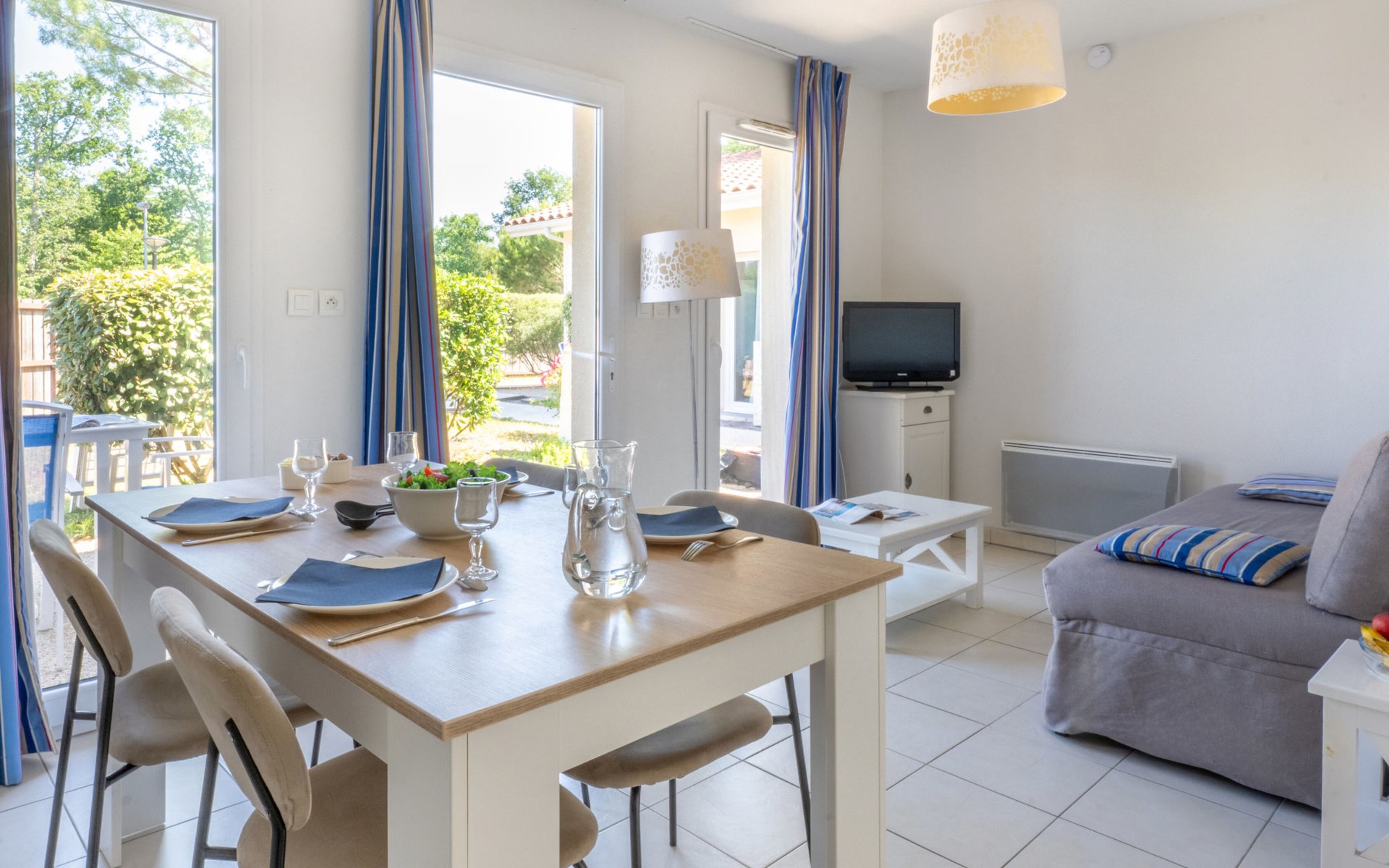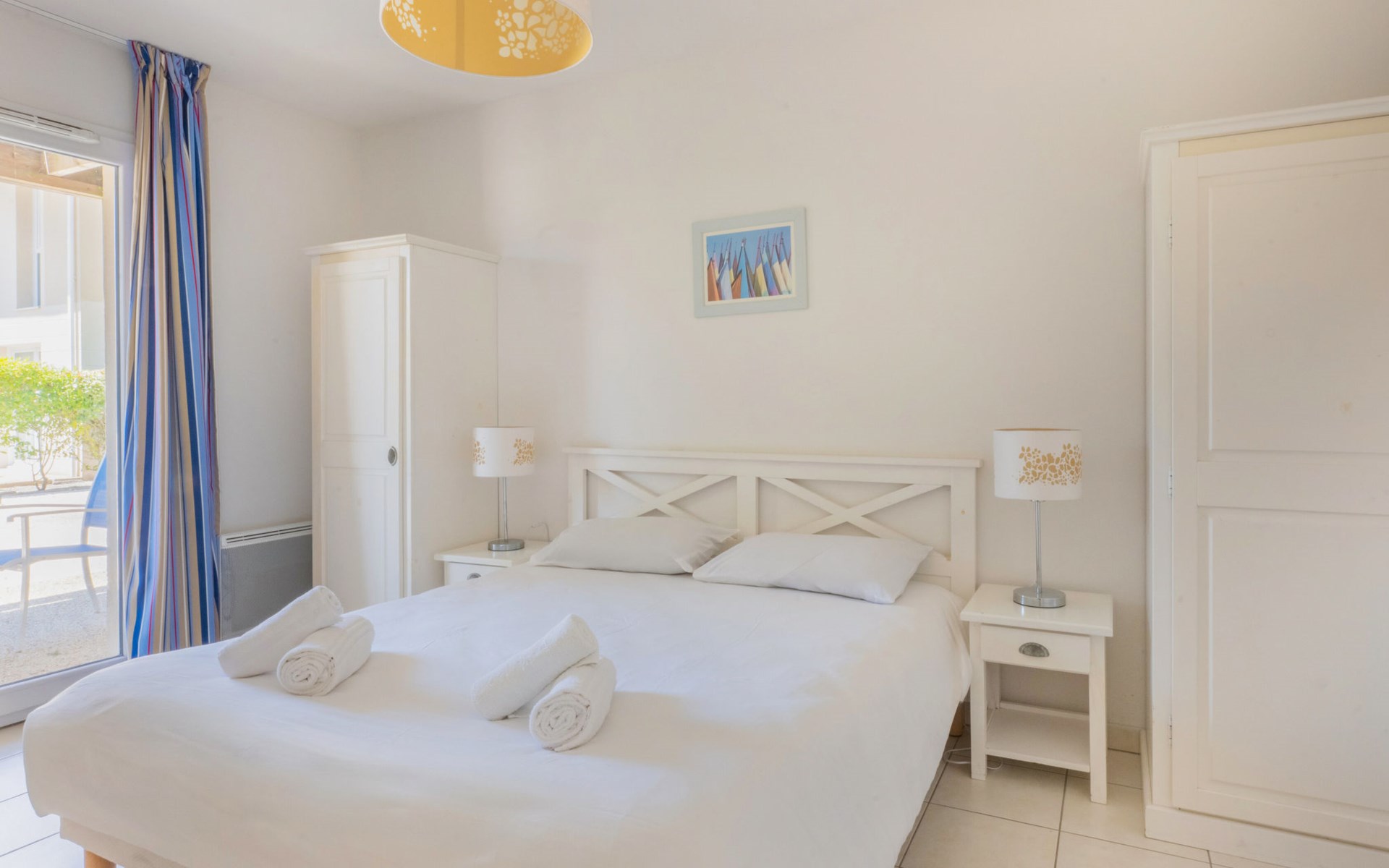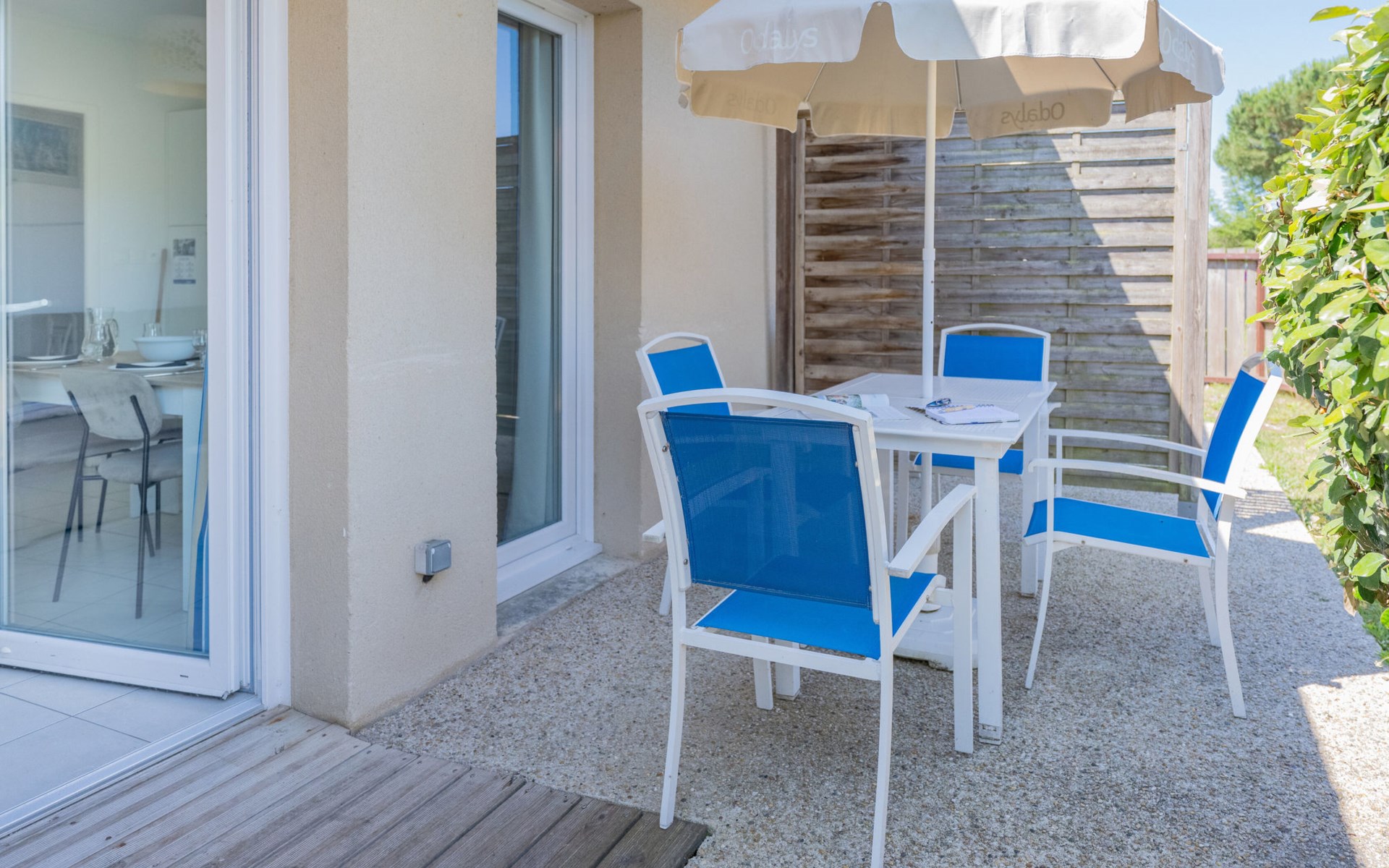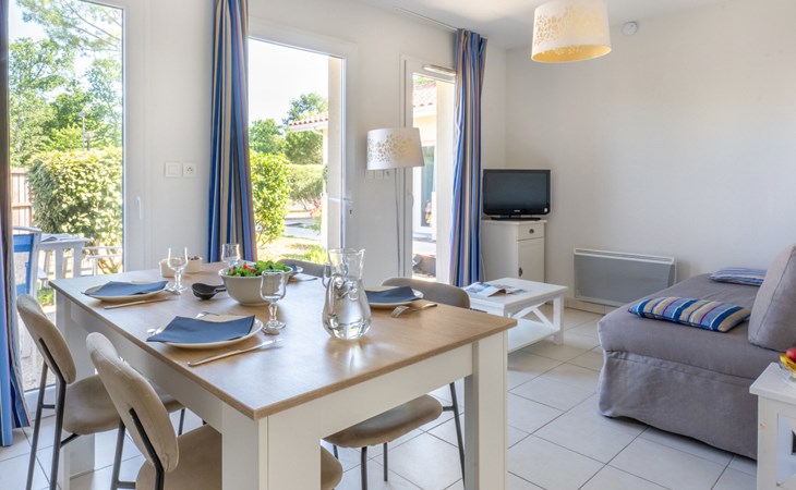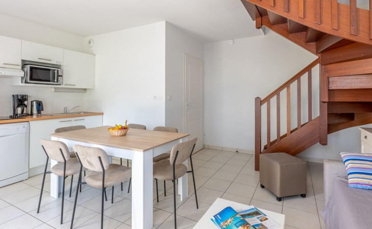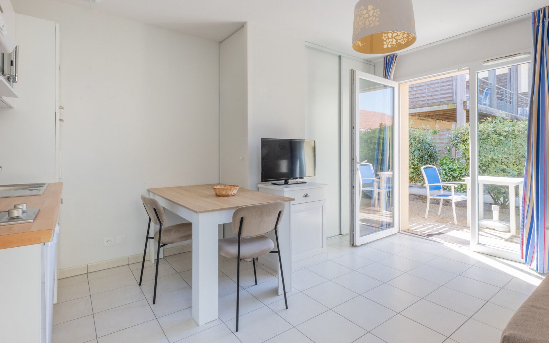 Resort "Le Petit Pont", 3 storeys. 79 apartments in the residence. In the district of Hourtin-Port 400 m from the centre of Hourtin-Port, 2.5 km from the centre of Hourtin, 65 km from the centre of Bordeaux, 12 km from the sea, 700 m from the lake, 12 km from the beach. For shared use: property (fenced) with lawn and trees, swimming pool heated, fenced (14 x 5 m, seasonal availability: 01.May. - 31.Sep.). Children's pool, table tennis, boccia, beach volleyball, children's playground. In the complex: reception, fitness room, steam room (extra). Storage room for bicycles, washing machine, tumble dryer (for shared use, extra). Parking on the premises. Shop 400 m, bus stop 3 km, sandy beach "Hourtin-Plage" 12 km, bathing lake "Lac d'Hourtin" 700 m. Please note: the photograph shows a typical example. The holiday properties may differ in living space, floorplan, equipment and furnishing.