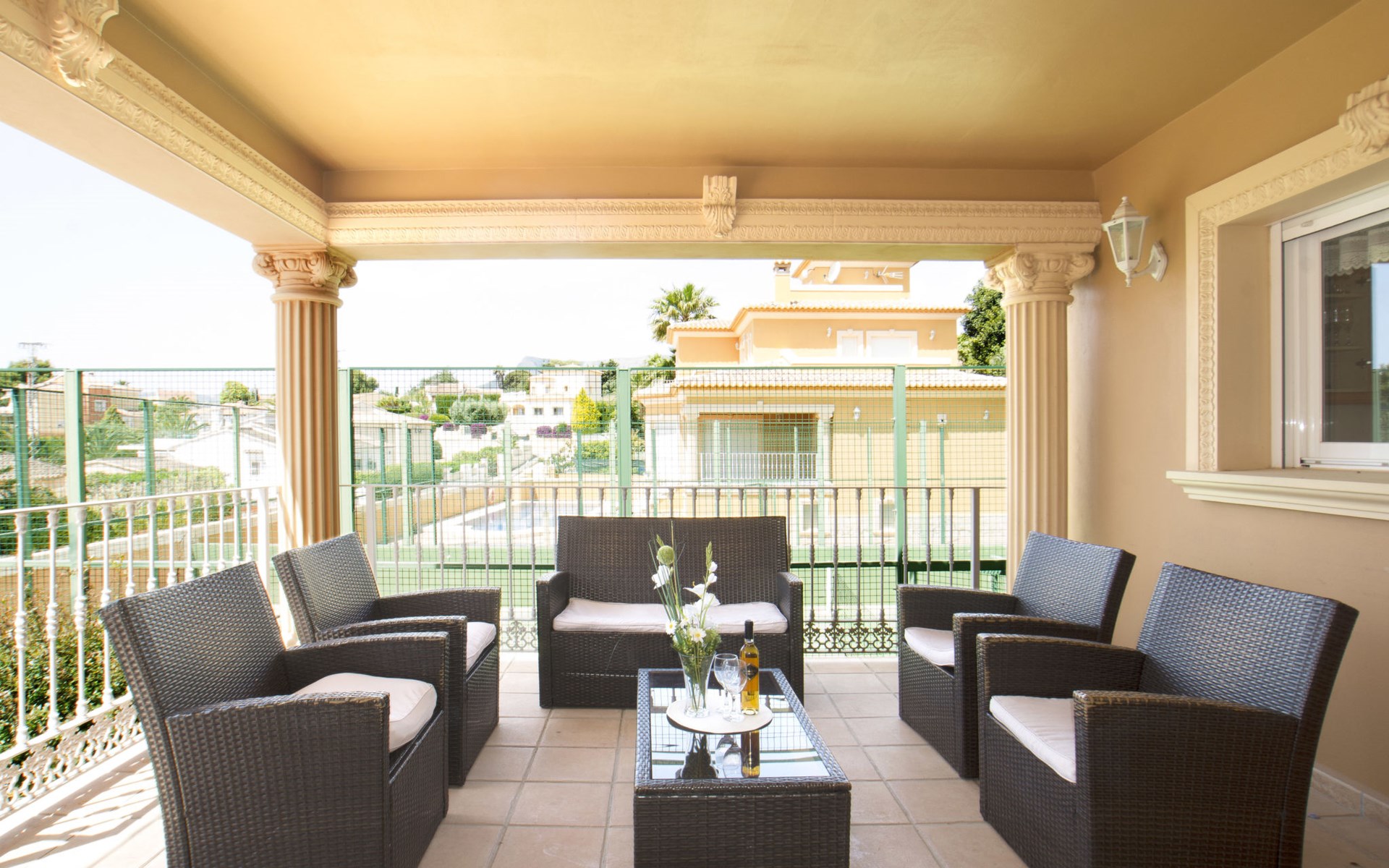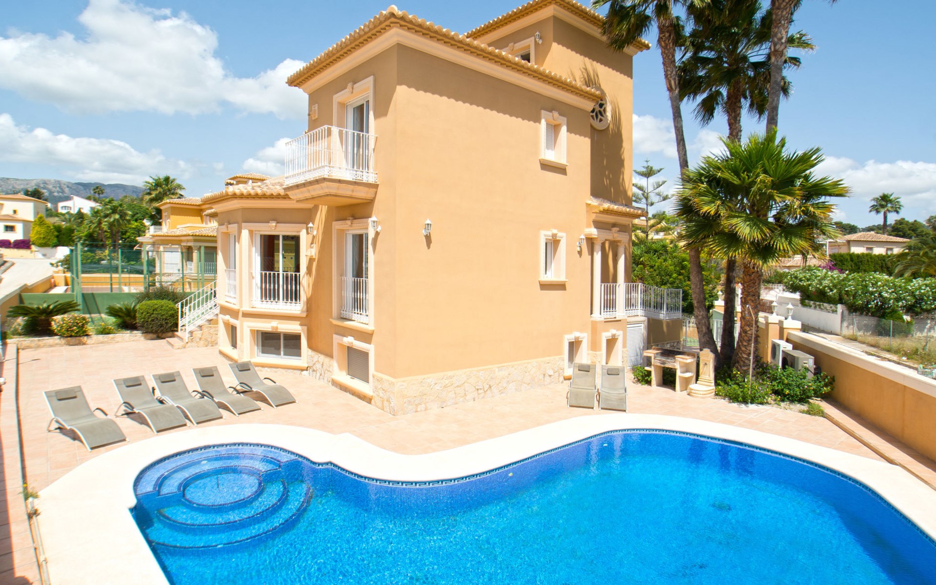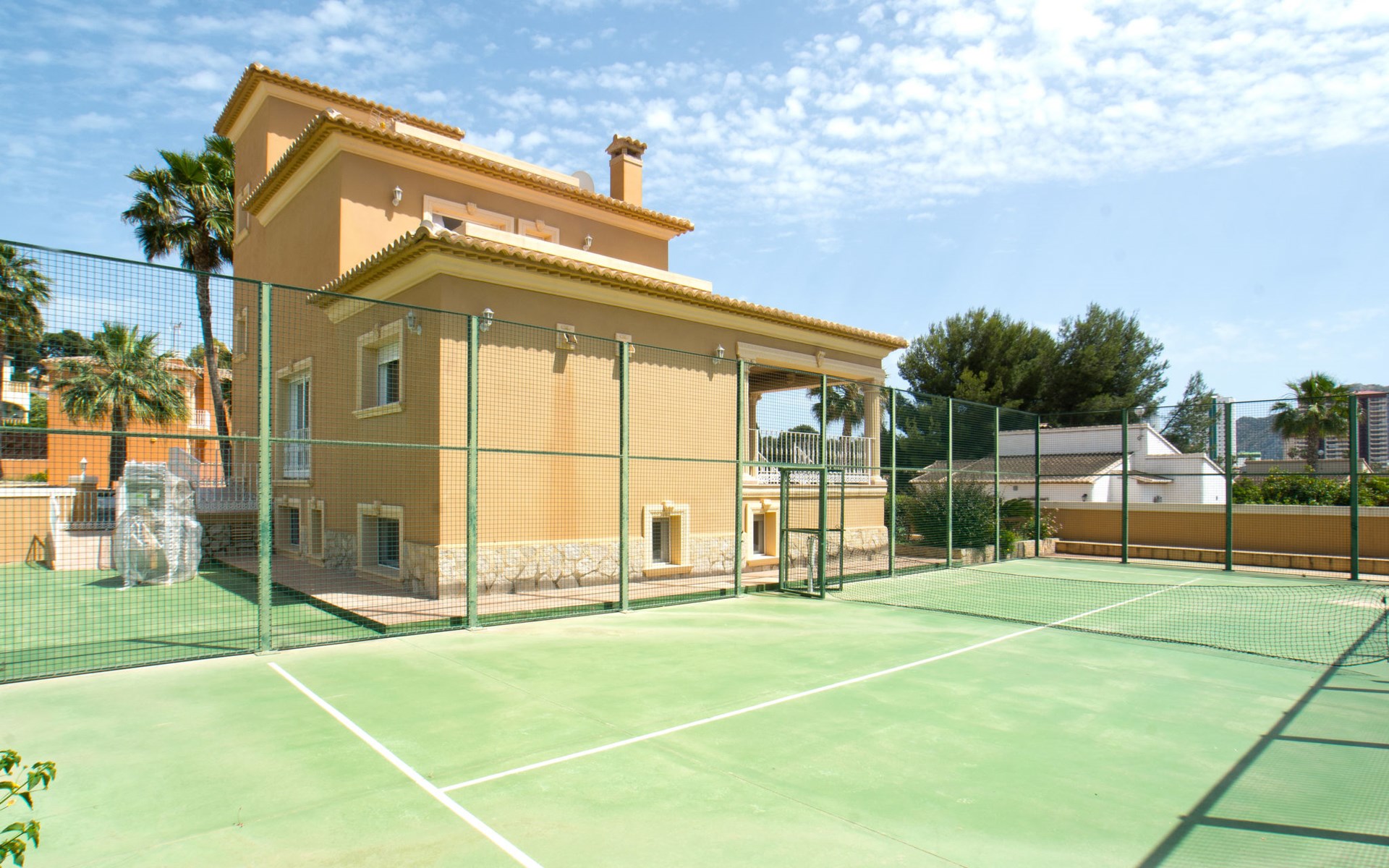 Large, comfortable villa "Nadaltenis". 3.6 km from the centre of Calpe, 25 km from the centre of Benidorm, 60 km from the centre of Alicante, in a quiet position, 800 m from the sea, 1.5 km from the beach. Private: property 772 m2 (fenced), garden, swimming pool kidney shaped (10 x 8 m, depth 120 - 180 cm, seasonal availability: 01.Jan. - 31.Dec.). Outdoor shower, tennis, garden furniture, barbecue, parking (for 5 cars) on the premises. Supermarket 1 km, restaurant 1 km, bus stop 800 m, sandy beach "La Fossa" 1.5 km. Nearby attractions: Aqualandia 25 km, Terra Mitica 35 km, Aeropuerto El Altet ALicante-Elche 75 km. Hiking paths: PeƱon de Ifach 3 km.