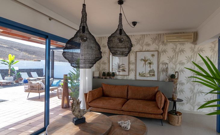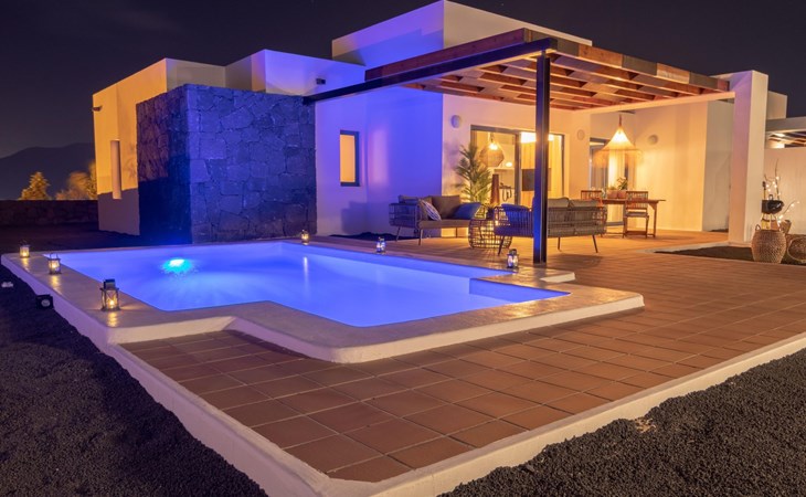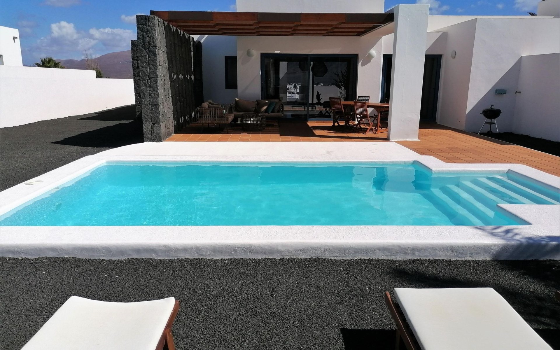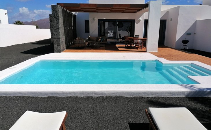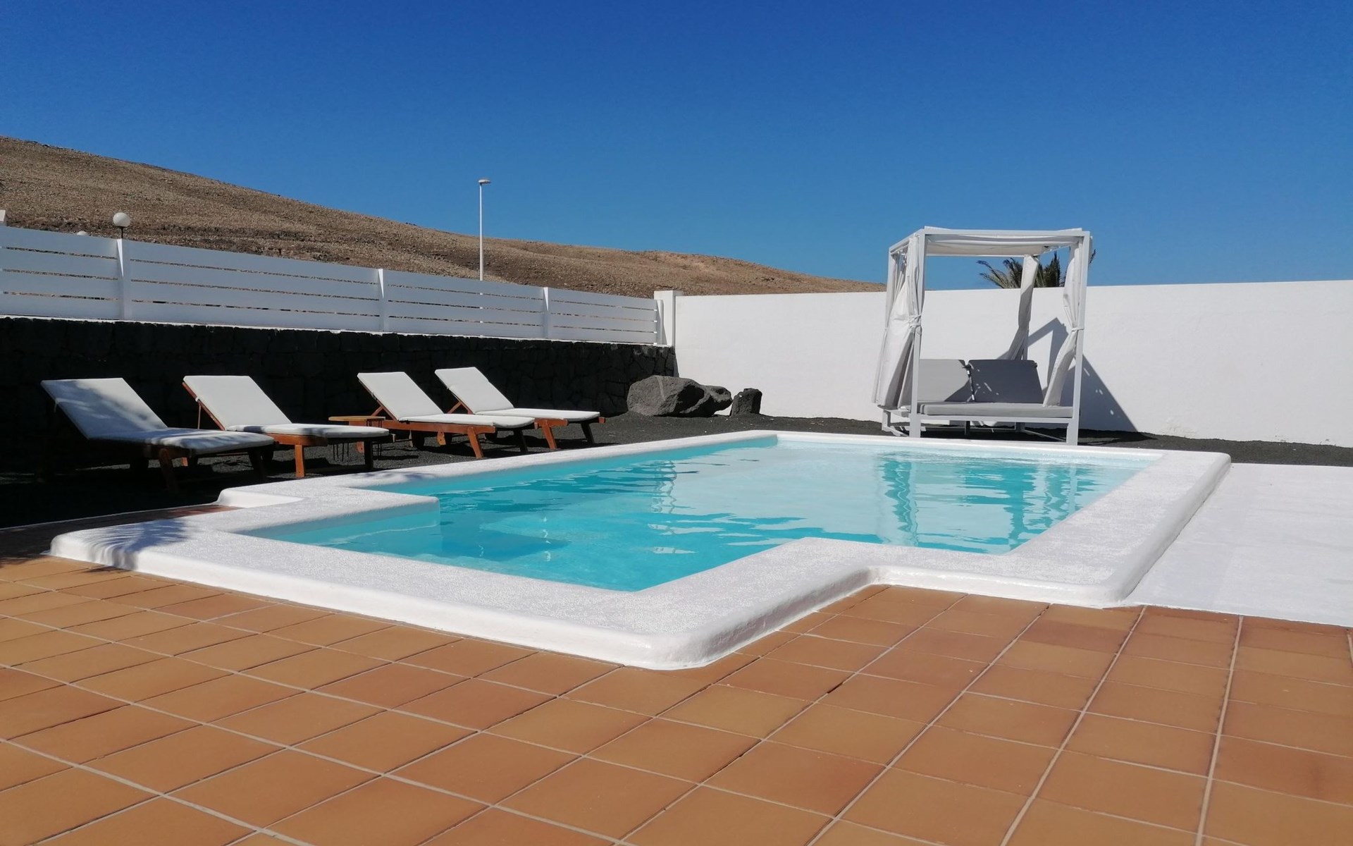 Bellavista 3 km from Playa Blanca: Beautiful terraced house "Bellavista". 2.5 km from the sea. Private: property 500 m2, swimming pool angular, heated (6 x 4 m, seasonal availability: 01.Jan. - 31.Dec.) with internal staircase. Barbecue. Stepped path (14 steps) to the house. Supermarket 500 m, restaurant 1.5 km, bus stop "El Pueblito" 550 m, sandy beach "Flaamingo" 2.5 km. Golf course (18 hole) 32 km, riding stable 1.5 km. Nearby attractions: Paque acĂșatico Agualava 1.8 km. Please note: car recommended.