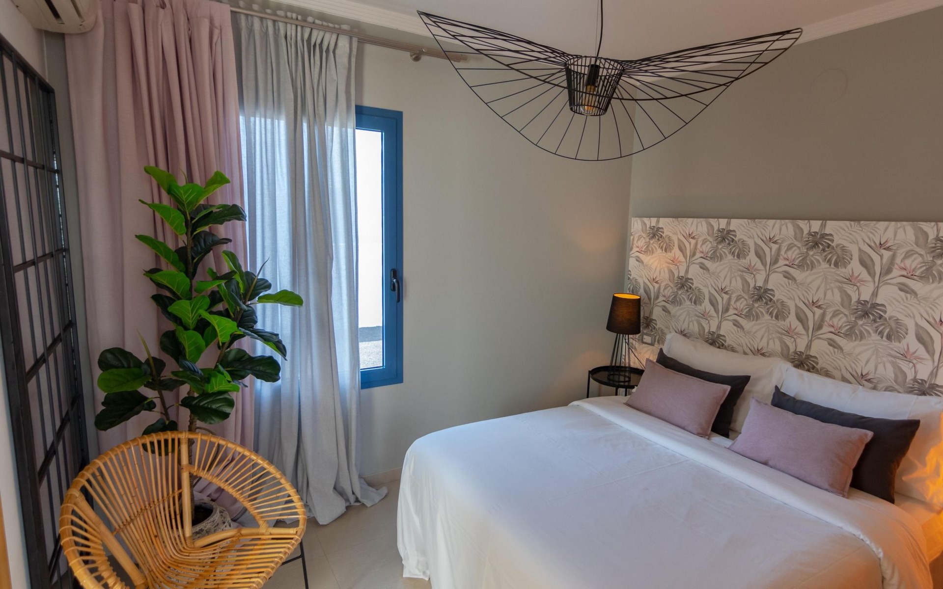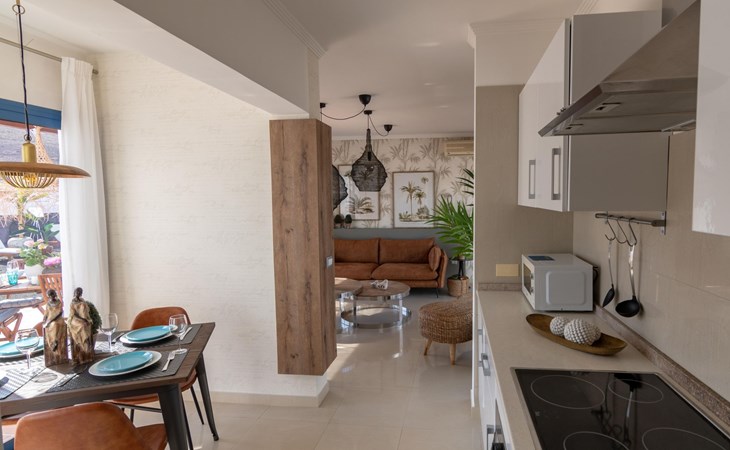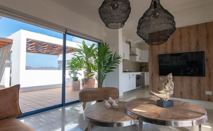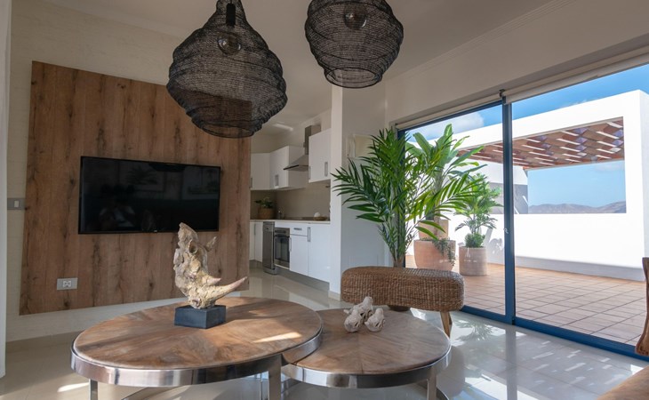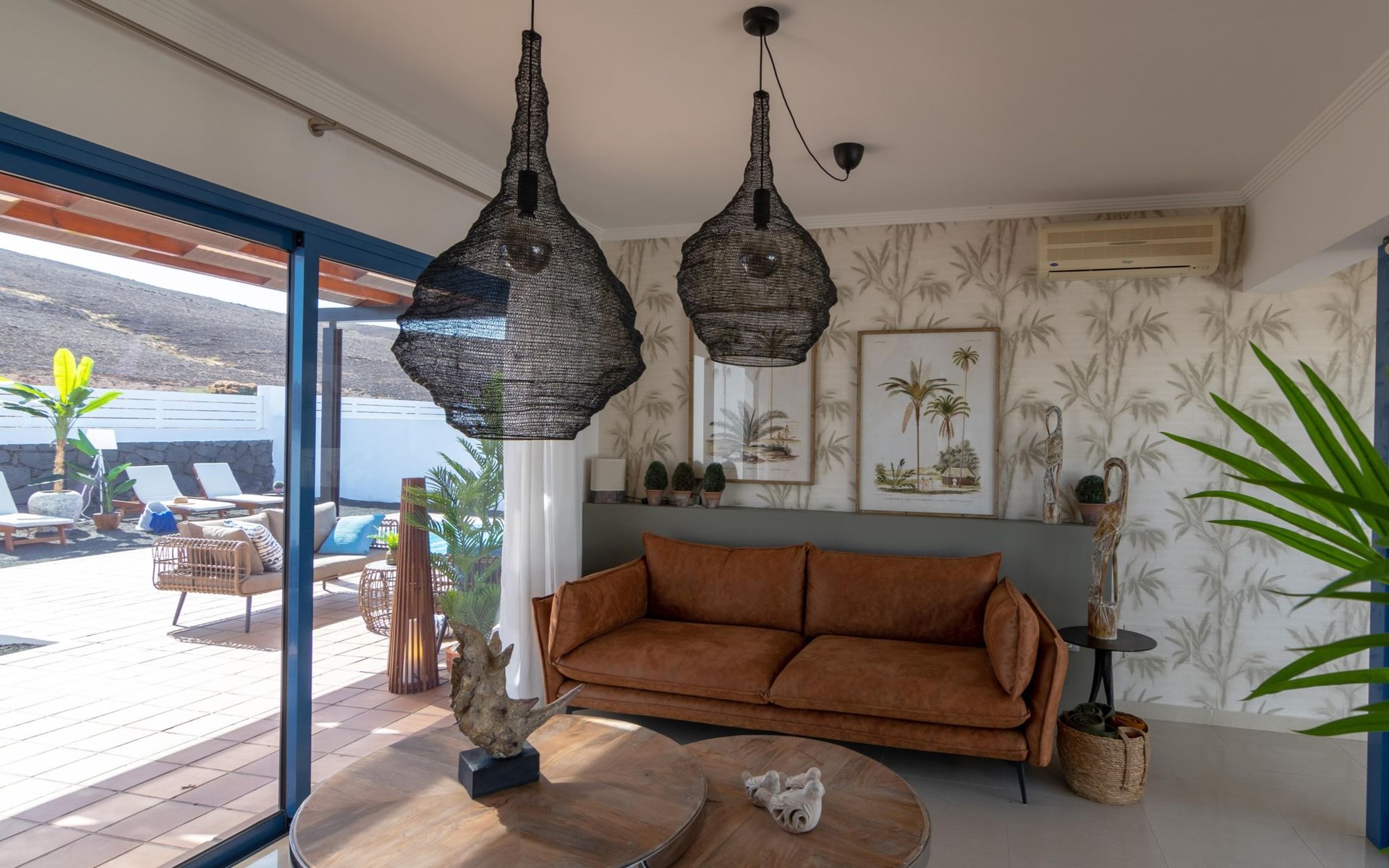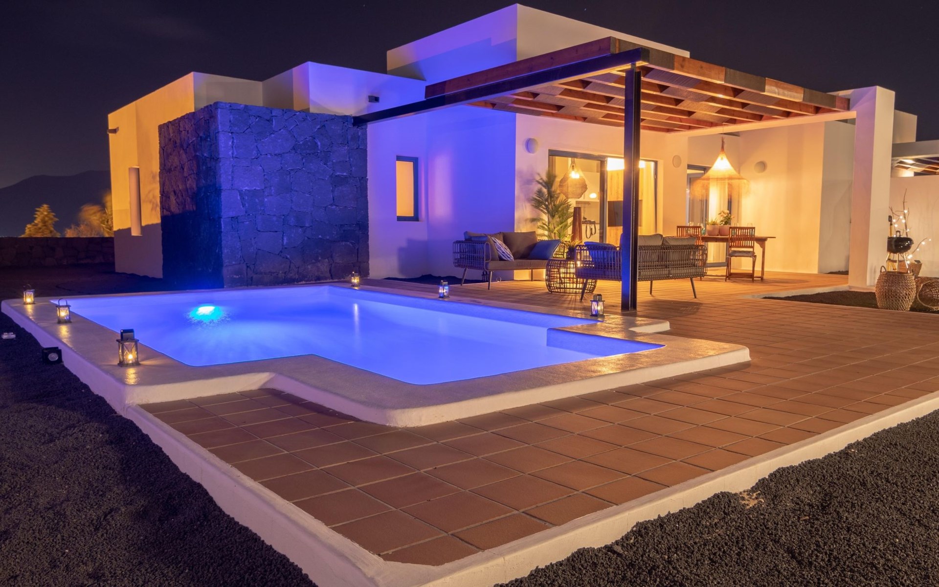 Bellavista 3 km from Playa Blanca: Beautiful terraced house "Bellavista". 2.5 km from the sea. Private: property 500 m2, swimming pool angular, heated (6 x 4 m, seasonal availability: 01.Jan. - 31.Dec.) with internal staircase. Barbecue. Stepped path (14 steps) to the house. Supermarket 500 m, restaurant 1.5 km, bus stop "El Pueblito" 550 m, sandy beach "Flaamingo" 2.5 km. Golf course (18 hole) 32 km, riding stable 1.5 km. Nearby attractions: Paque acĂșatico Agualava 1.8 km. Please note: car recommended.