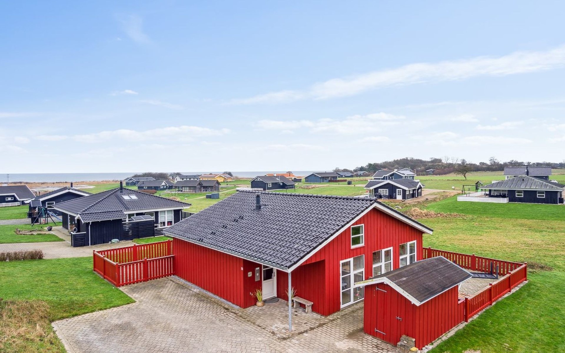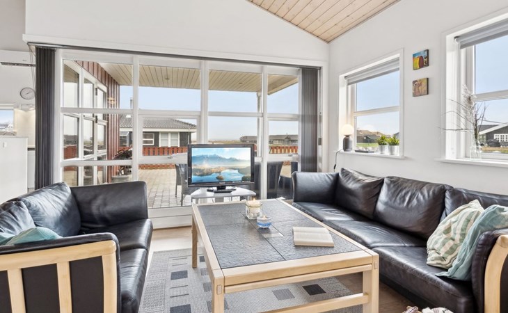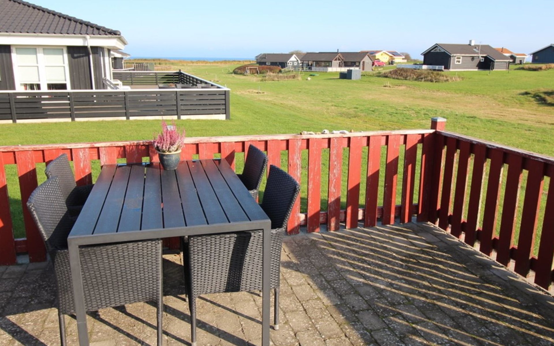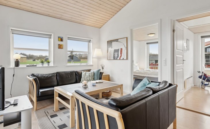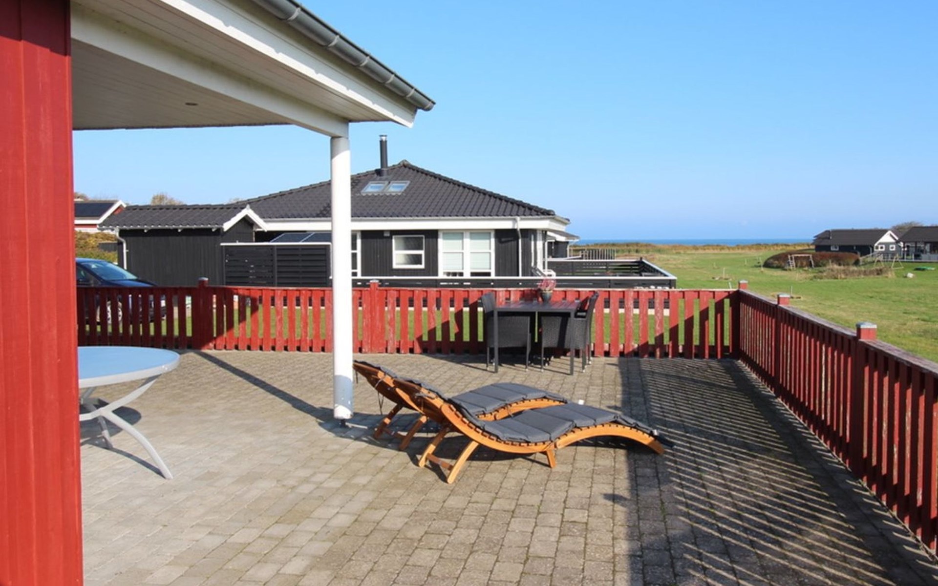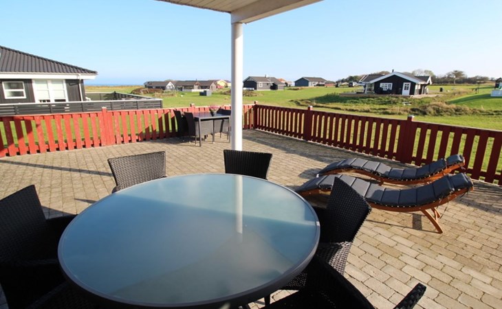 Single-family house, built in 2006. 200 m from the sea. Private: property 800 m2, well-kept garden. Barbecue, children's playground. In the house: sauna, washing machine, tumble dryer. Parking at the house. Grocery 4 km. Golf course 5 km. The owner does not accept any youth groups.