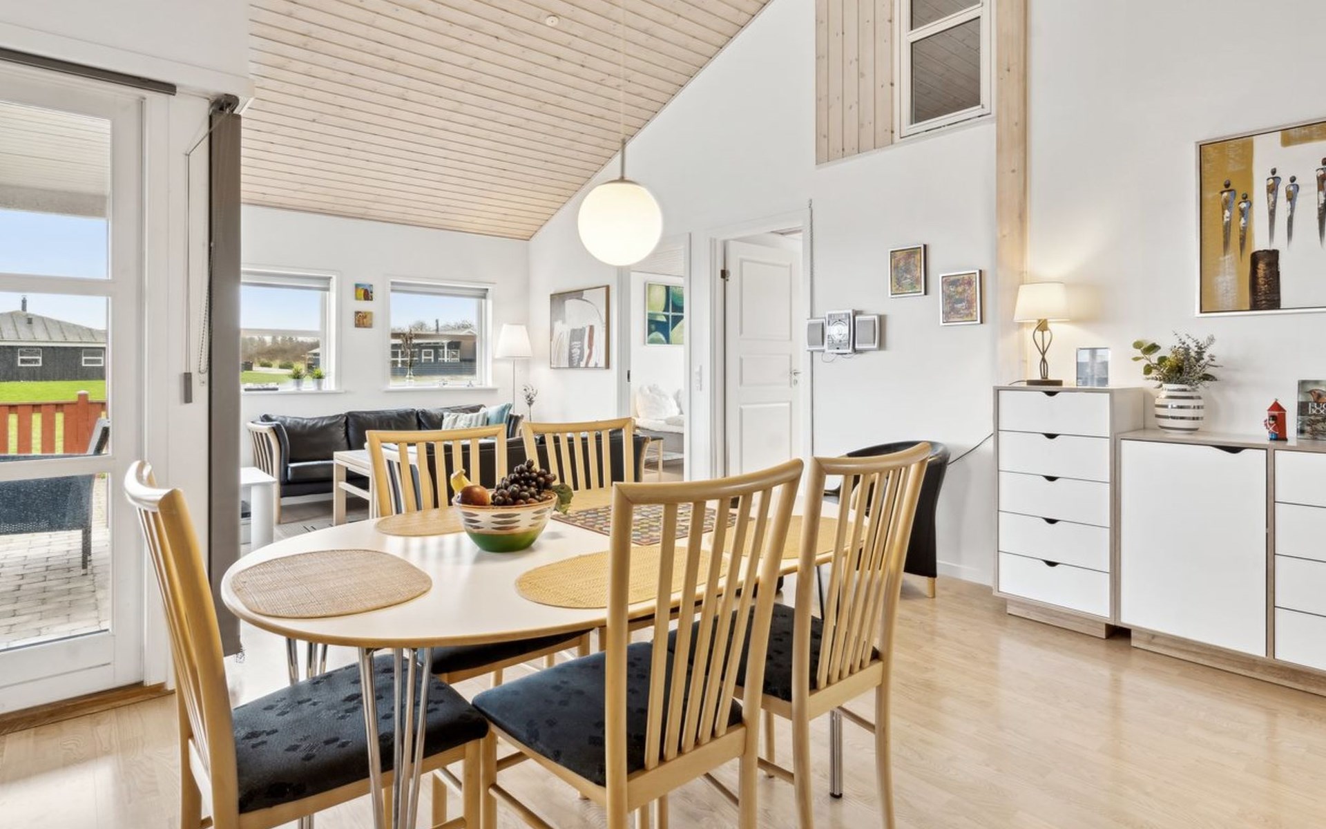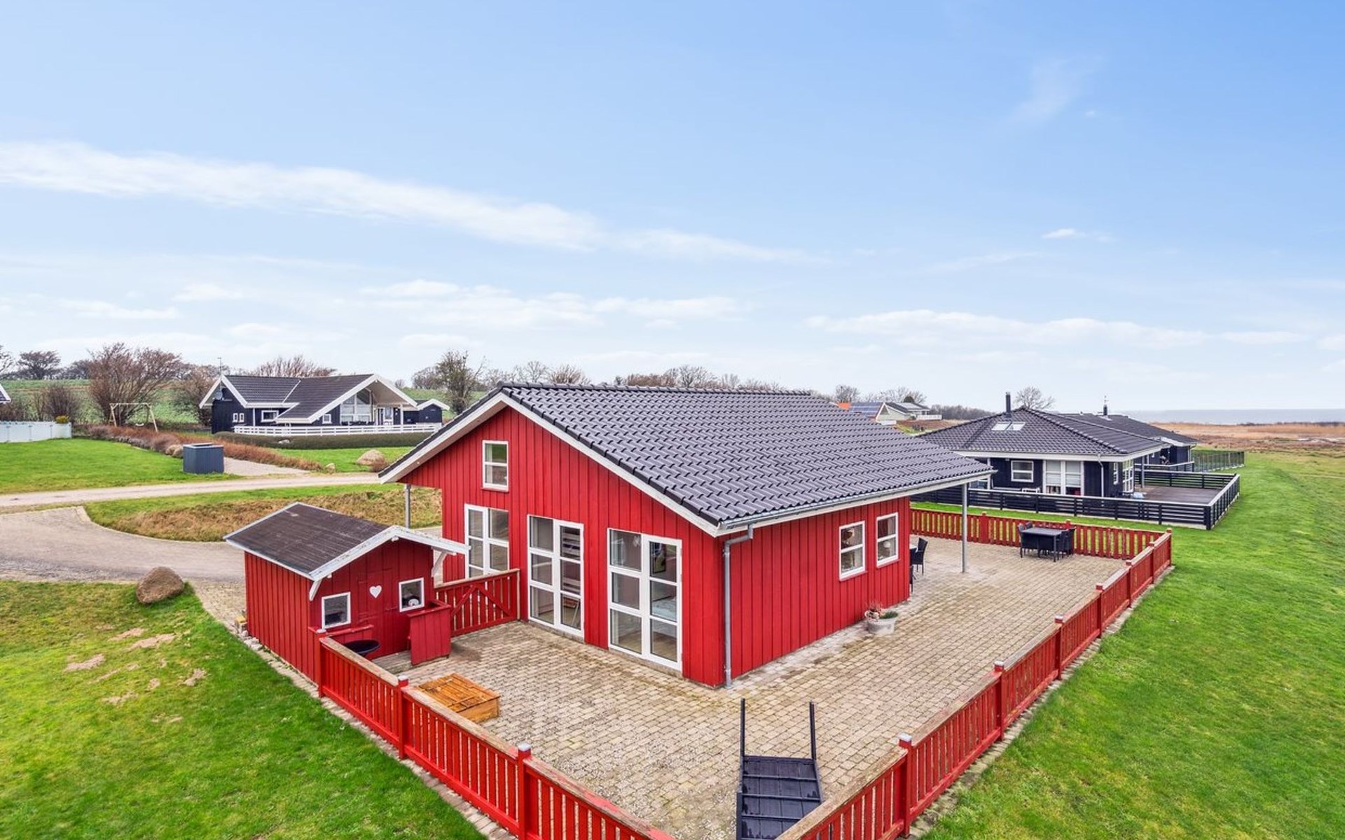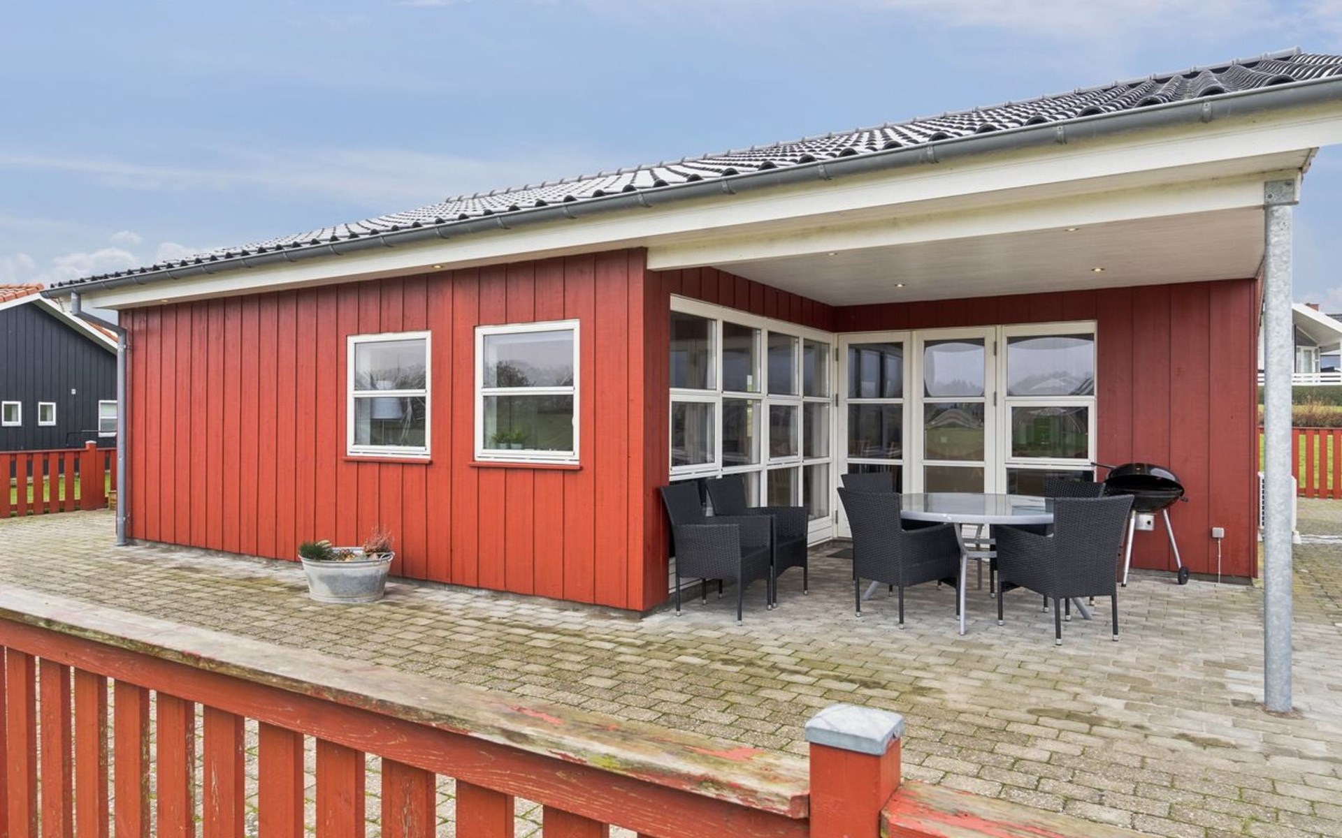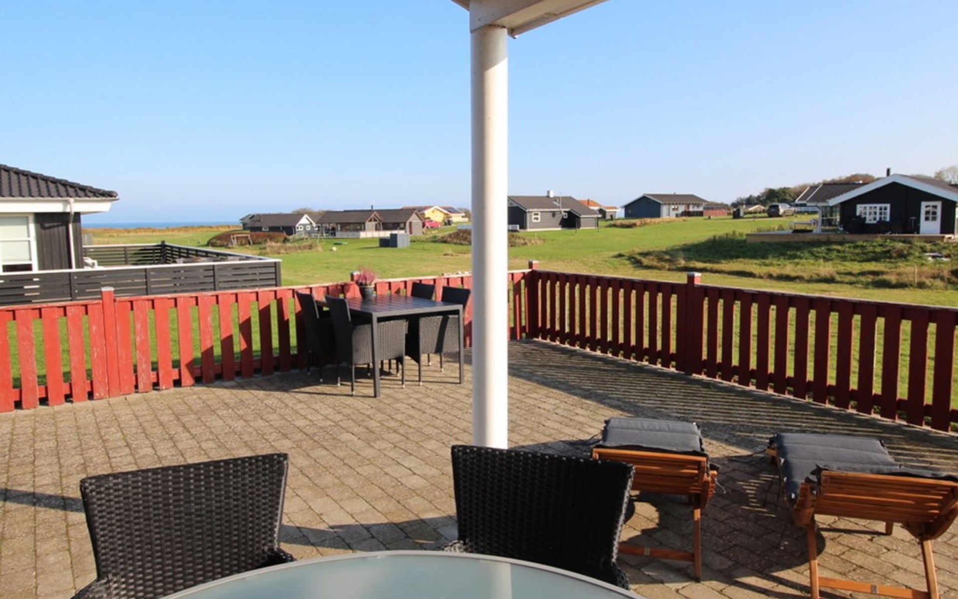 Single-family house, built in 2006. 200 m from the sea. Private: property 800 m2, well-kept garden. Barbecue, children's playground. In the house: sauna, washing machine, tumble dryer. Parking at the house. Grocery 4 km. Golf course 5 km. The owner does not accept any youth groups.