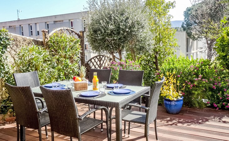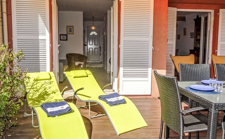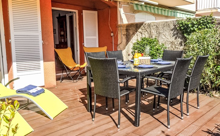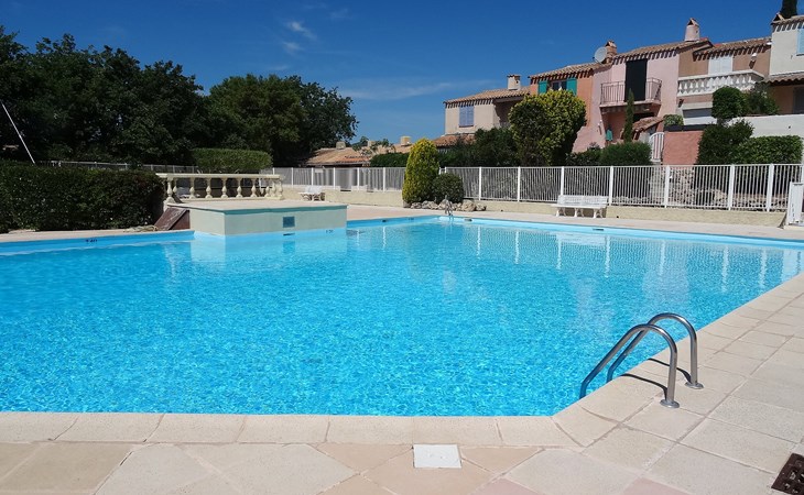 Beautiful residence "Les Mas de Cogolin". On the outskirts, 1.5 km from the centre of Cogolin, in a quiet position, 6 km from the sea, 6 km from the beach. For shared use: swimming pool (20 x 12 m, depth 120 - 240 cm, seasonal availability: 01.May. - 30.Sep.). Shop 1.5 km, grocery 1.5 km, supermarket 2 km, restaurant 1.5 km, bakery 1.5 km, bus stop "Rond point de Kock" 1.4 km, sandy beach "Marines de Gogolin" 6 km. Marina 6 km, sailing school 6 km, minigolf 4 km. Nearby attractions: Parc d'attractions Azur Park 4 km, Port Grimaud 4 km, Saint Tropez 11 km, Pampelonne 17 km, Cannes 84 km, Nice 110 km. Well-known lakes can easily be reached: Lac de Sainte Croix 92 km. Hiking paths: Massif de l'Esterel 50 km. Please note: car recommended.