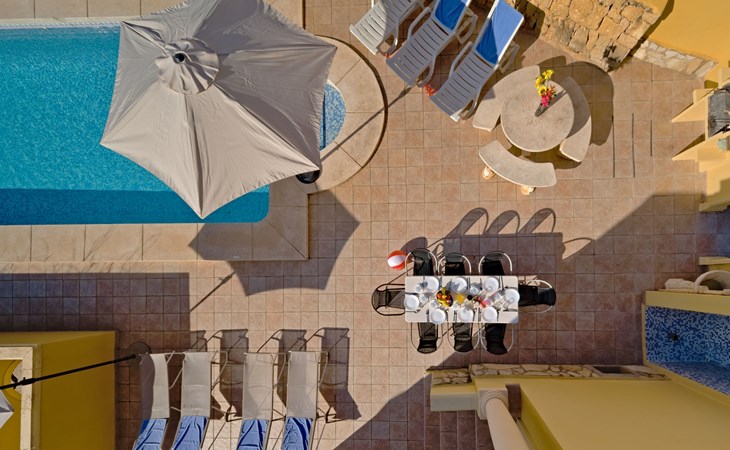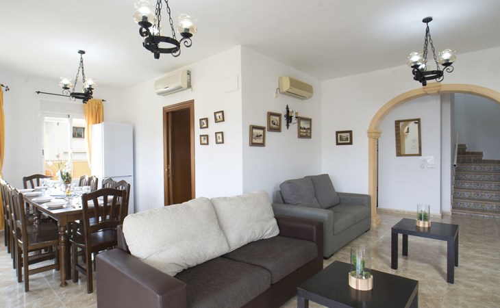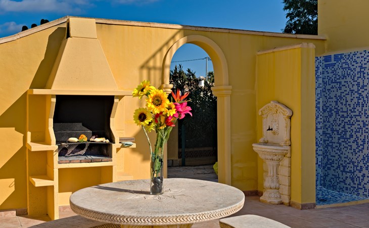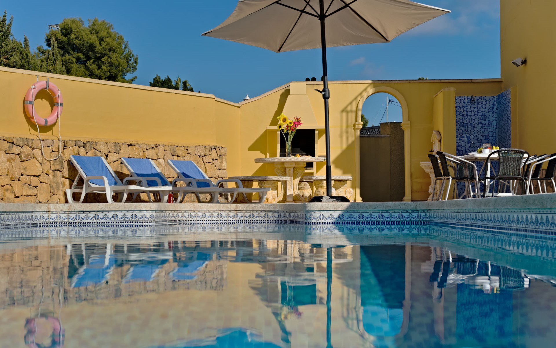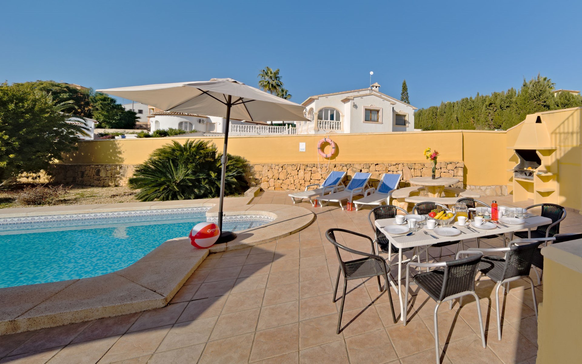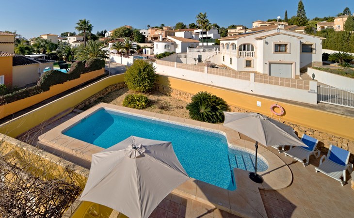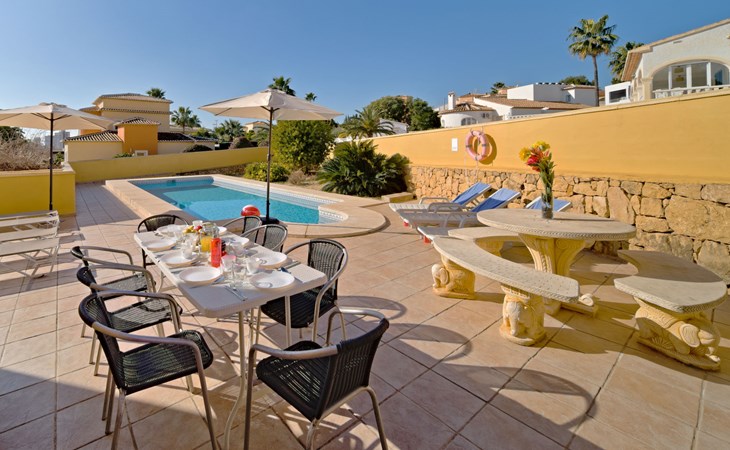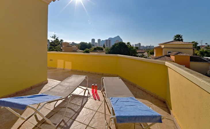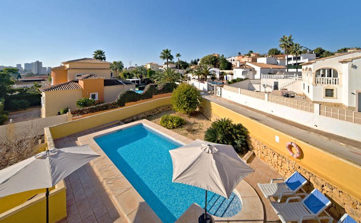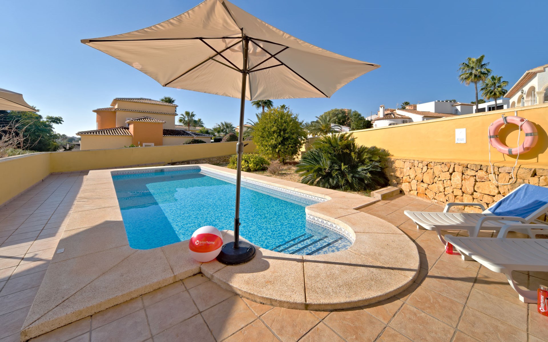 Villa "Acuario". 3.6 km from the centre of Calpe, 25 km from the centre of Benidorm, 60 km from the centre of Alicante, 800 m from the sea, 1.5 km from the beach. Private: property 819 m2 (fenced), wildlife garden and trees, swimming pool (8 x 4 m, depth 120 - 150 cm, seasonal availability: 01.Jan. - 31.Dec.). Outdoor shower, parking. Grocery 800 m, supermarket 1 km, bus stop 800 m, sandy beach "Playa de la Fossa" 1.6 km. Nearby attractions: Terra Mítica 35 km, Aqualandia 25 km, Benidorm Palace 25 km. Hiking paths: Peñon de Ifach 3 km.