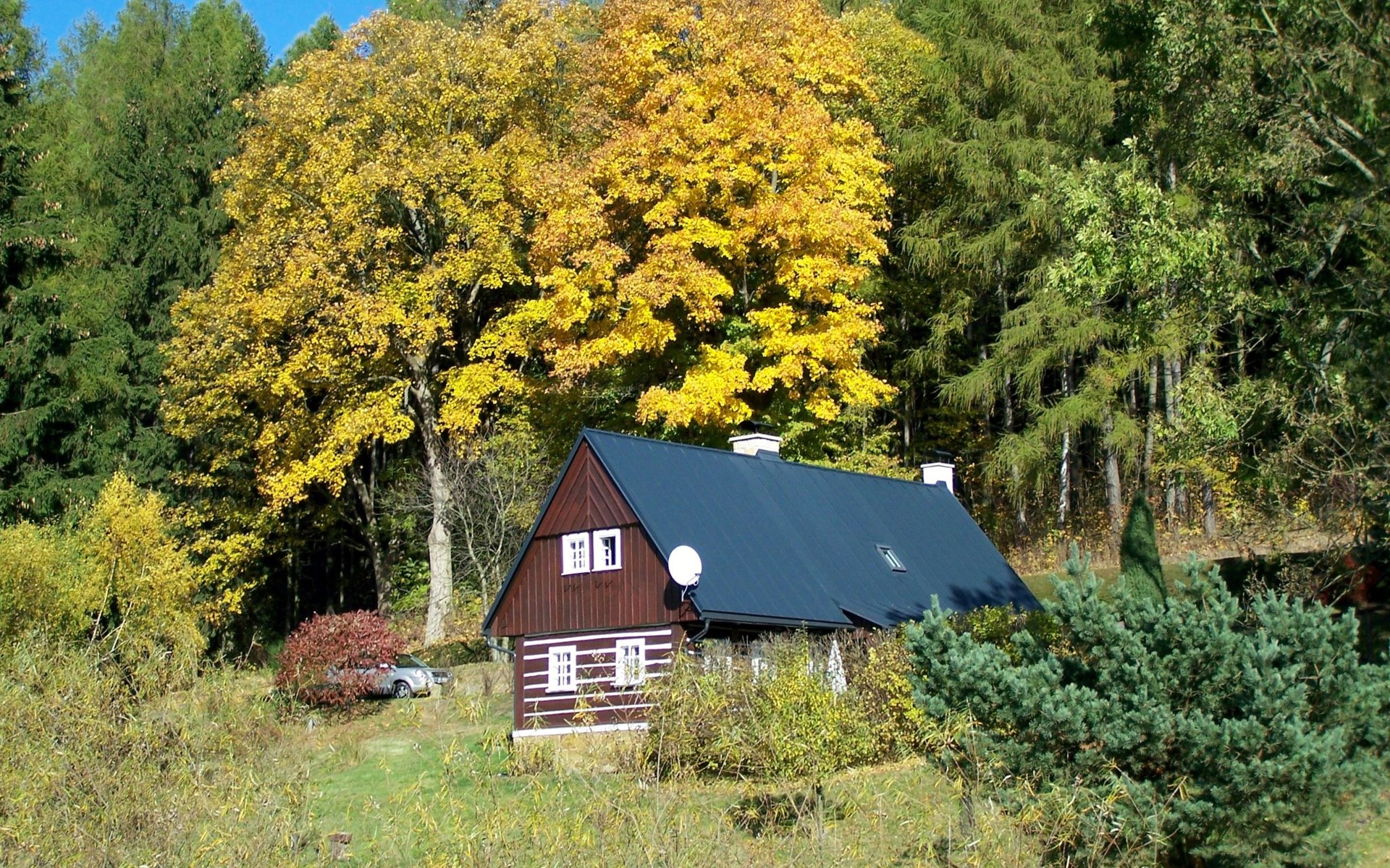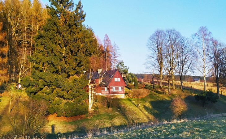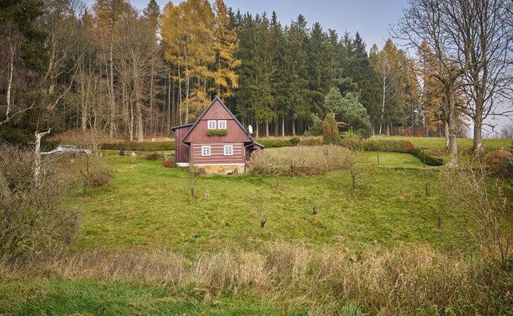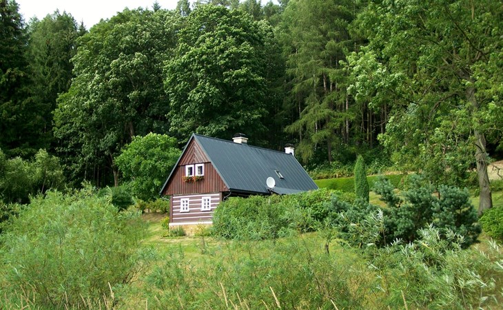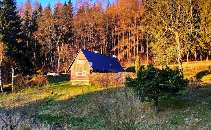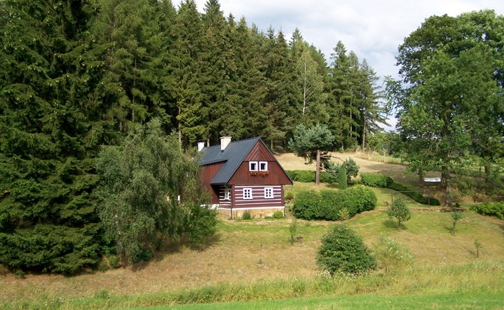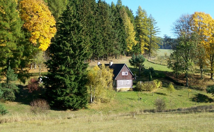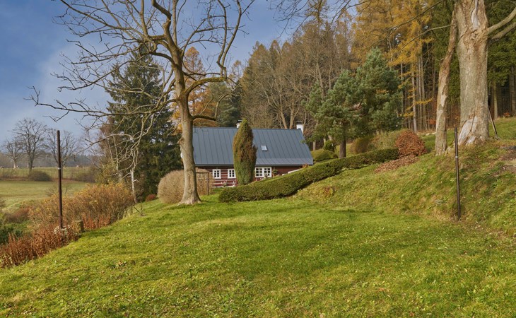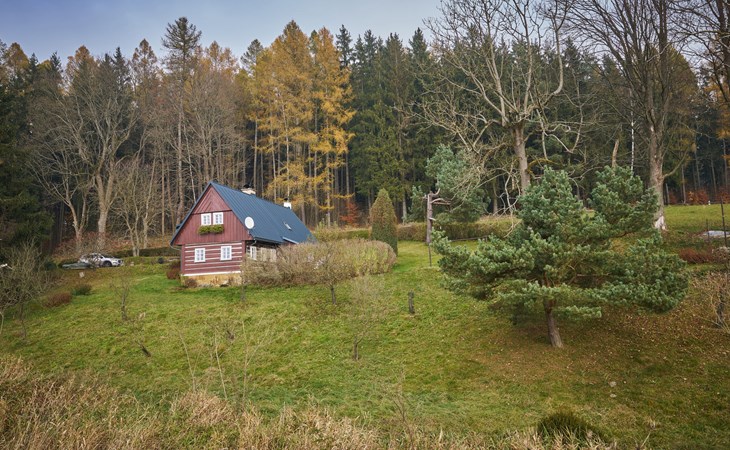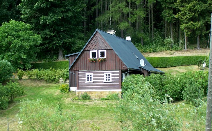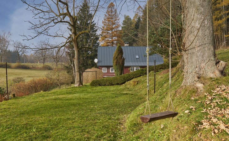 Zdoňov 5 km from Adršpach: Rustic country house, 2 storeys, detached, built in 1800, renovated in 1993, surrounded by trees and meadows. On the outskirts, in a quiet, elevated position, along the wooded area, in the countryside. Private: property 5'000 m2. Outdoor shower, badminton, garden furniture, barbecue, children's playground (swing). Motor access to the house (via unmade road). Parking at the house. Grocery 4 km, supermarket 4 km, restaurant 1 km, bus stop 1 km, railway station 5 km, outdoor swimming pool 9 km. Walking paths from the house 10 m. Nearby attractions: Adršpašské skály 5 km, Teplické skály 7 km, Trutnov 25 km.