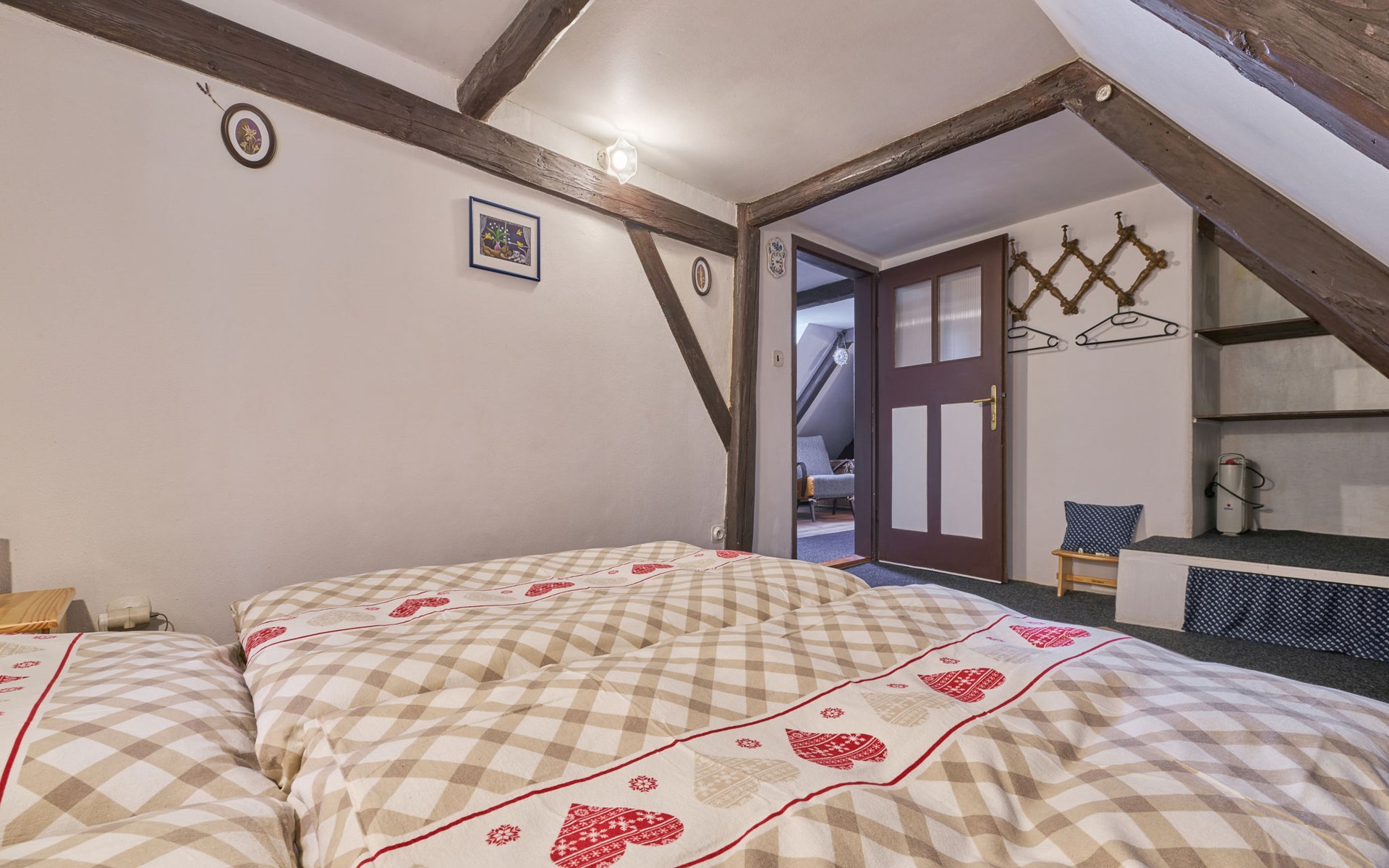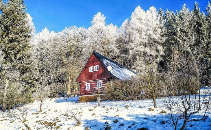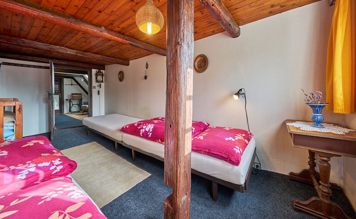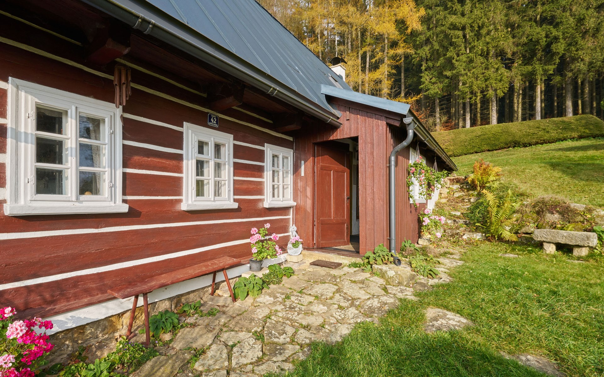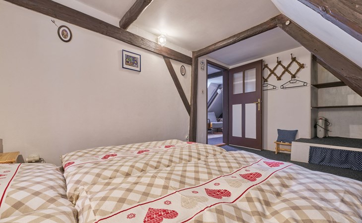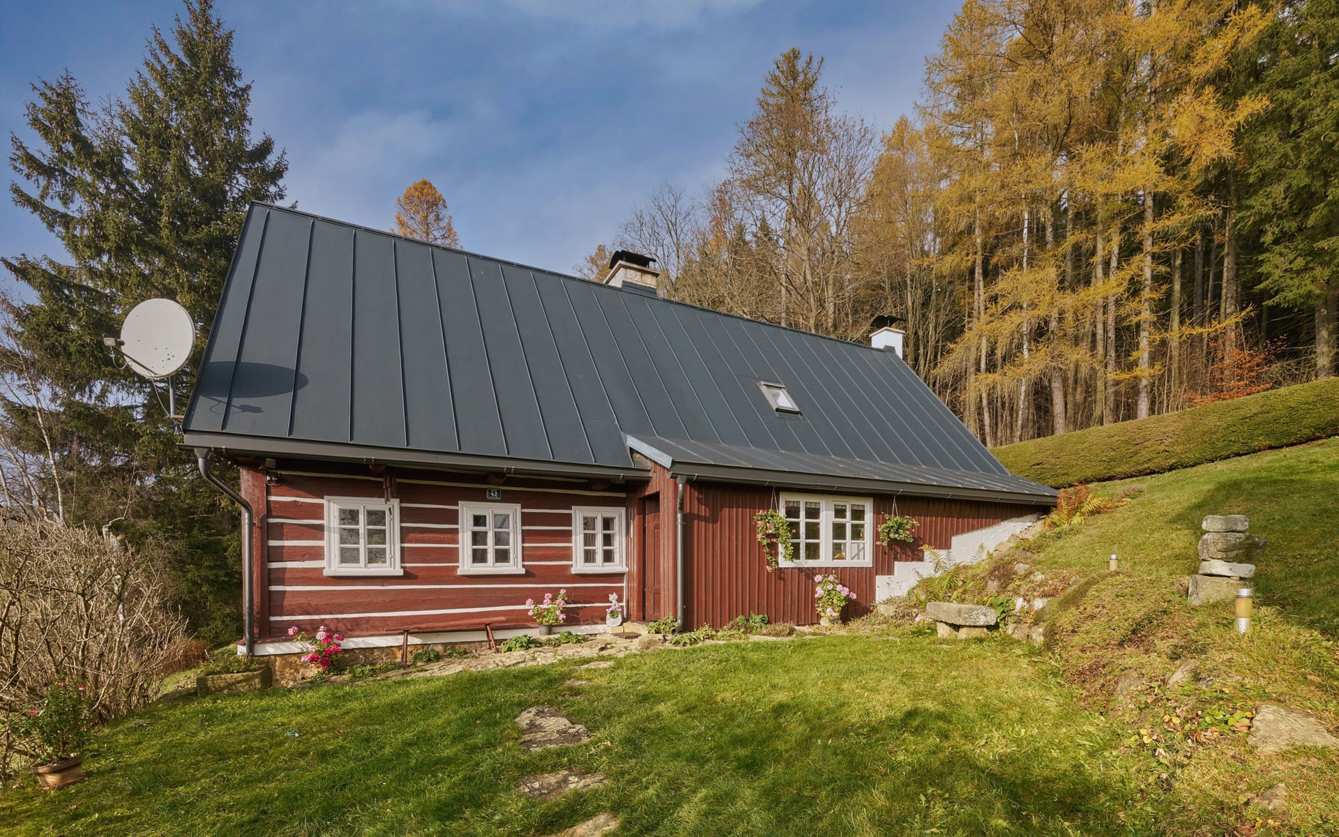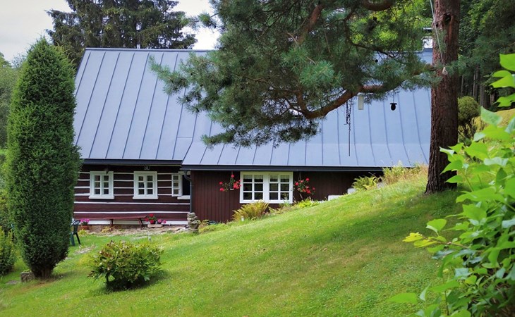 Zdoňov 5 km from Adršpach: Rustic country house, 2 storeys, detached, built in 1800, renovated in 1993, surrounded by trees and meadows. On the outskirts, in a quiet, elevated position, along the wooded area, in the countryside. Private: property 5'000 m2. Outdoor shower, badminton, garden furniture, barbecue, children's playground (swing). Motor access to the house (via unmade road). Parking at the house. Grocery 4 km, supermarket 4 km, restaurant 1 km, bus stop 1 km, railway station 5 km, outdoor swimming pool 9 km. Walking paths from the house 10 m. Nearby attractions: Adršpašské skály 5 km, Teplické skály 7 km, Trutnov 25 km.