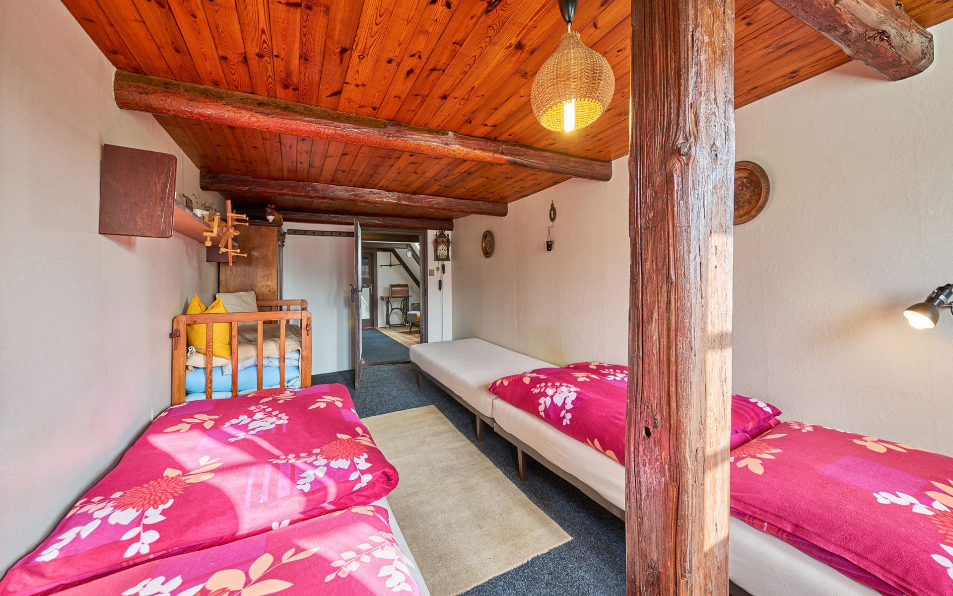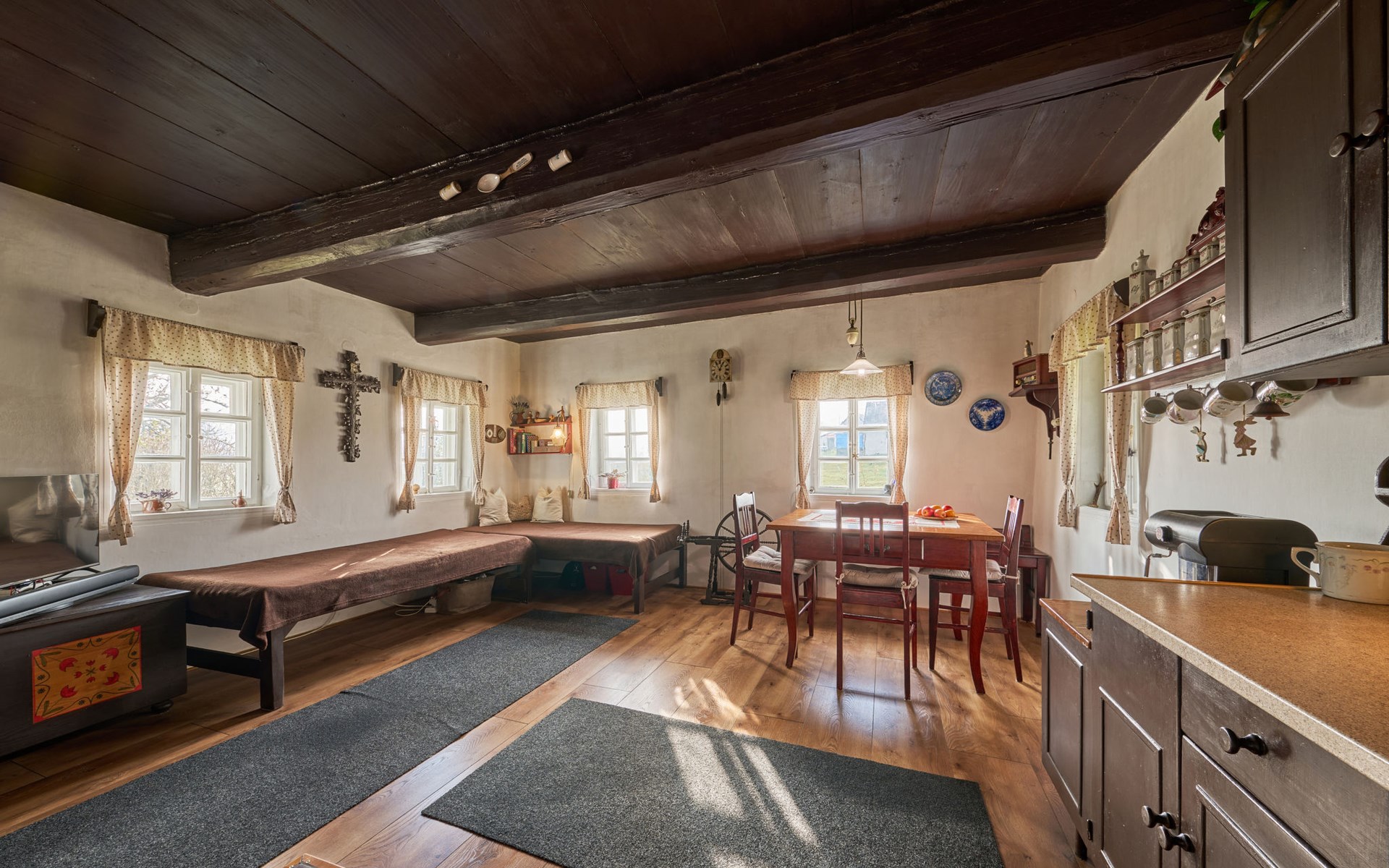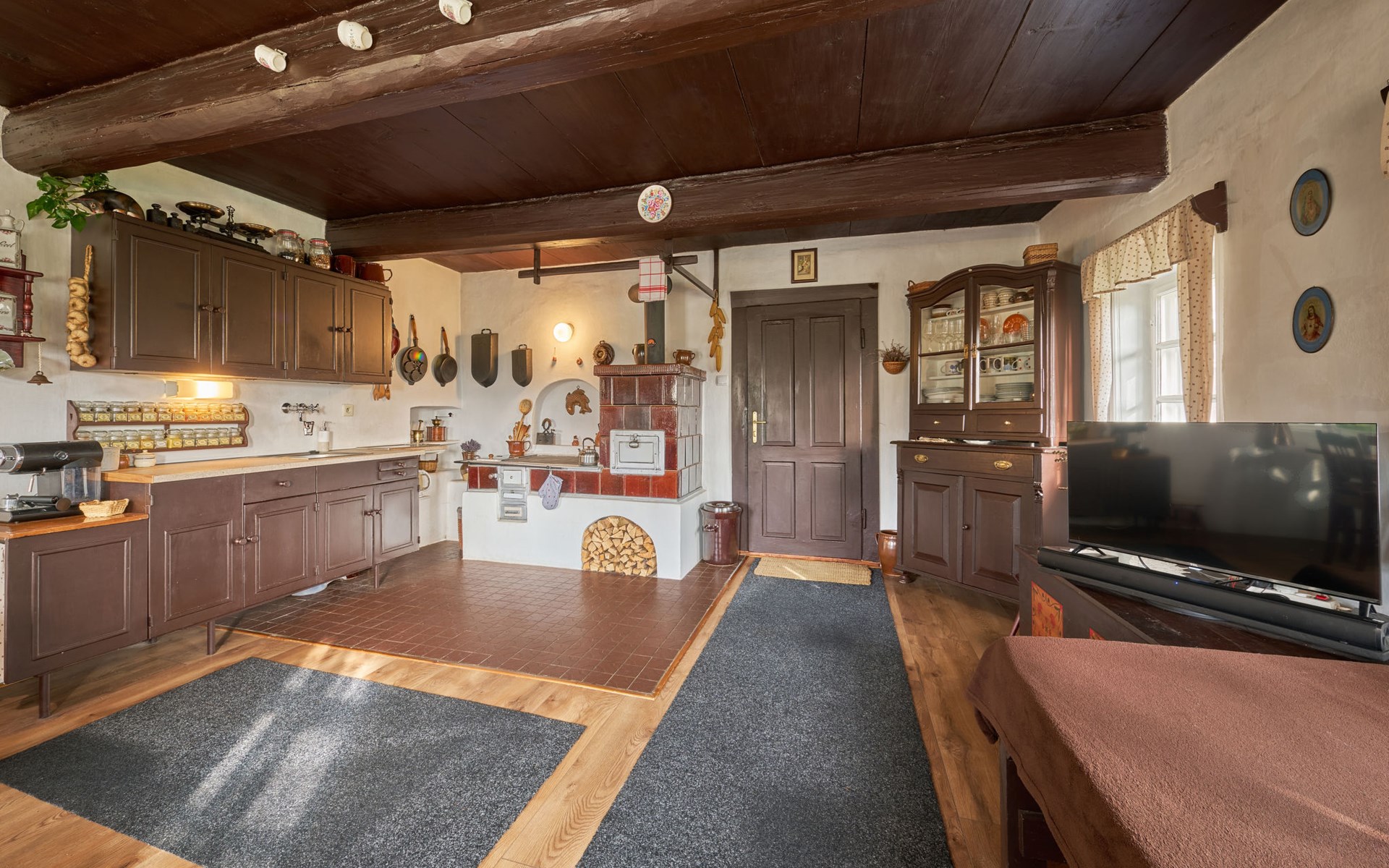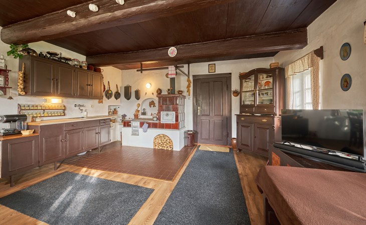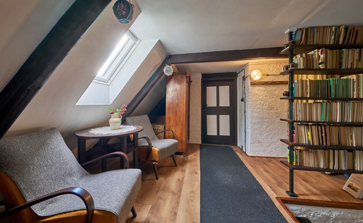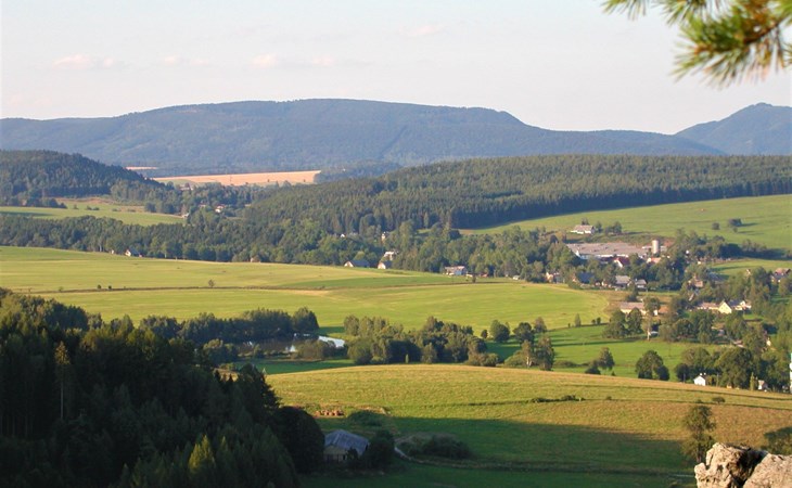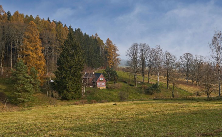 Zdoňov 5 km from Adršpach: Rustic country house, 2 storeys, detached, built in 1800, renovated in 1993, surrounded by trees and meadows. On the outskirts, in a quiet, elevated position, along the wooded area, in the countryside. Private: property 5'000 m2. Outdoor shower, badminton, garden furniture, barbecue, children's playground (swing). Motor access to the house (via unmade road). Parking at the house. Grocery 4 km, supermarket 4 km, restaurant 1 km, bus stop 1 km, railway station 5 km, outdoor swimming pool 9 km. Walking paths from the house 10 m. Nearby attractions: Adršpašské skály 5 km, Teplické skály 7 km, Trutnov 25 km.
