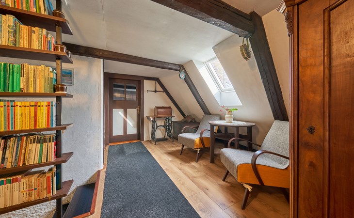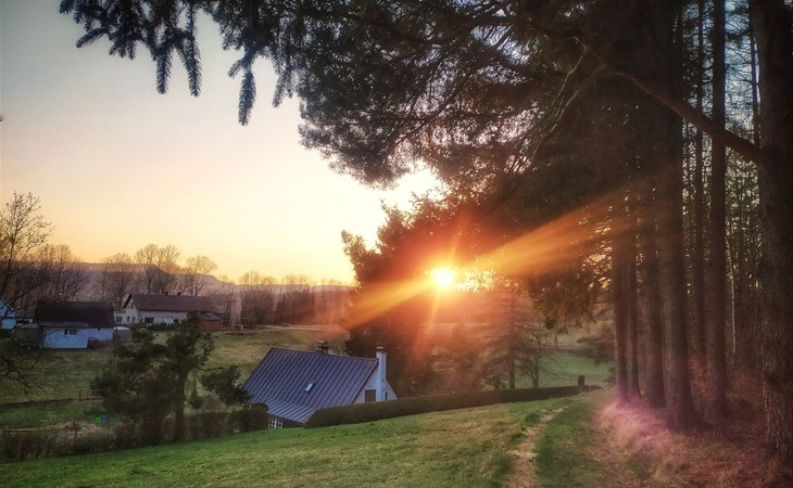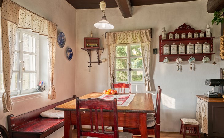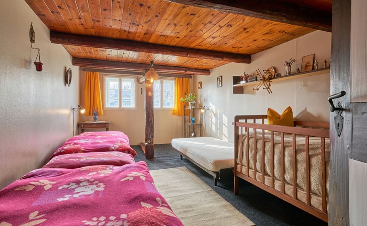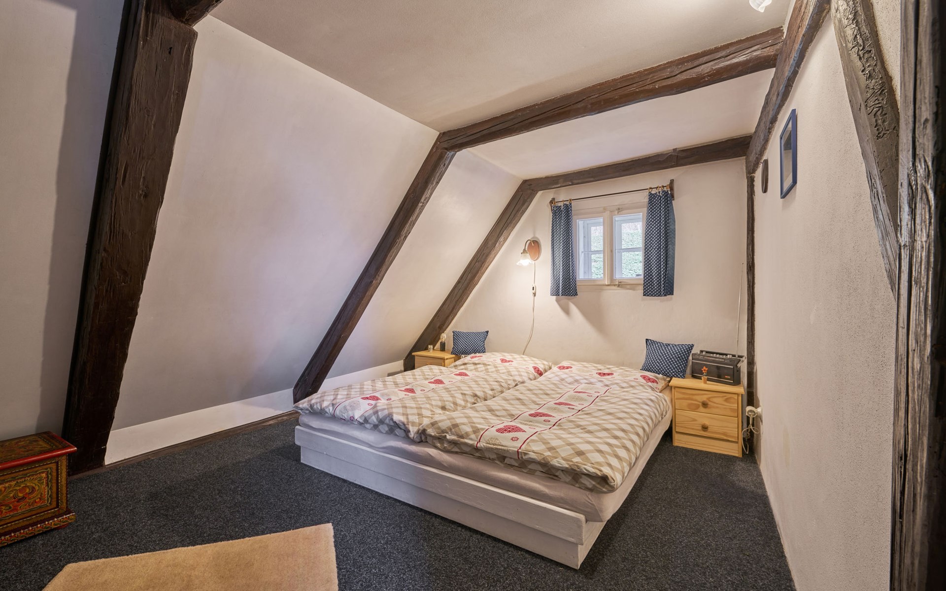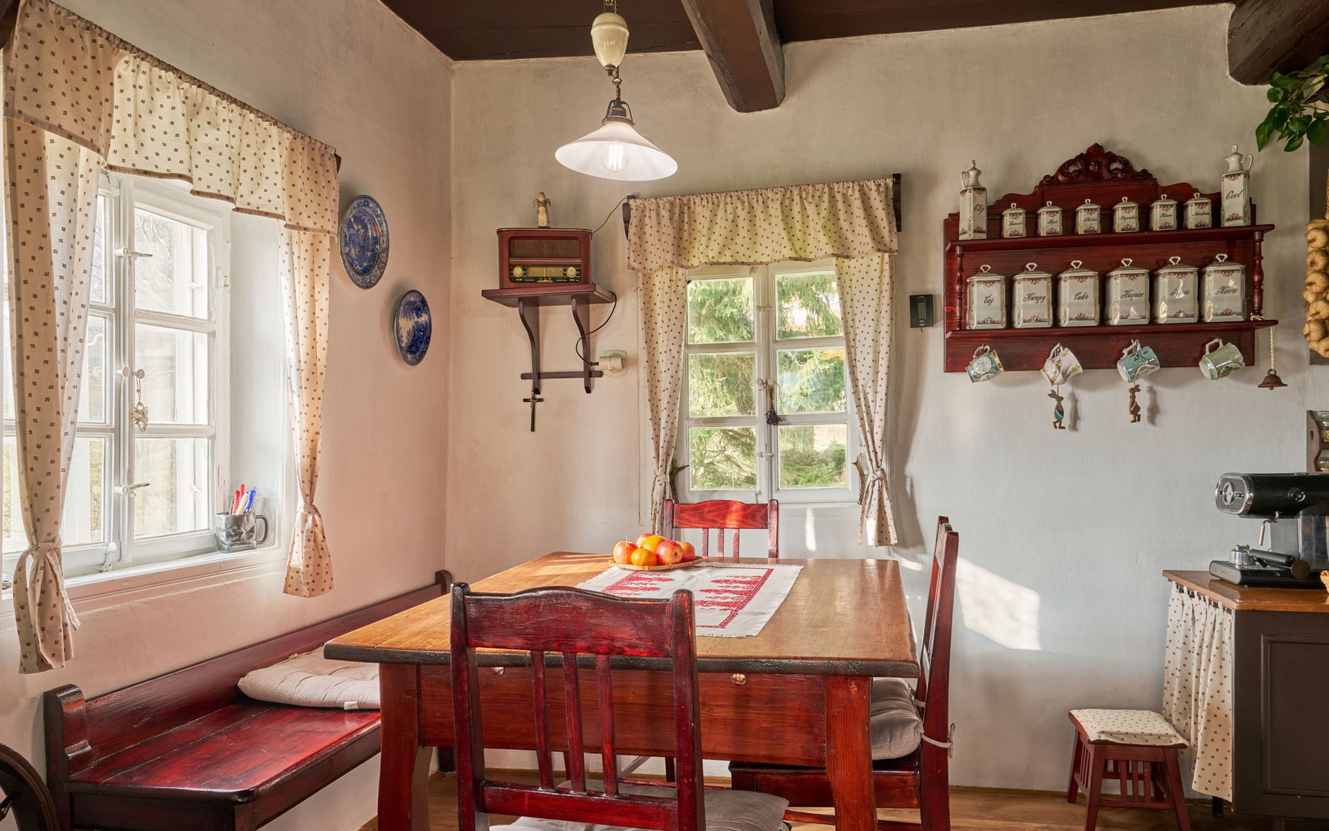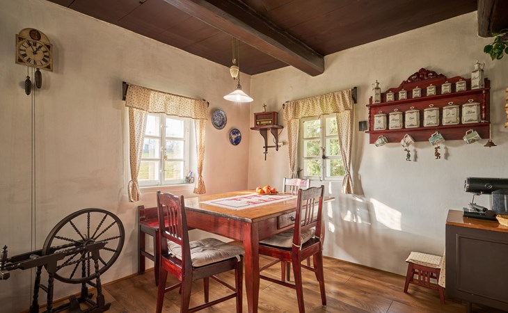Zdoňov 5 km from Adršpach: Rustic country house, 2 storeys, detached, built in 1800, renovated in 1993, surrounded by trees and meadows. On the outskirts, in a quiet, elevated position, along the wooded area, in the countryside. Private: property 5'000 m2. Outdoor shower, badminton, garden furniture, barbecue, children's playground (swing). Motor access to the house (via unmade road). Parking at the house. Grocery 4 km, supermarket 4 km, restaurant 1 km, bus stop 1 km, railway station 5 km, outdoor swimming pool 9 km. Walking paths from the house 10 m. Nearby attractions: Adršpašské skály 5 km, Teplické skály 7 km, Trutnov 25 km.