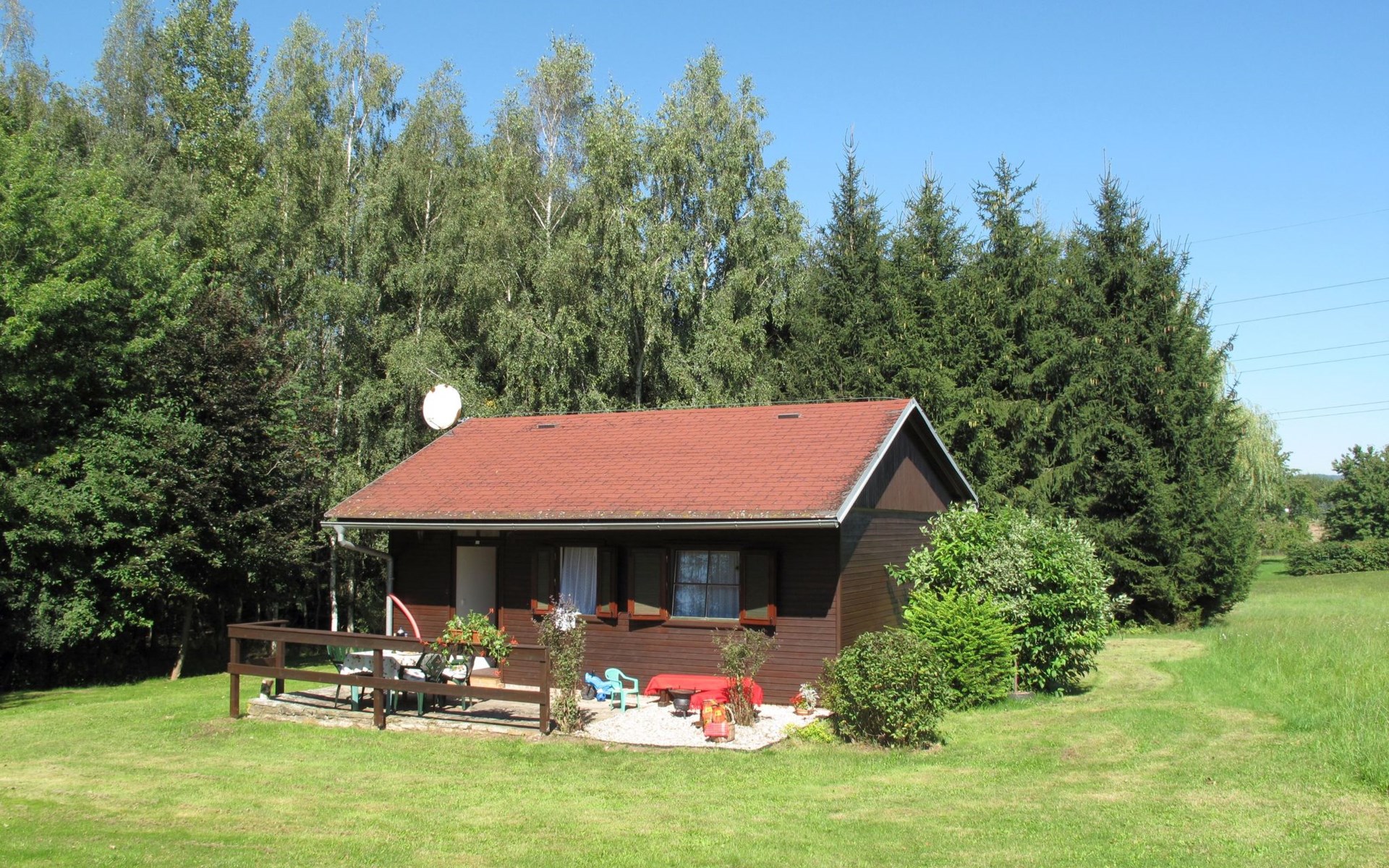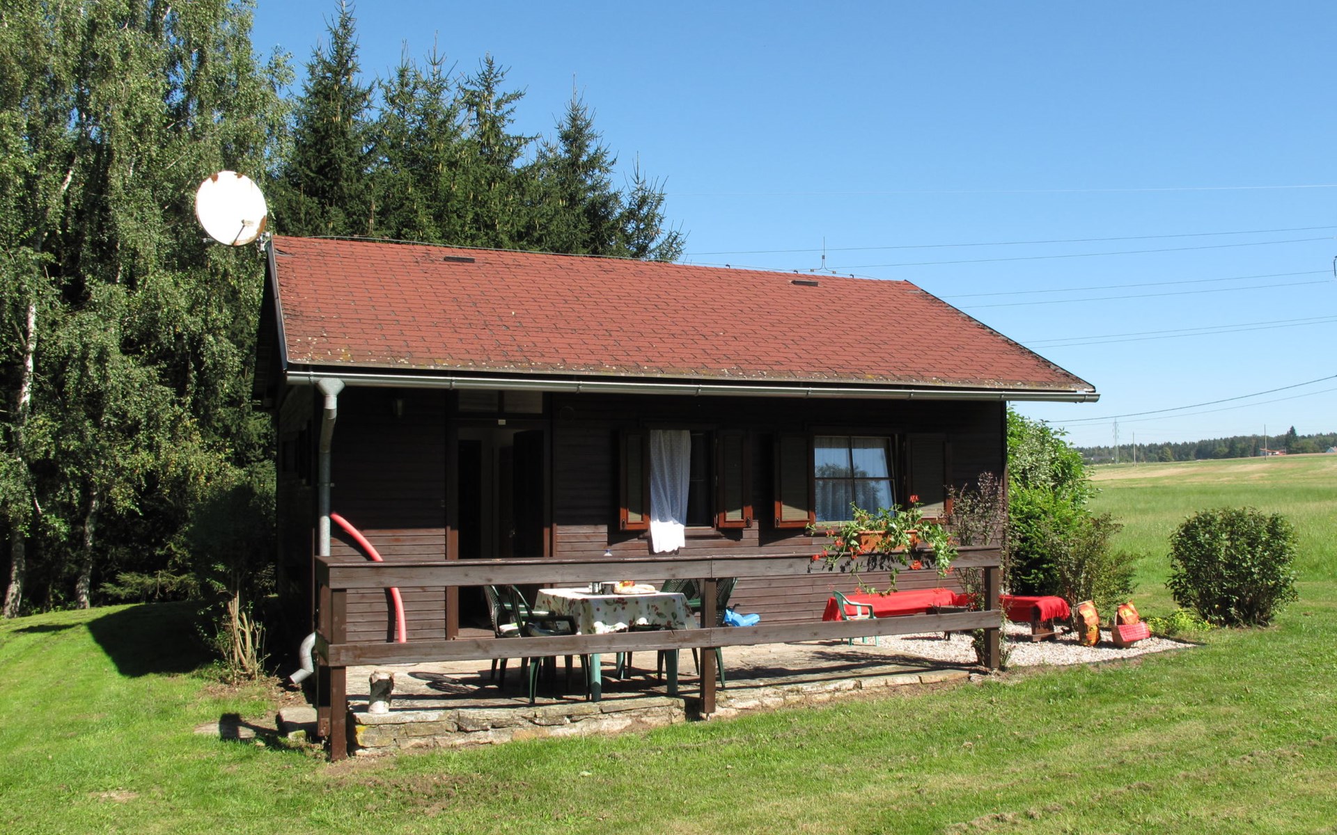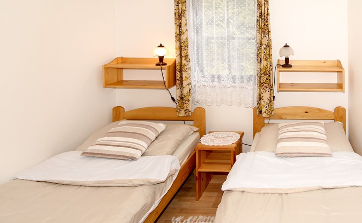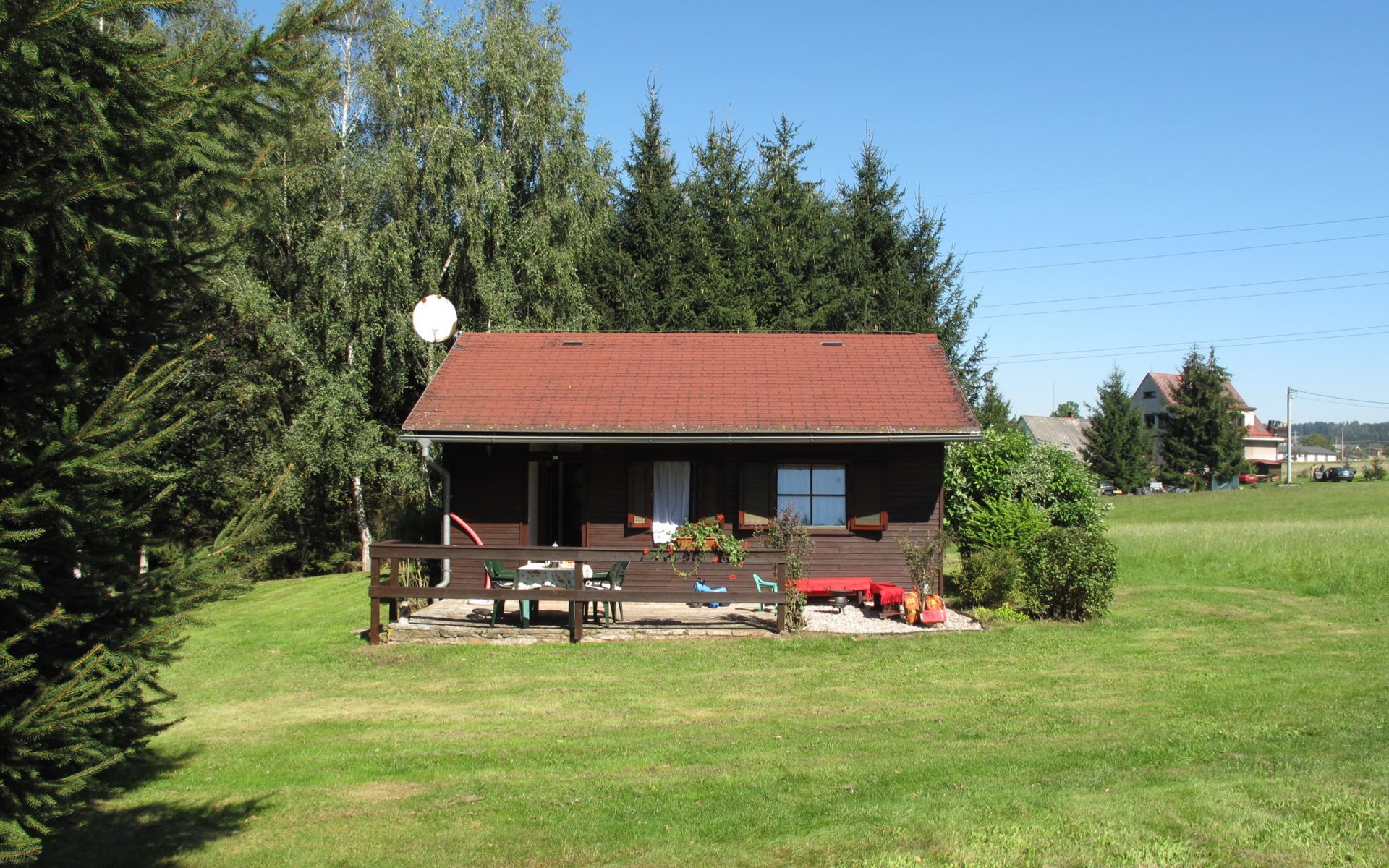 Cottage "Spinka", detached, surrounded by meadows. 2.5 km from the centre of Zábrodí, 3 km from the centre of Červený Kostelec, in a sunny position, 100 m from the lake. Private: property 400 m2 with lawn, meadow. Terrace, garden furniture, barbecue, fireplace, bathing place. 400 m long bumpy motor access to the grounds. Parking on the premises. Shop 3 km, supermarket 3 km, bus stop "Zábrodí, LIGO" 350 m, grass beach "Špinka" 100 m, outdoor swimming pool 8 km, indoor swimming pool 8 km, bathing lake "Špinka" 100 m. Golf course (18 hole) 34 km. Nearby attractions: Červený Kostelec 3 km, Náchod 8 km, přírodní nádrž Rozkoš 12 km, Nové Město nad Metují 15 km, Adršpach 25 km, Lázně Velichovky 25 km, Zoo Dvůr Králové 34 km. Well-known lakes can easily be reached: Brodský (možnost rybaření) 1.5 km. Please note: suitable for seniors. The owner does not accept any youth groups. One parking place free of charge, 2nd parking place possible upon agreement for an additional charge of 5 EUR/day or in a public parking lot 400 meters from the house.
