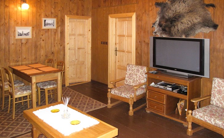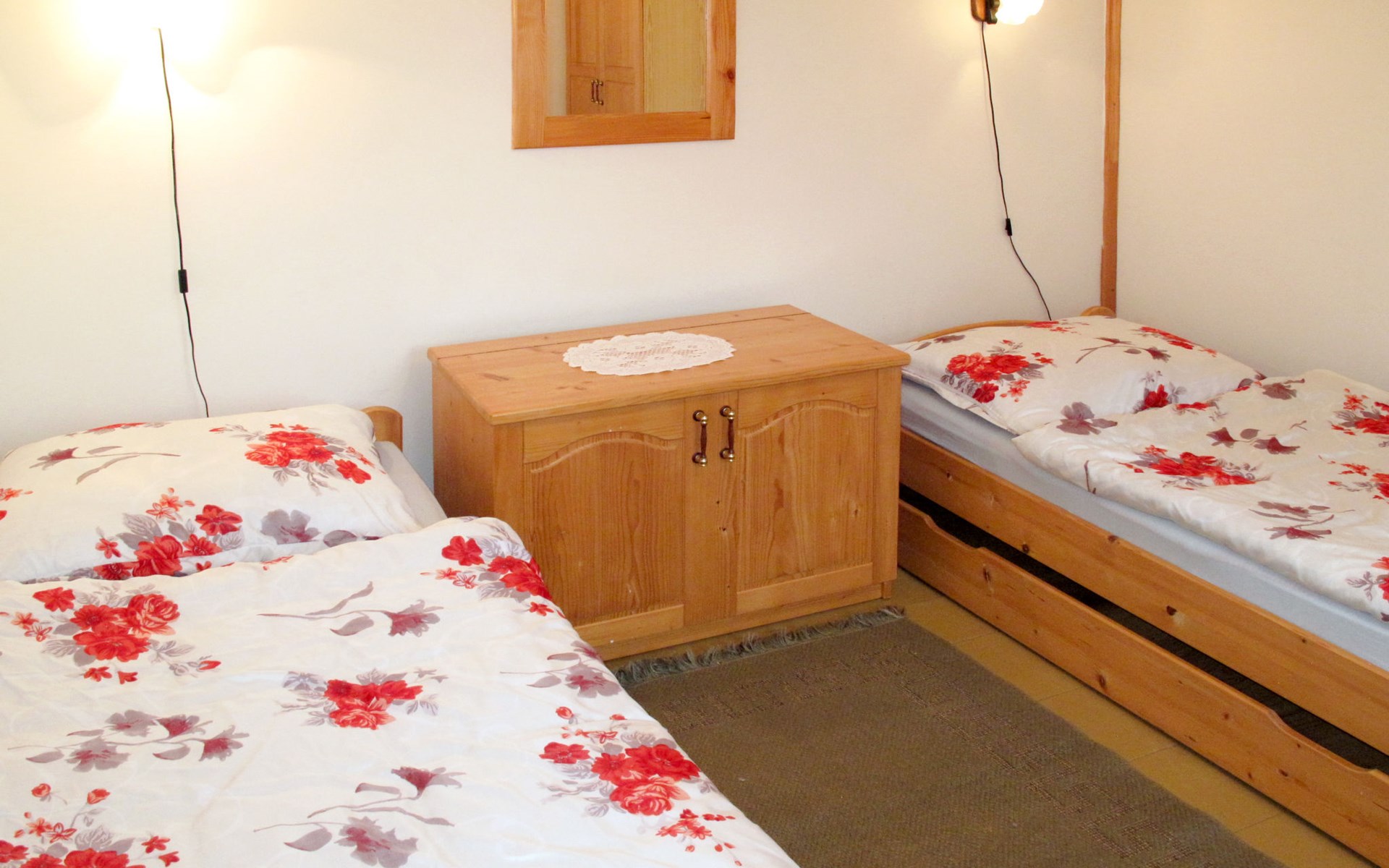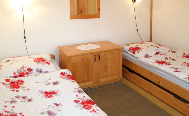 Cottage "Marta", detached, surrounded by trees and meadows. 2.5 km from the centre of Zábrodí, 3 km from the centre of Červený Kostelec, in a sunny position, 50 m from the lake. Private: property 400 m2 with lawn, meadow. 400 m long bumpy motor access. Parking on the premises. Shop 3 km, supermarket 3 km, bus stop "Zábrodí, LIGO" 350 m, grass beach "Špinka" 50 m, outdoor swimming pool 8 km, indoor swimming pool 8 km, bathing lake "Špinka" 50 m. Nearby attractions: Červený Kostelec 3 km, Náchod 8 km, přírodní nádrž Rozkoš 12 km, Nové Město nad Metují 15 km, Adršpach 25 km, Lázně Velichovky 25 km, Zoo Dvůr Králové 34 km. Well-known lakes can easily be reached: Brodský (možnost rybaření) 1.5 km. Please note: suitable for seniors. The owner does not accept any youth groups. One parking place free of charge, 2nd parking place possible upon agreement for an additional charge of 5 EUR/day or in a public parking lot 400 meters from the house.