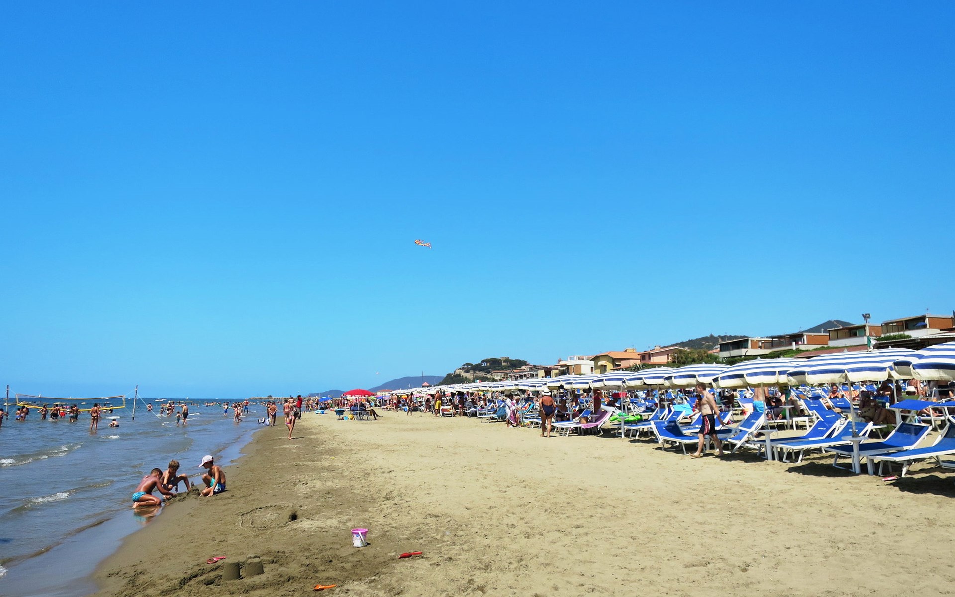 Cosy house "Elena", 2 storeys. In the centre of Castiglione della Pescaia, excellent location: right in the centre but still quiet, 50 m from the sea, 50 m from the beach, road to cross. Public parking on the road. Shop 250 m, grocery 450 m, supermarket 500 m, shopping centre 25 km, restaurant 150 m, bar 70 m, bakery 50 m, pedestrian zone 150 m, bicycle rental 500 m, 3 minute walk to the centre, bus stop "Castiglione D.P.-Stadio" 300 m, public bathing area 100 m. Sports harbour 20 km, sailing school 1 km, riding stable 4 km, cycle lane 500 m, children's playground 500 m. Nearby attractions: Cala Violina 15 km, Follonica / Punta Ala 20 km, Grosseto 22 km, Tirli 19 km, Vetulonia 23 km. Hiking paths: Parco della Maremma 40 km.
