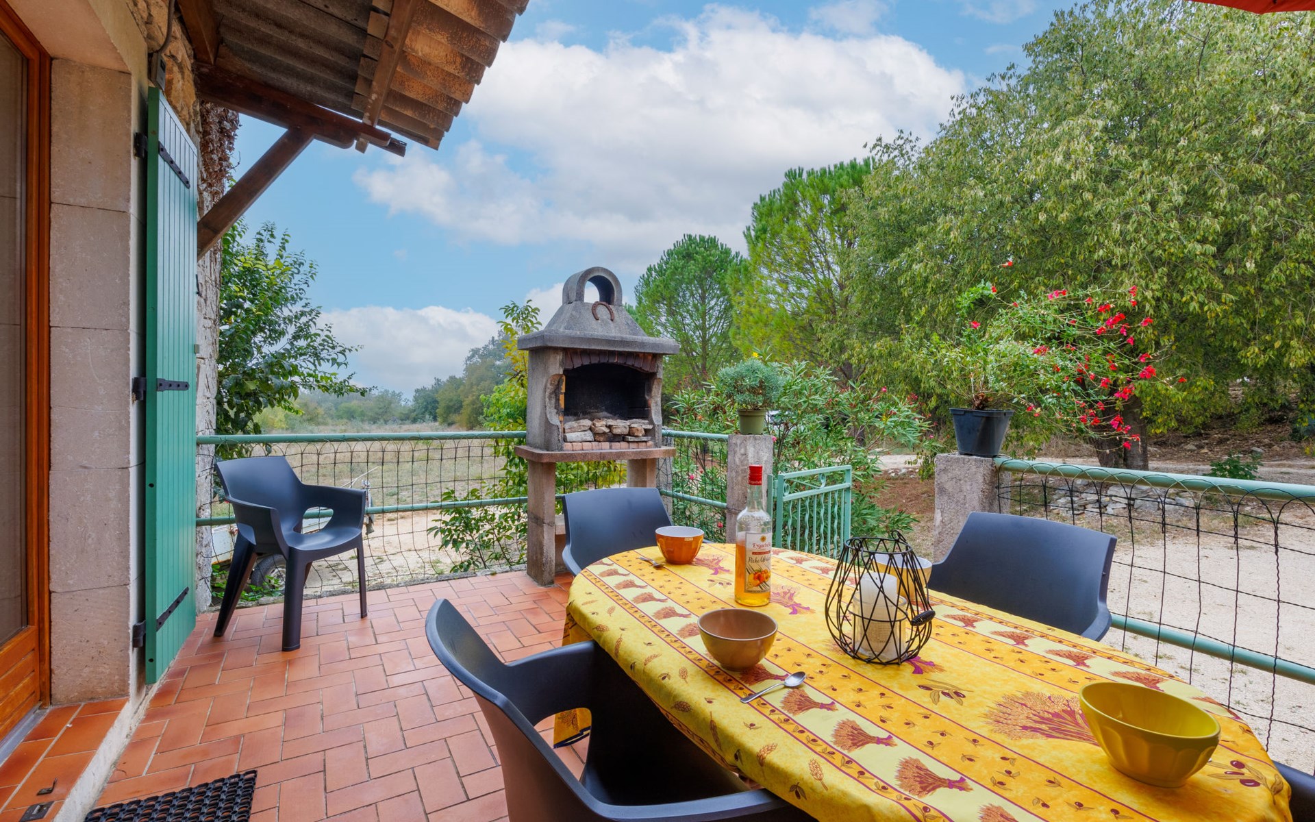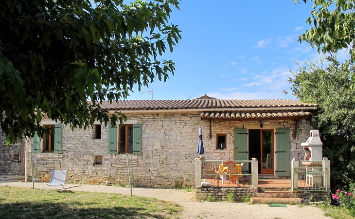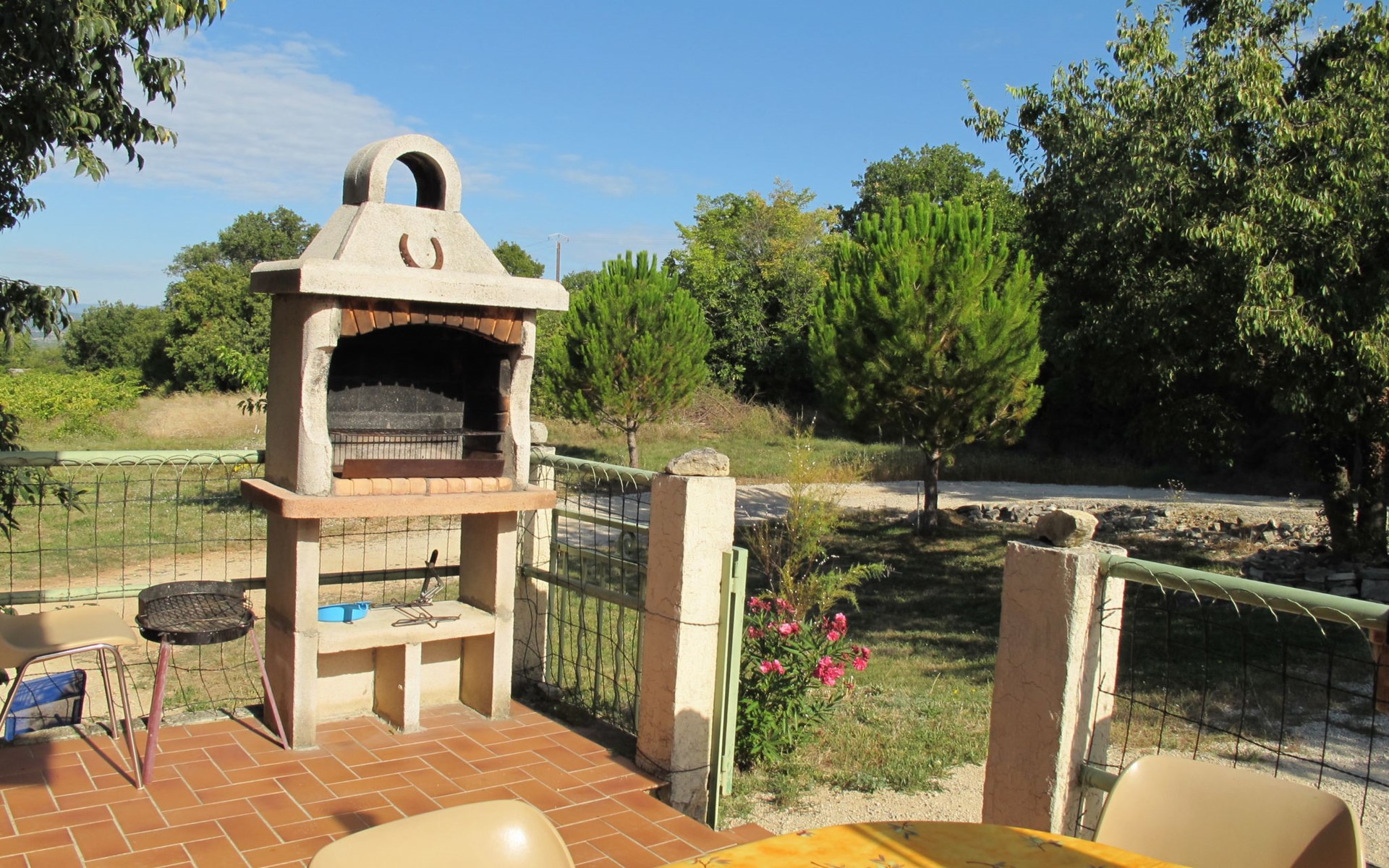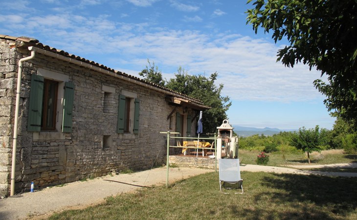 Cosy house "Lozard", semi-detached, surrounded by trees, meadows and fields. Above Barjac 3 km from the centre of Barjac, 12 km from the centre of Vallon Pont d'Arc, 32 km from the centre of Bagnols-sur-Cèze, in the countryside. Private: property 500 m2 with trees, natural garden, meadow, parking on the premises. Shop 3 km, bus stop "Les Cauquières" 4 km.