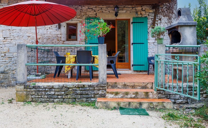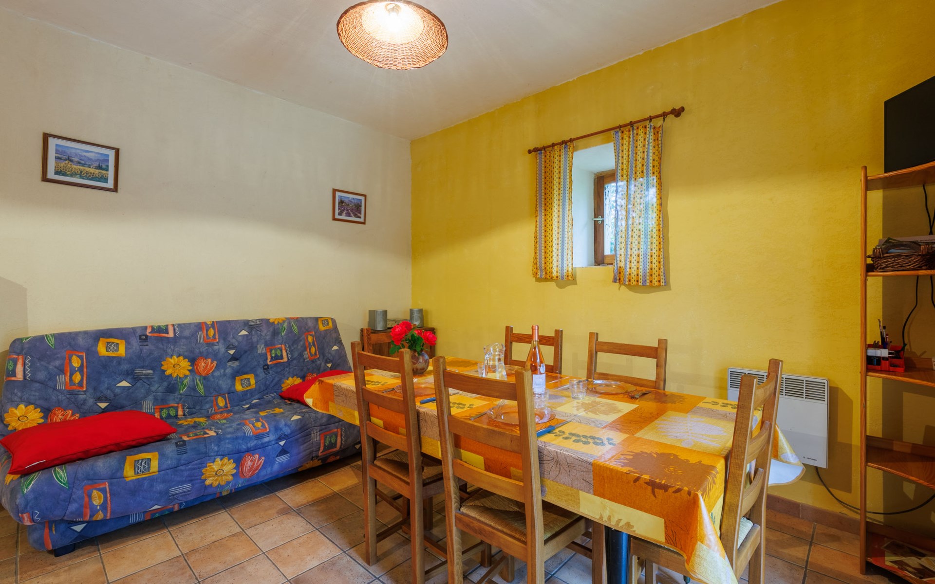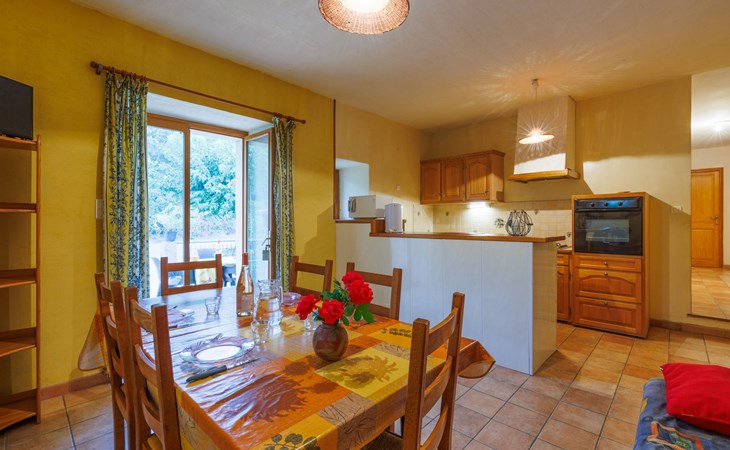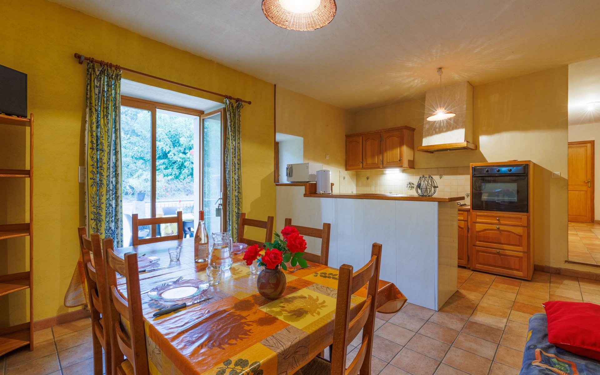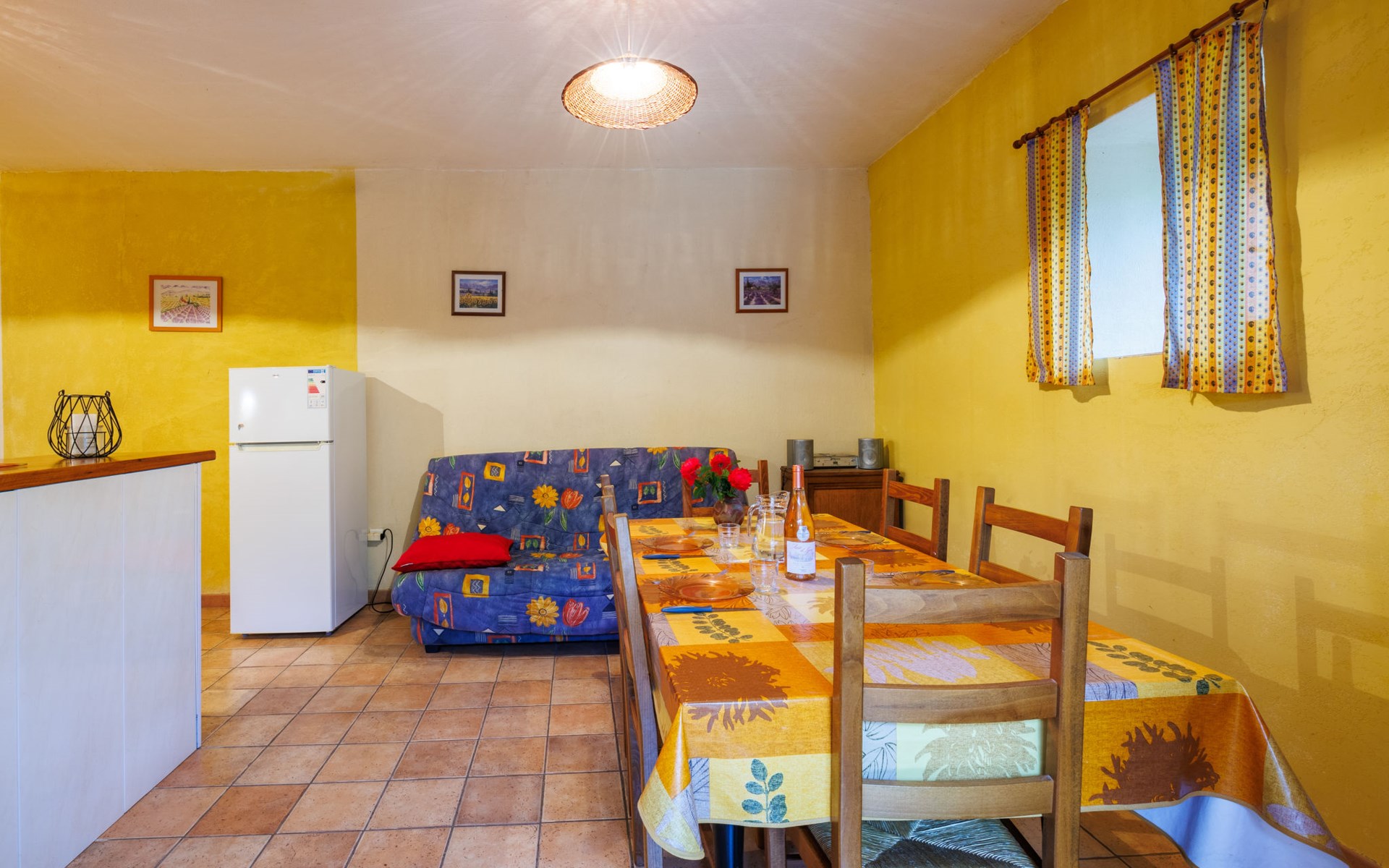 Cosy house "Lozard", semi-detached, surrounded by trees, meadows and fields. Above Barjac 3 km from the centre of Barjac, 12 km from the centre of Vallon Pont d'Arc, 32 km from the centre of Bagnols-sur-Cèze, in the countryside. Private: property 500 m2 with trees, natural garden, meadow, parking on the premises. Shop 3 km, bus stop "Les Cauquières" 4 km.