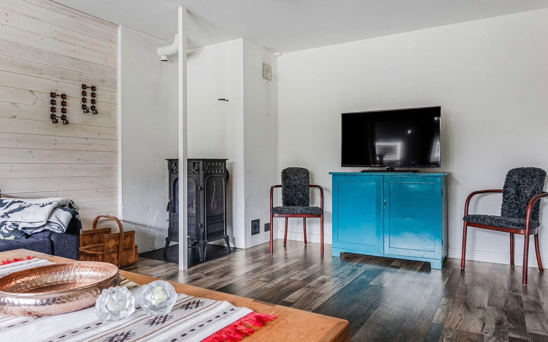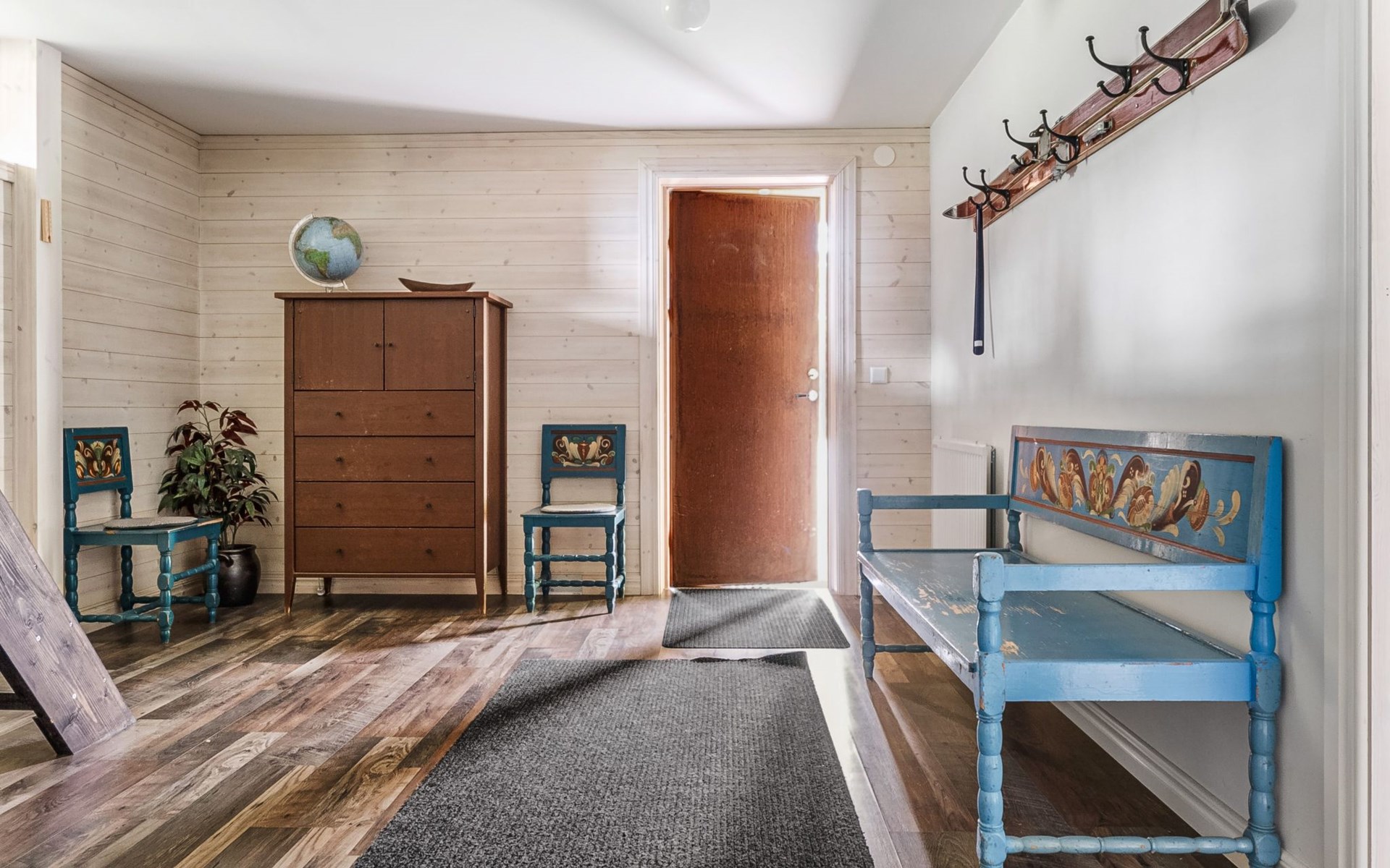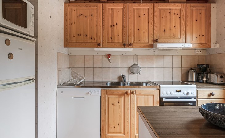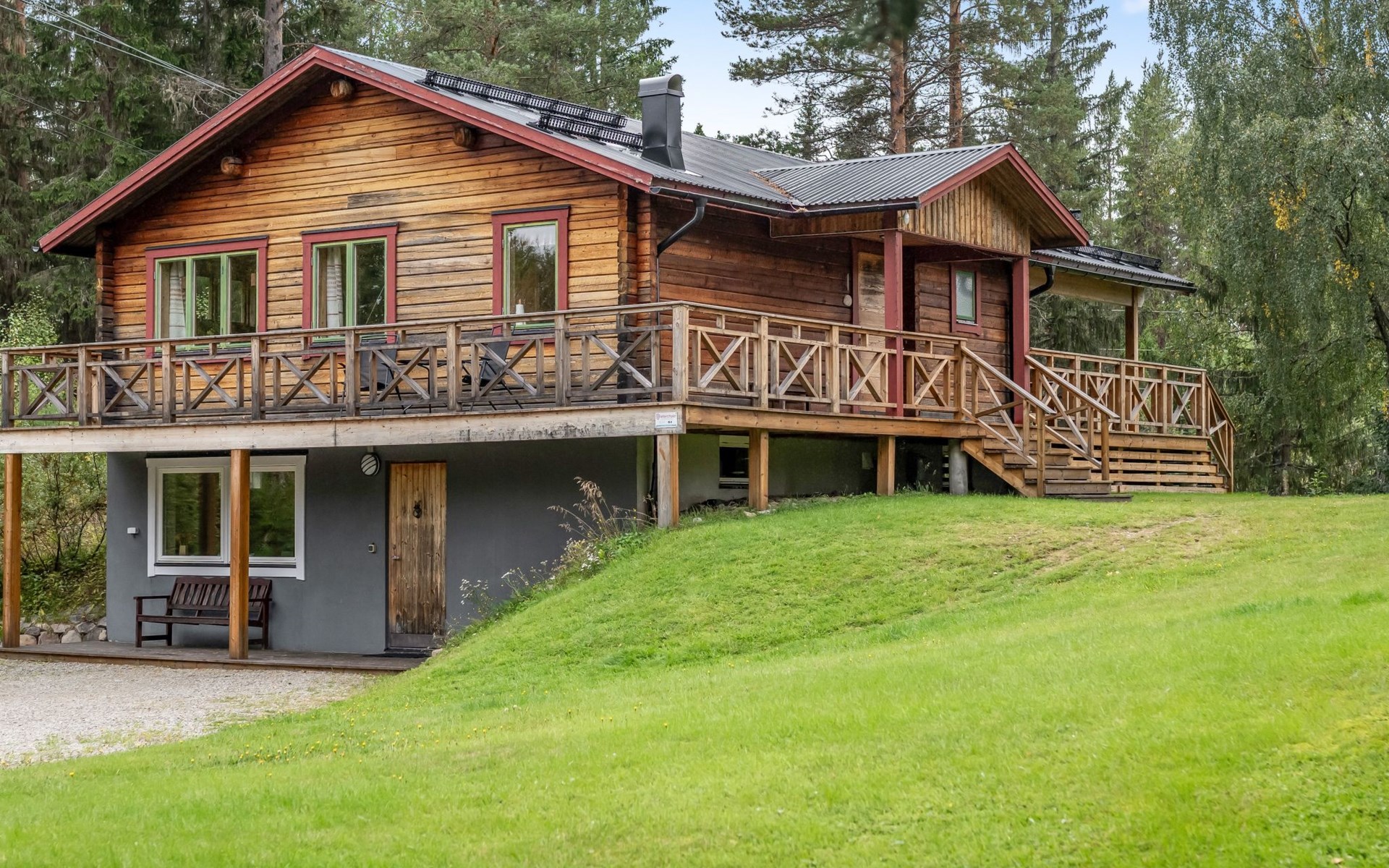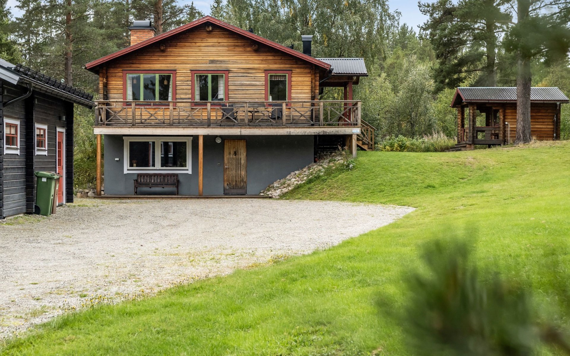 Timber house "Kvisthån Tallen", 390 m a.s.l.. In the hamlet Vemhån, 6 km from the centre, 14 km from the centre of Vemdalen, 45 km from the centre of Sveg, on a slope, 6 km from the lake, 300 m from the river. Private: natural state property 1'000 m2 with trees, meadow. Garden furniture, barbecue. Stepped path (5 steps) to the house. Parking (for 3 cars) on the premises. Shop 6 km, supermarket 45 km, railway station "Sveg" 45 km, ferry "Helsingborg" 840 km, sandy beach "Håsjön" 6 km, indoor swimming pool 45 km.
