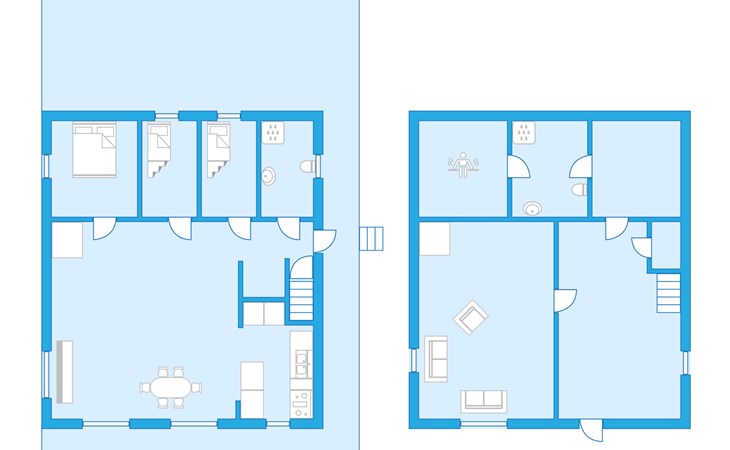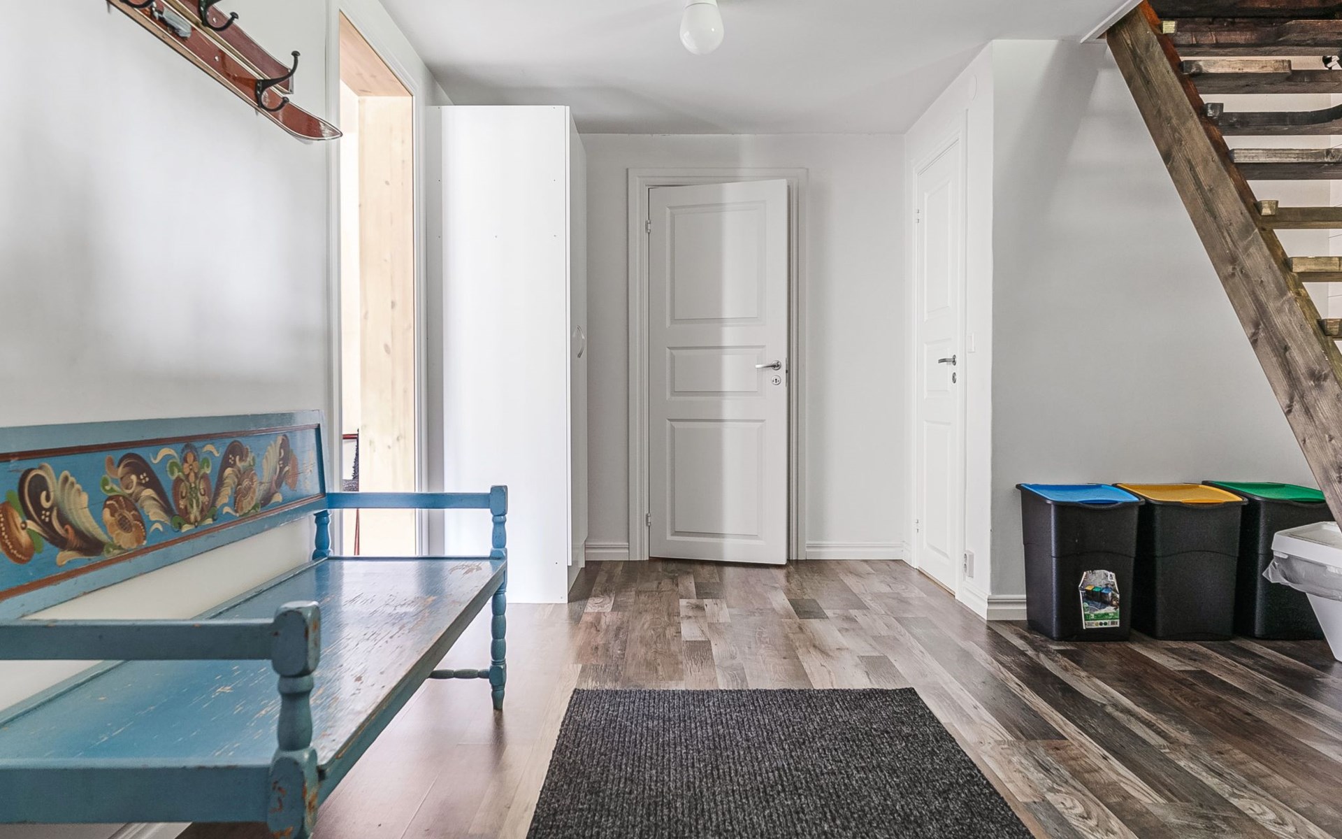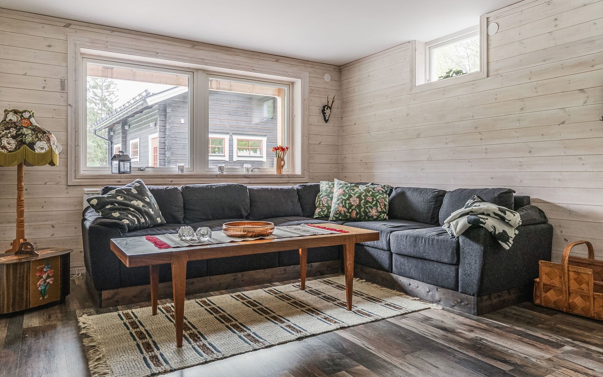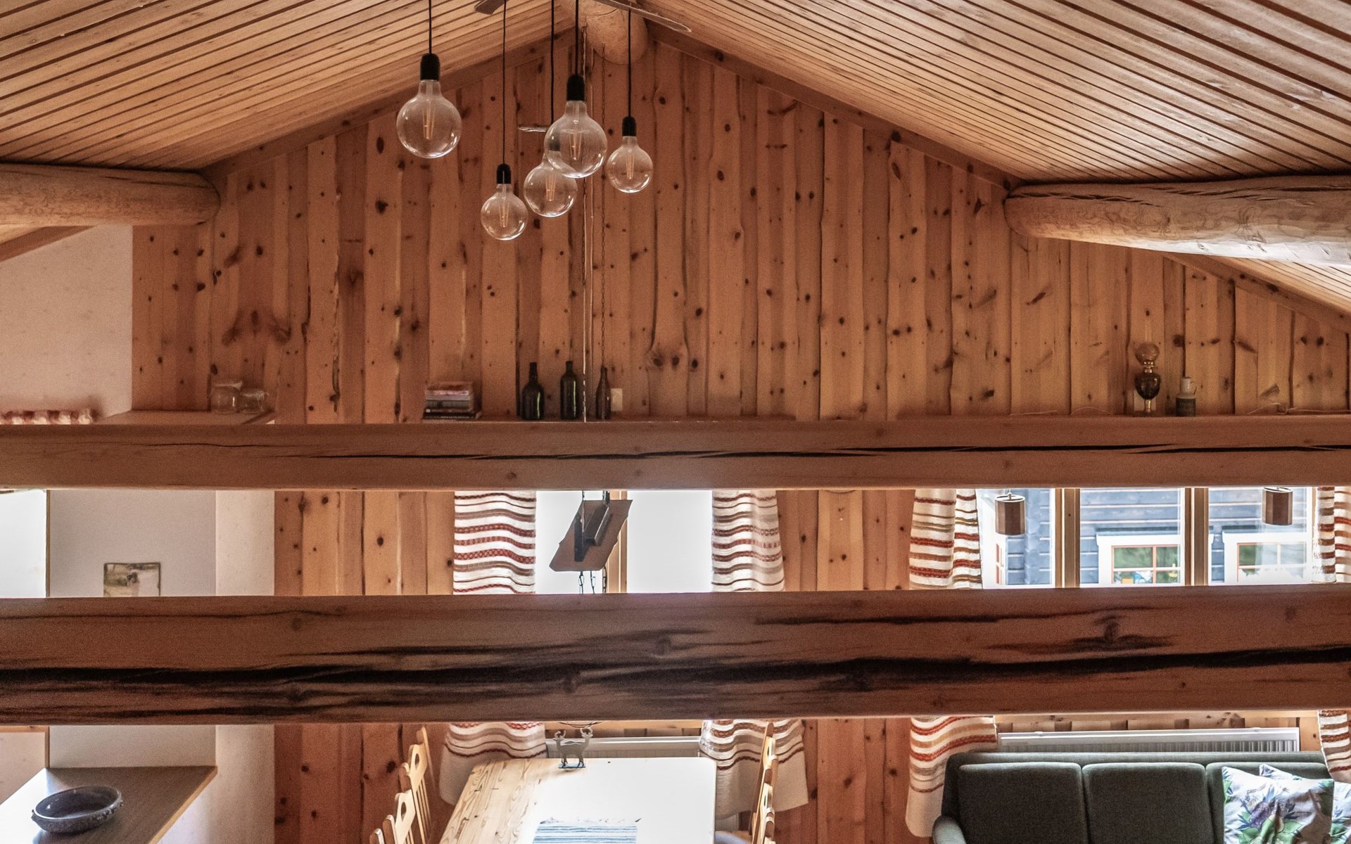 Timber house "Kvisthån Tallen", 390 m a.s.l.. In the hamlet Vemhån, 6 km from the centre, 14 km from the centre of Vemdalen, 45 km from the centre of Sveg, on a slope, 6 km from the lake, 300 m from the river. Private: natural state property 1'000 m2 with trees, meadow. Garden furniture, barbecue. Stepped path (5 steps) to the house. Parking (for 3 cars) on the premises. Shop 6 km, supermarket 45 km, railway station "Sveg" 45 km, ferry "Helsingborg" 840 km, sandy beach "Håsjön" 6 km, indoor swimming pool 45 km.