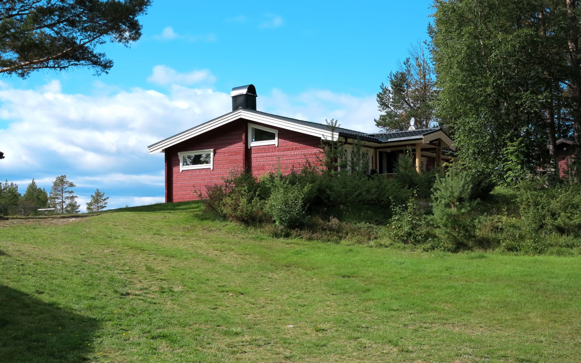 Timber house "Kvisthån Idegranen", 390 m a.s.l.. In the hamlet Vemhån, 6 km from the centre, 14 km from the centre of Vemdalen, 45 km from the centre of Sveg, on a slope, 6 km from the lake, 370 m from the river. Private: natural state property 1'000 m2 with trees, meadow, parking (for 2 cars) on the premises. Shop 6 km, supermarket 45 km, railway station "Sveg" 45 km, ferry "Helsingborg" 840 km, sandy beach "Håsjön" 6 km, indoor swimming pool 45 km.