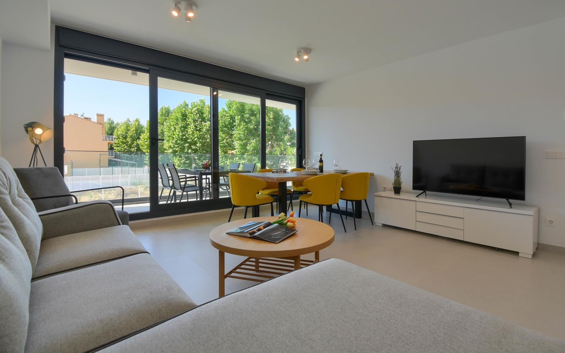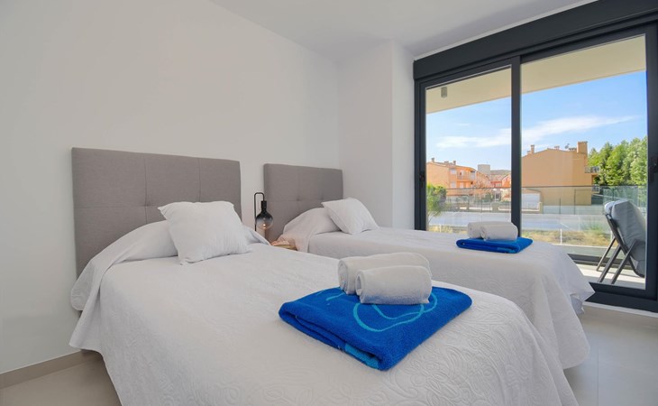 The apartment has 2 bedrooms and 2 bathrooms. The accommodation offers a lot of privacy, a lawned communal garden with trees and wonderful views of the pool and the garden. Its comfort and the vicinity of the beach, places to shop, sports activities, entertainment facilities, places to go out, sights and culture make this an ideal apartment to spend your holidays in Spain with family or friends.