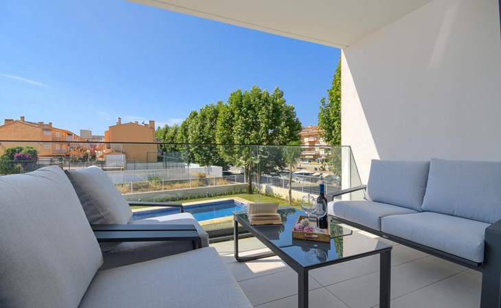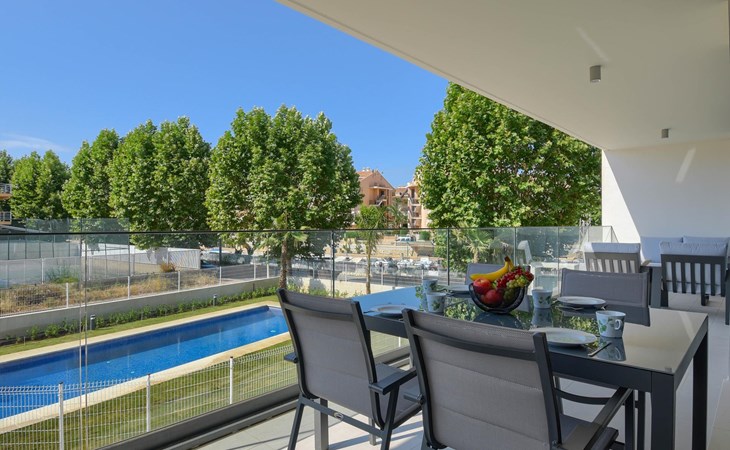 Modern and comfortable apartment with communal pool in Javea, Costa Blanca, Spain for 4 persons. The apartment is situated in a residential beach area, close to restaurants and bars, shops, supermarkets and a tennis court, at 200 m from Montañar I beach and at 0,2 km from Mediterráneo.