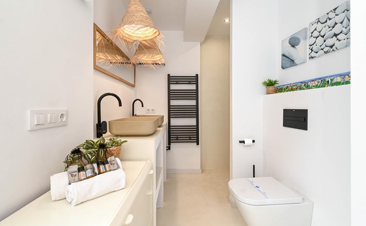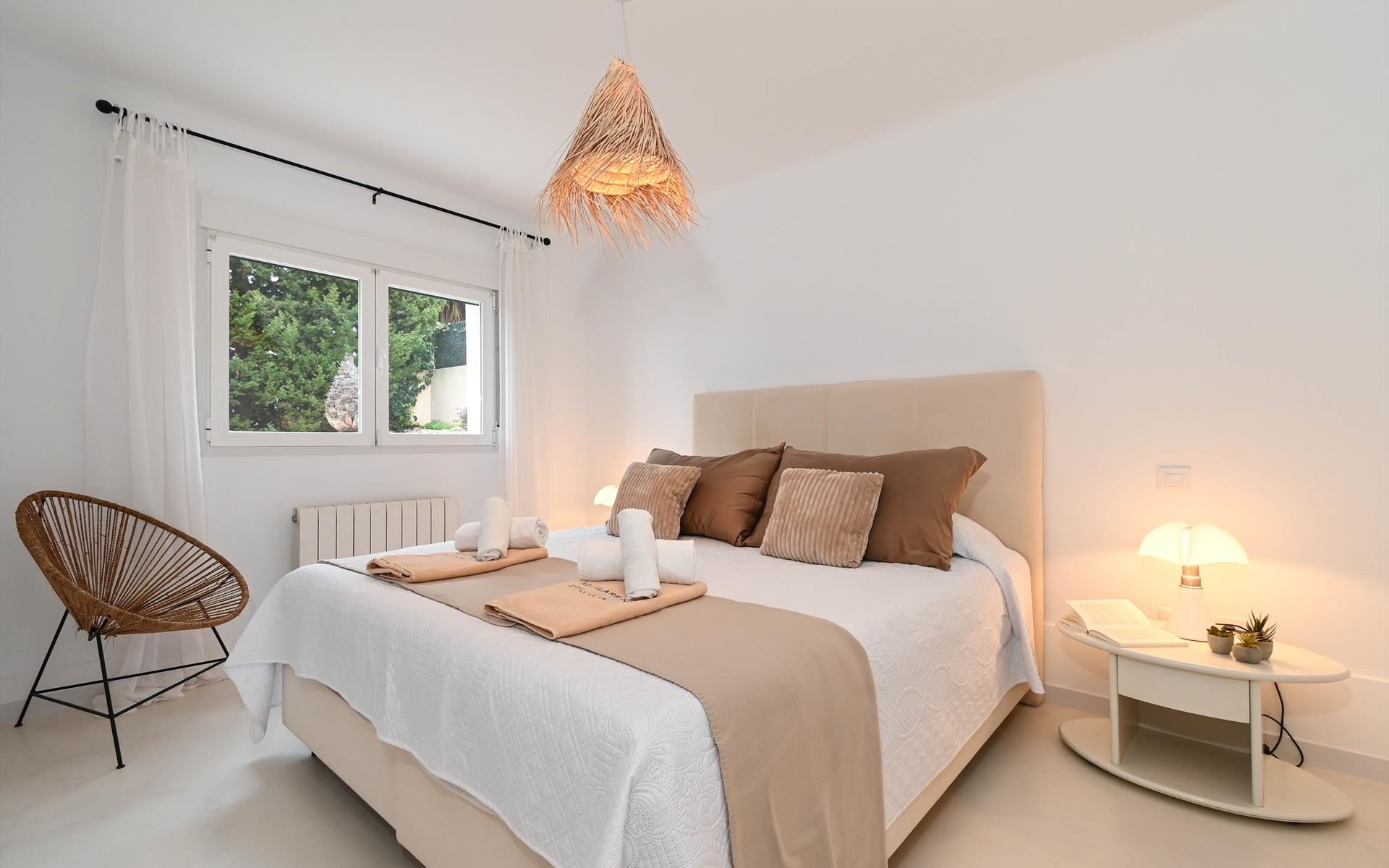 The house has 2 bedrooms and 2 bathrooms. The accommodation offers privacy and a garden with gravel and trees. Its comfort and the vicinity of the beach, sports activities, sights and culture make this a fine villa to spend your holidays in Spain with family or friends.