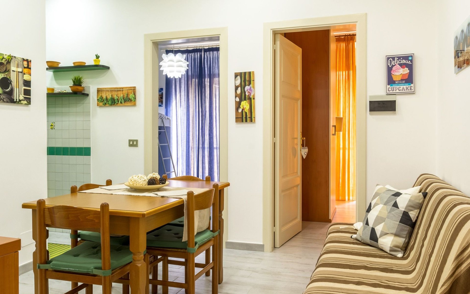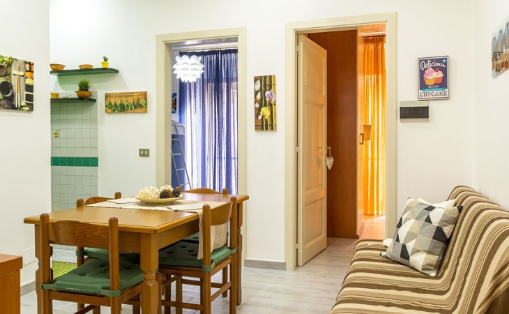 The accommodation is well thought-out to ensure a pleasant and carefree stay. Equipped with air conditioning in every room, it ensures a cool and comfortable environment even on the hottest days. There is also a washing machine for guests' exclusive use, ideal for long stays or for those who want to travel light. This flat, located on the first floor, is accessible via a flight of stairs from Via Umberto I°, offering an independent entrance that adds an extra level of privacy.