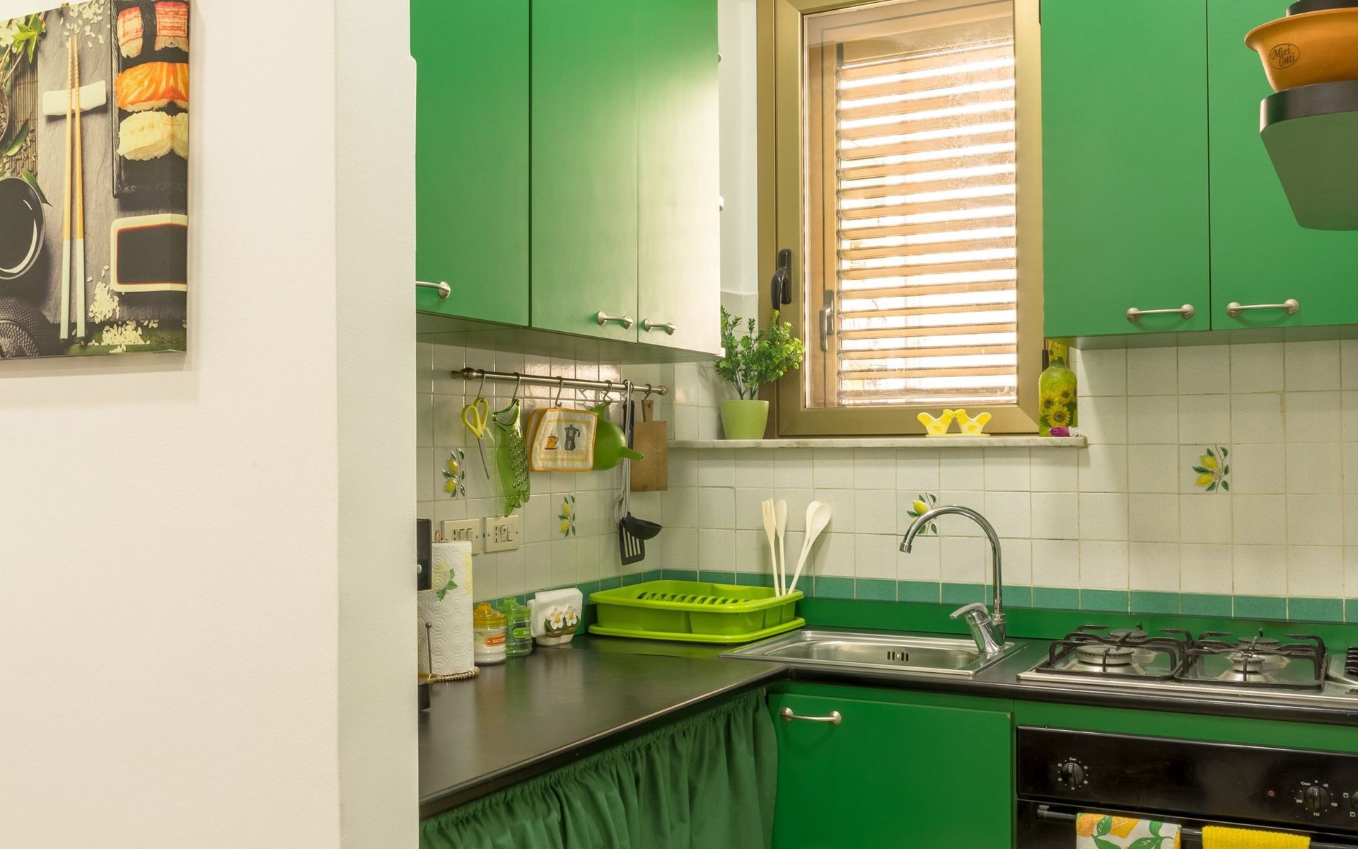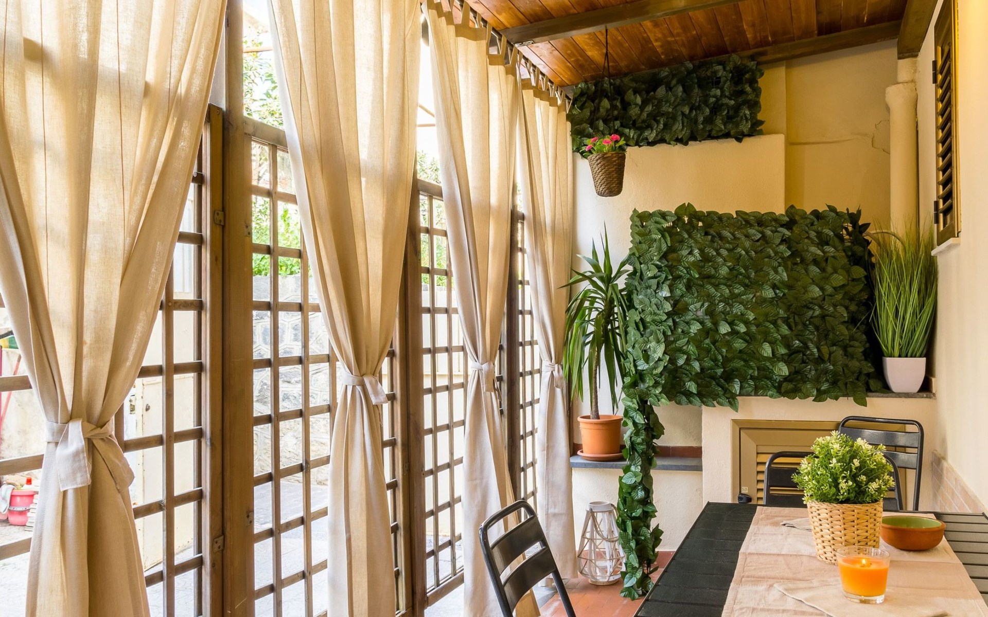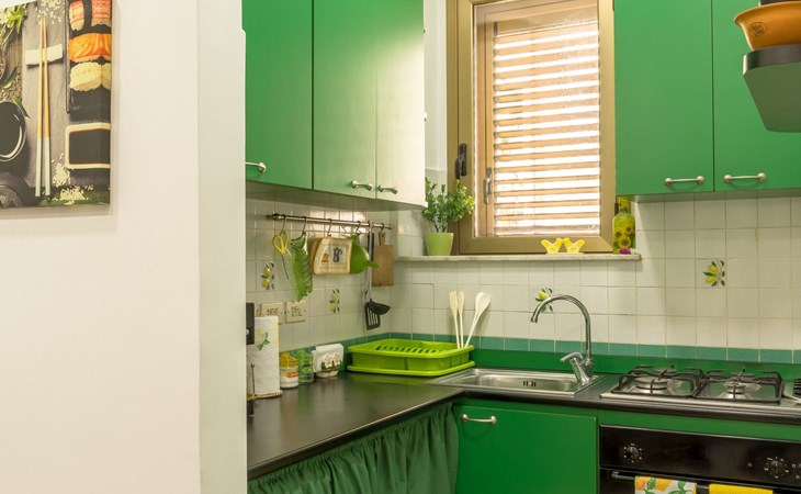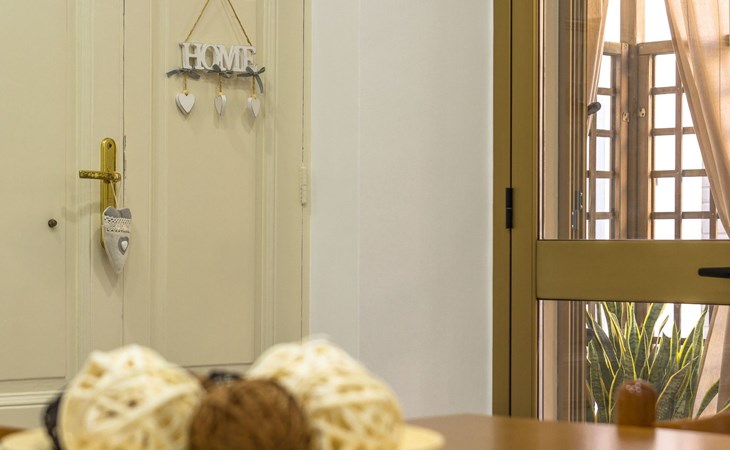 The exterior of the flat offers a lovely balcony and a cosy veranda, ideal spaces to start the day with an al fresco breakfast or to relax at sunset after a day of adventures. The patio, then, is a true piece of paradise where you can organise outdoor dinners in a serene and pleasant atmosphere.
