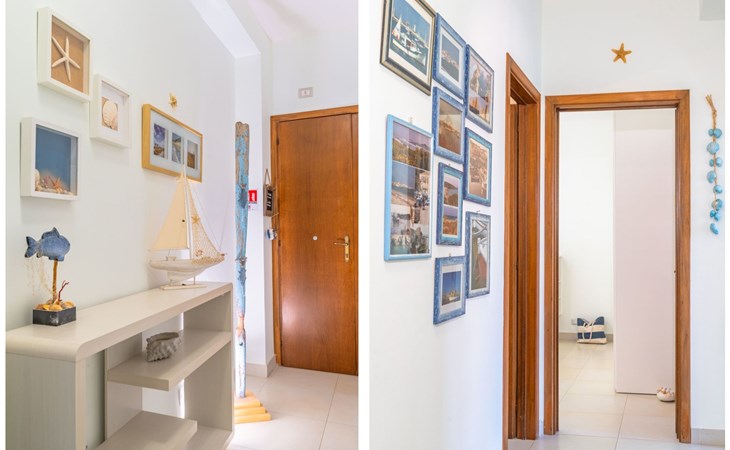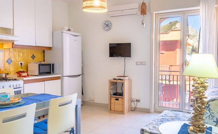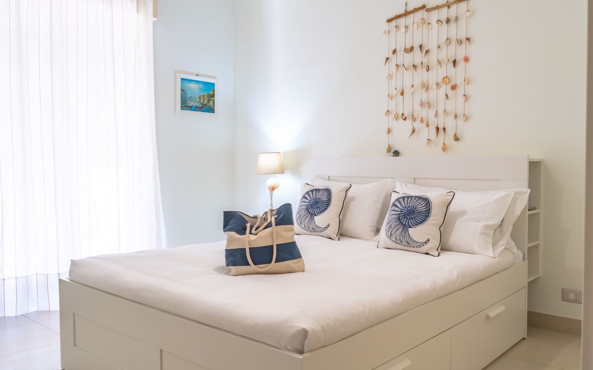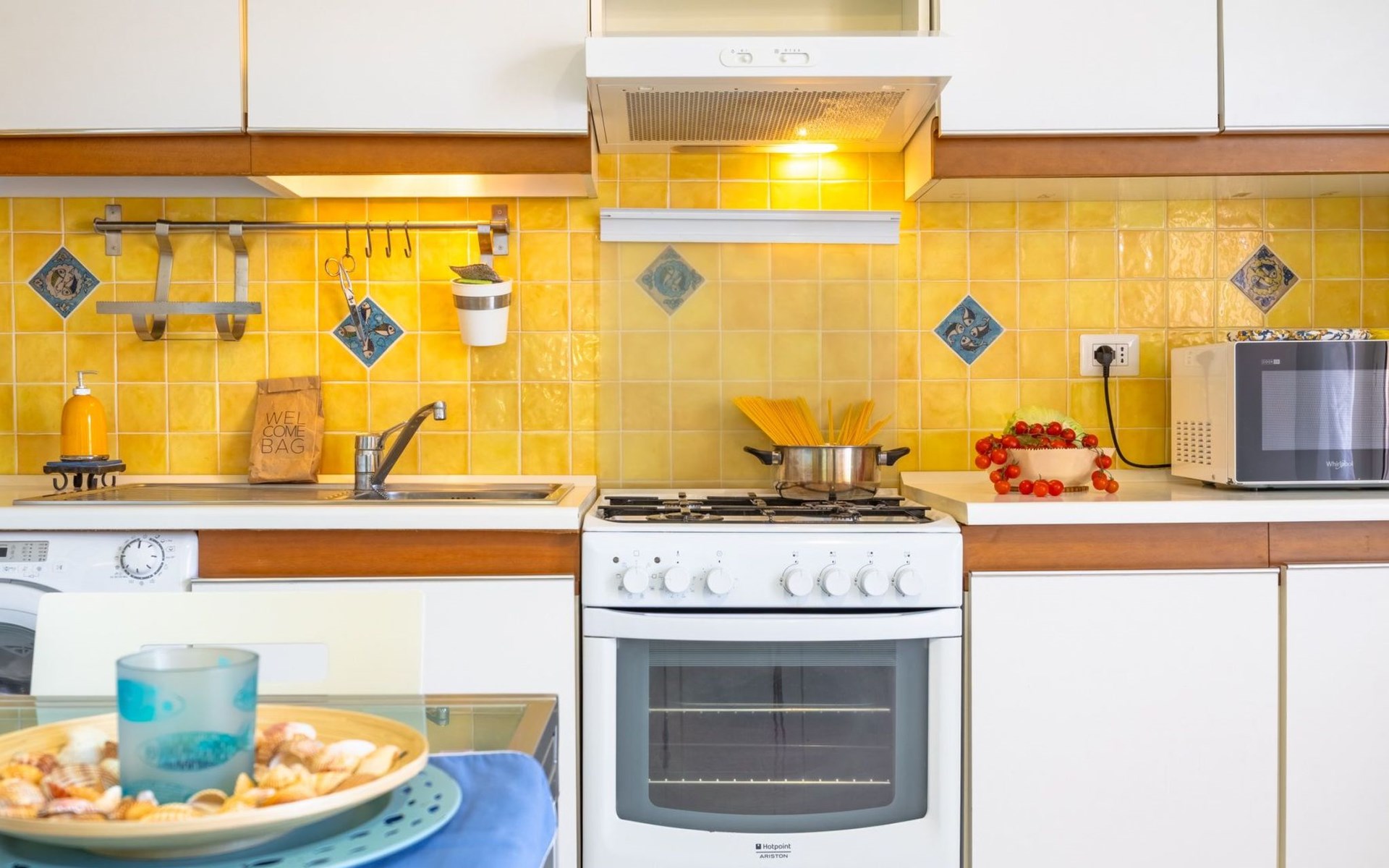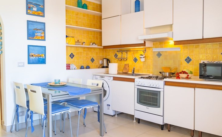 Inside, the flat is equipped to meet every need with practicality and style. The presence of air conditioning in all rooms ensures a pleasant stay even on the hottest Sicilian summer days. For those who prefer to prepare meals independently, they will find a capsule coffee machine and an electric kettle to get their days off to a good start, while the washing machine for their exclusive use makes it easier to manage the practical aspects of daily life during their stay.