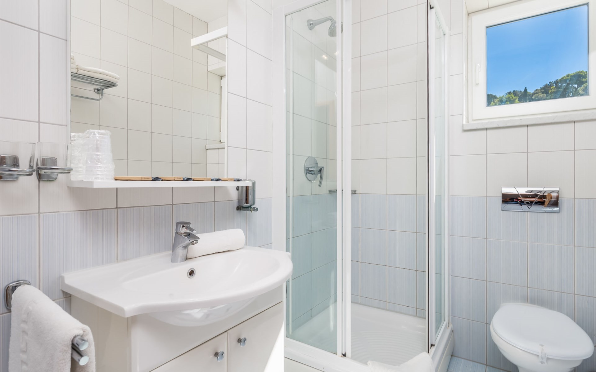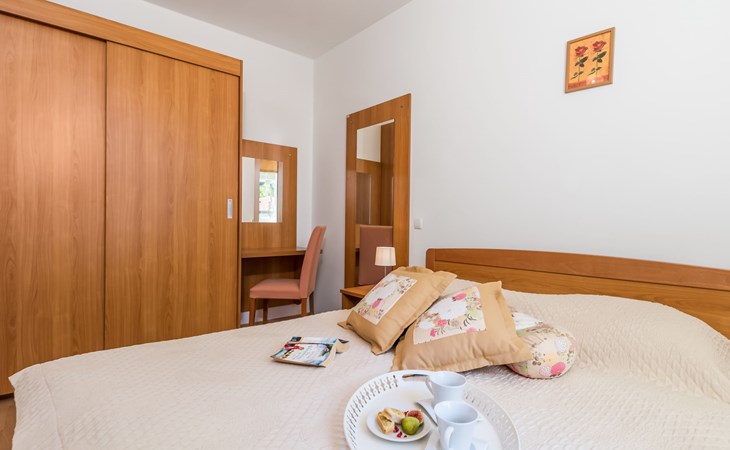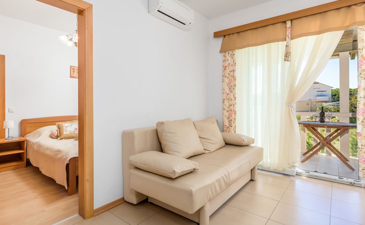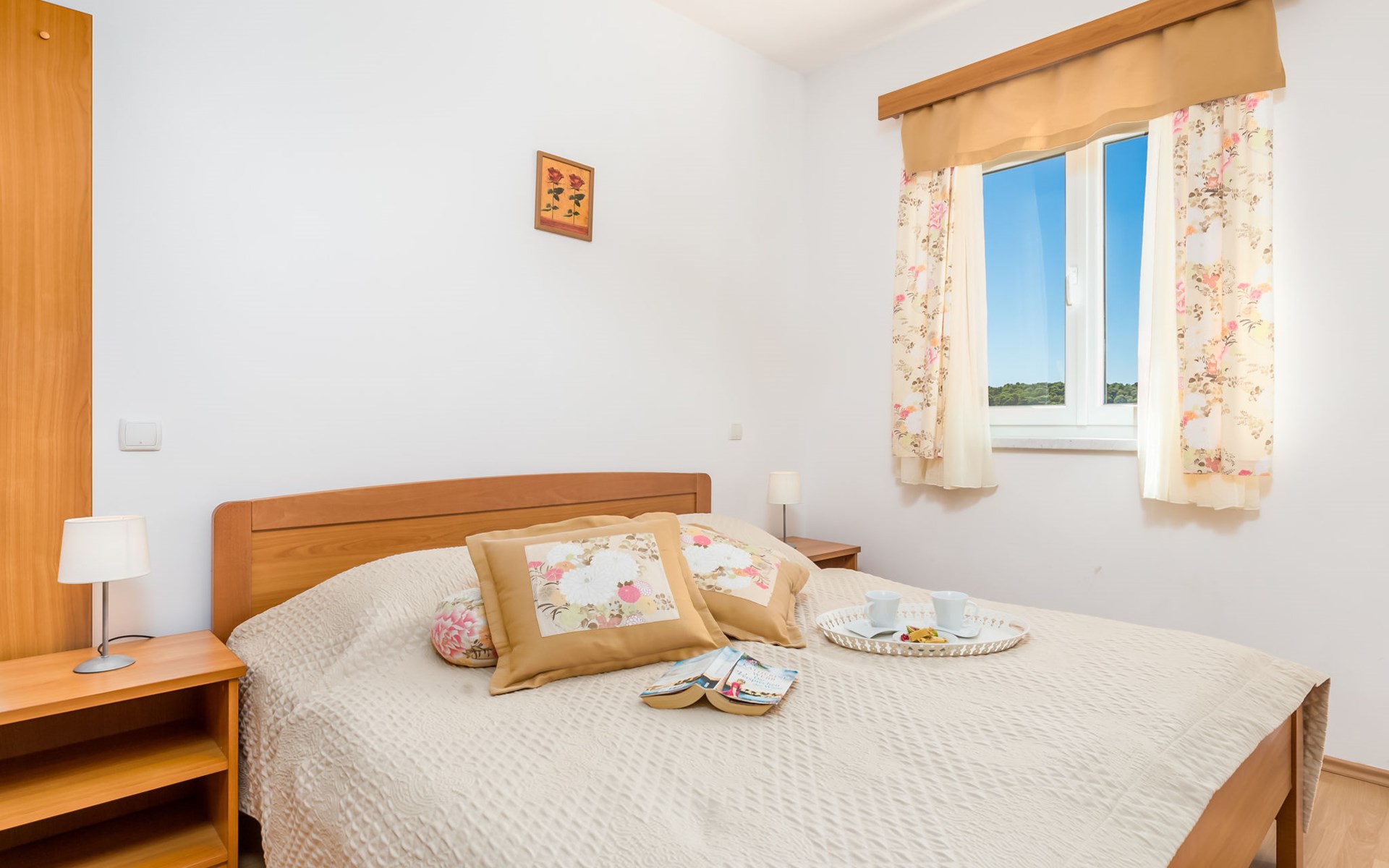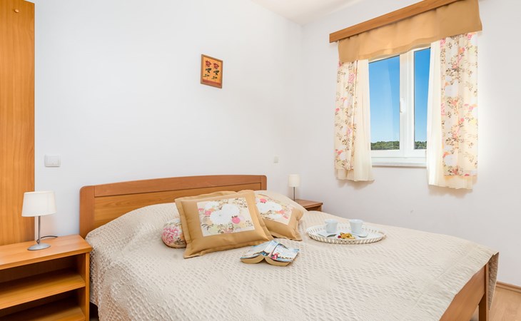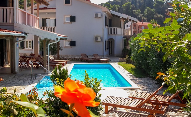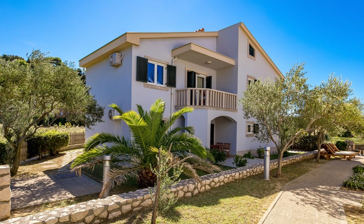 Beautiful apartment block. In the district of Palit 2 km from the centre of Rab, outside the resort, in a sunny, elevated position, 100 m from the sea, 250 m from the beach. For shared use: property (fenced), well-kept garden with lawn, swimming pool angular heated (9 x 4 m, depth 120 - 160 cm, seasonal availability: 25.Apr. - 03.Oct.) with internal staircase. Children's pool, outdoor shower, garden furniture, barbecue. In the house: internet access. Roofed, parking at the house. Shop 900 m, restaurant 1 km, bus stop 1.9 km, sandy beach, pebble beach 250 m, public bathing area 900 m. Tennis 2.5 km. Please note: the photograph shows a typical example. Additional accommodations can be booked. Property ref. HR3700.301, 310 is situated on the same property. The apartment house "Pavica" is situated on the same grounds (1600 m2) with apartment houses "Ivan" and "Mihaela", with swimming pool for shared use, with counterflow. One part of the pool is a paddling pool, depth 30-60 cm. Deck chairs at disposal. The old town of Rab can be reached by a coastal promenade (20 minutes walk).