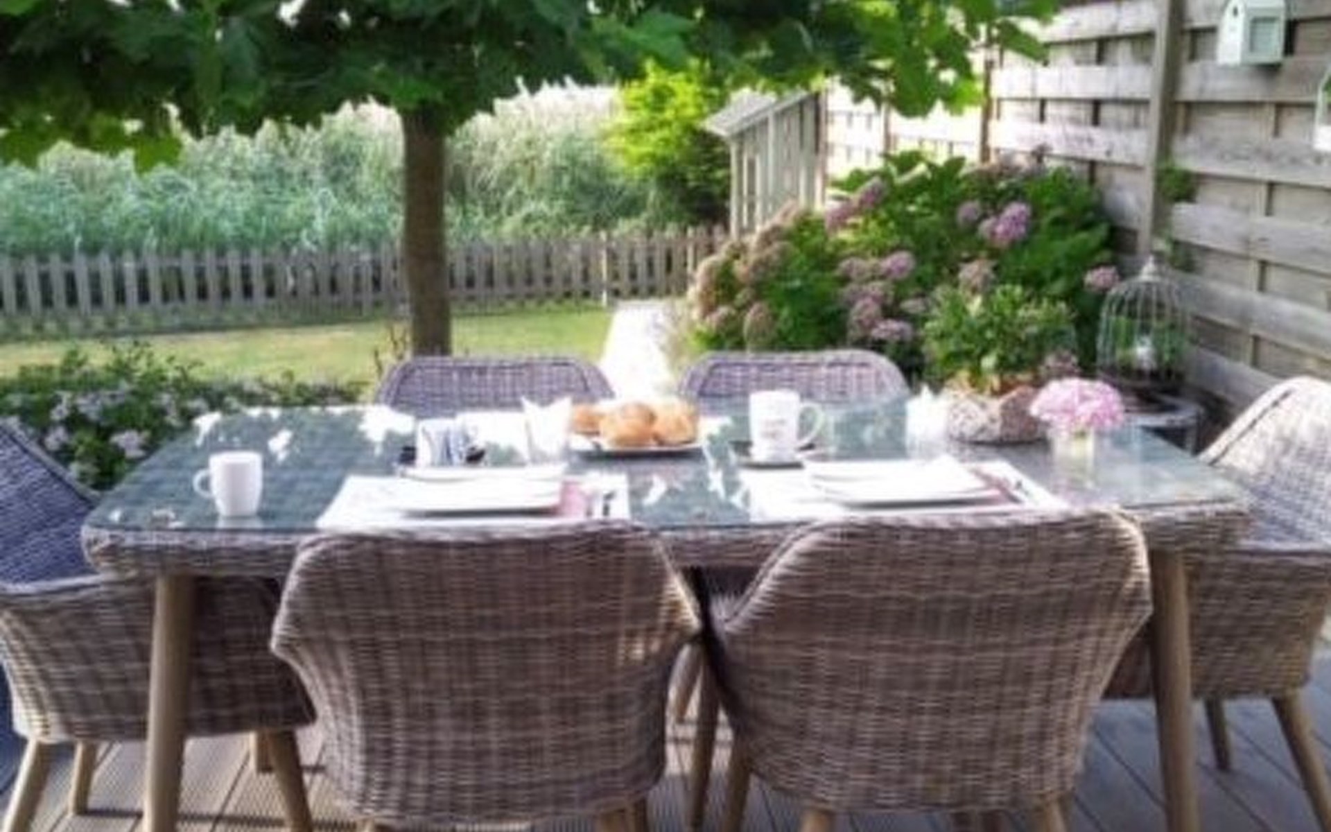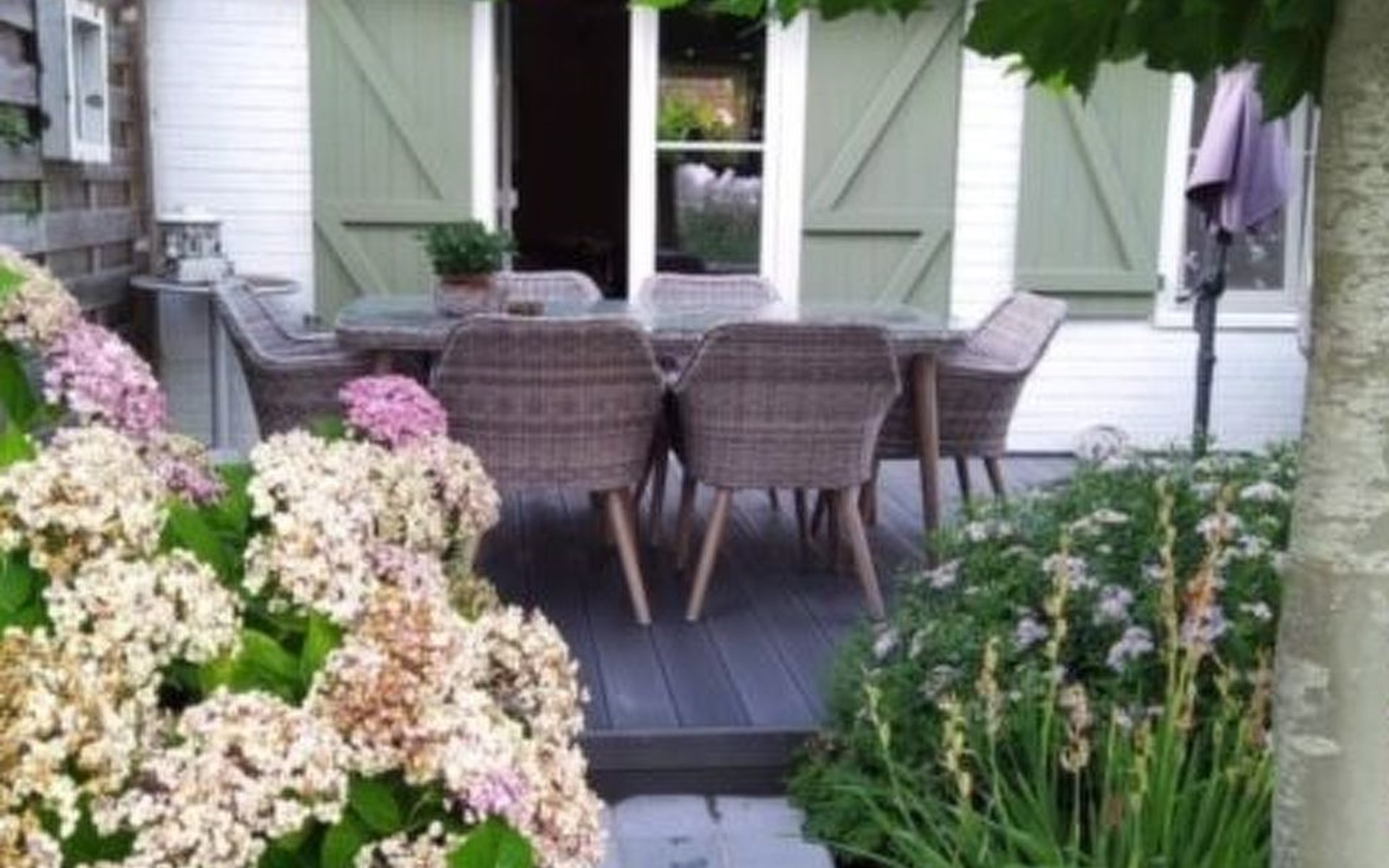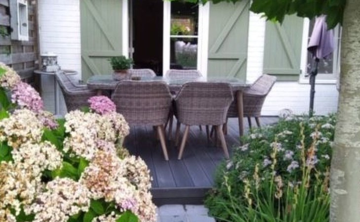 The cottage's outdoor space is as charming as its interior. A fully enclosed garden overlooking the stream offers peace and privacy. The south-facing terrace is equipped with a table, chairs and a parasol, ideal for enjoying meals al fresco. An outdoor lounge invites you to relax and enjoy the peaceful surroundings, while a BBQ and cleaning tools are available in the storage room.
