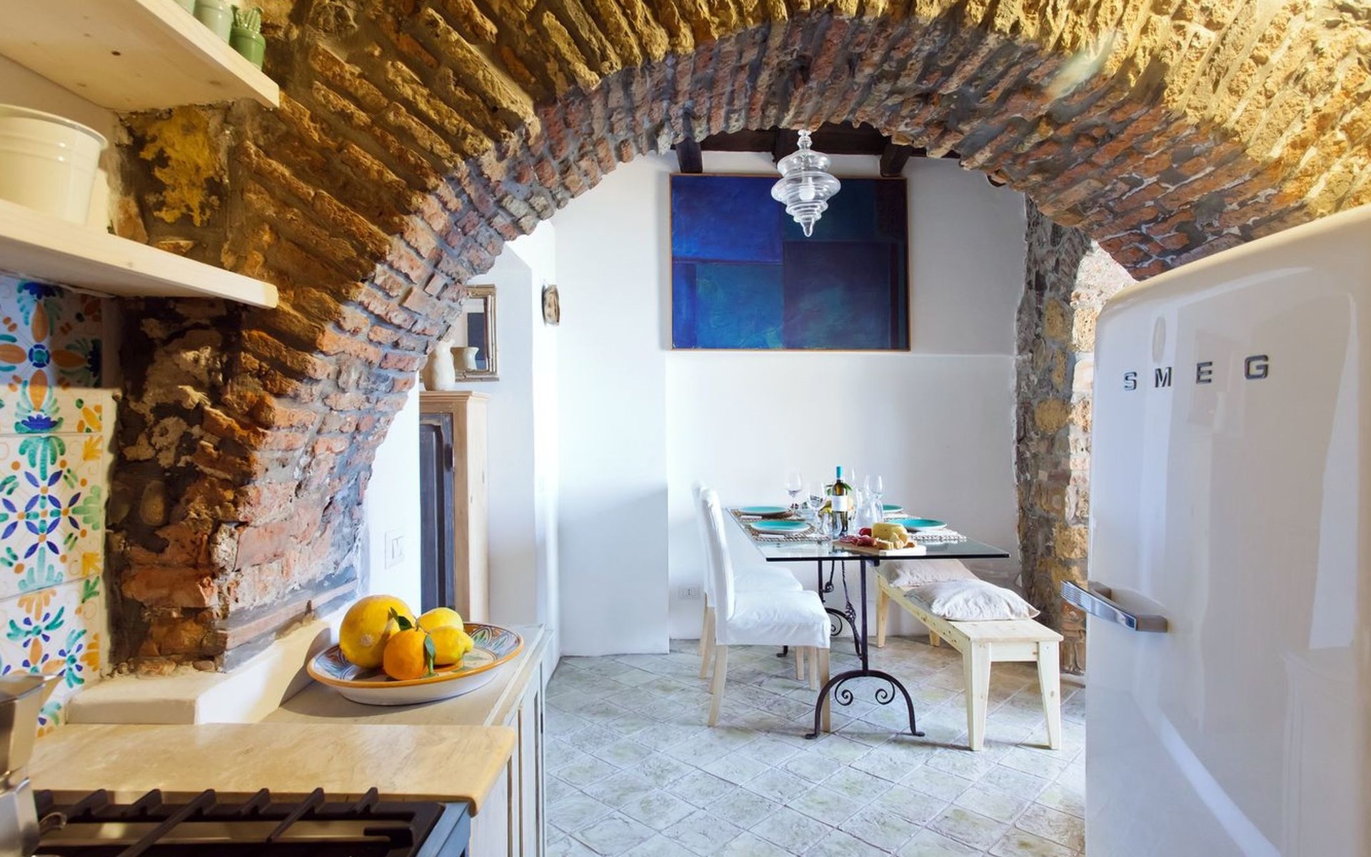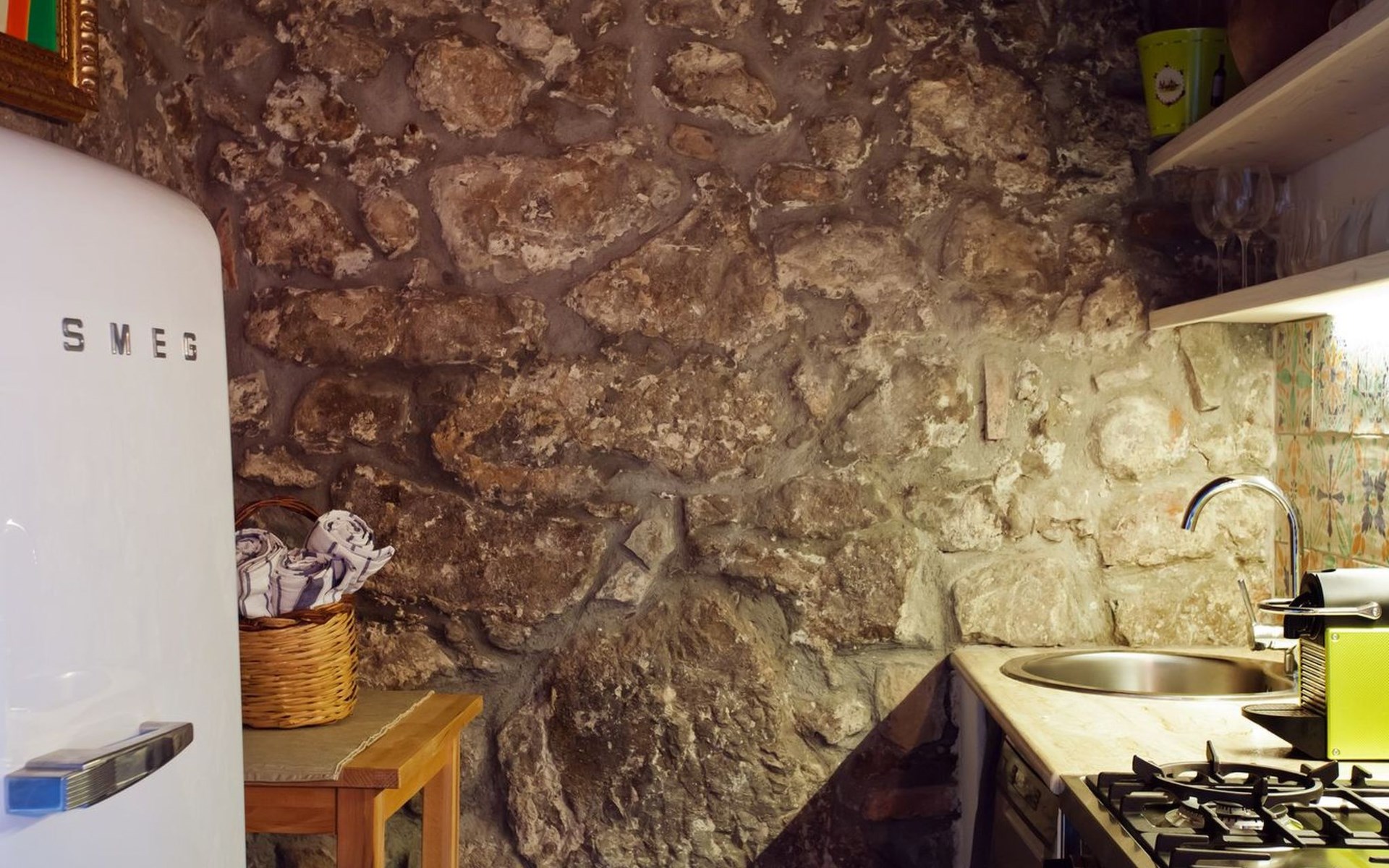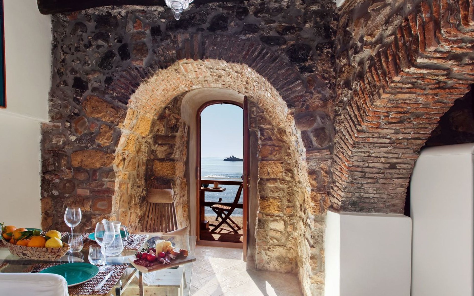 The property is a former fisherman's cottage and had been lovingly restored to highlight the beauty of it's centuries-old brickwork vaulting and wood-beamed ceilings. The small apartment is spread over a ground floor. The apartment, as its name suggests, really is a "nest at the sea."