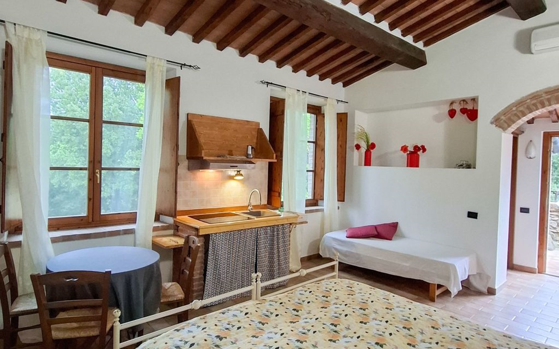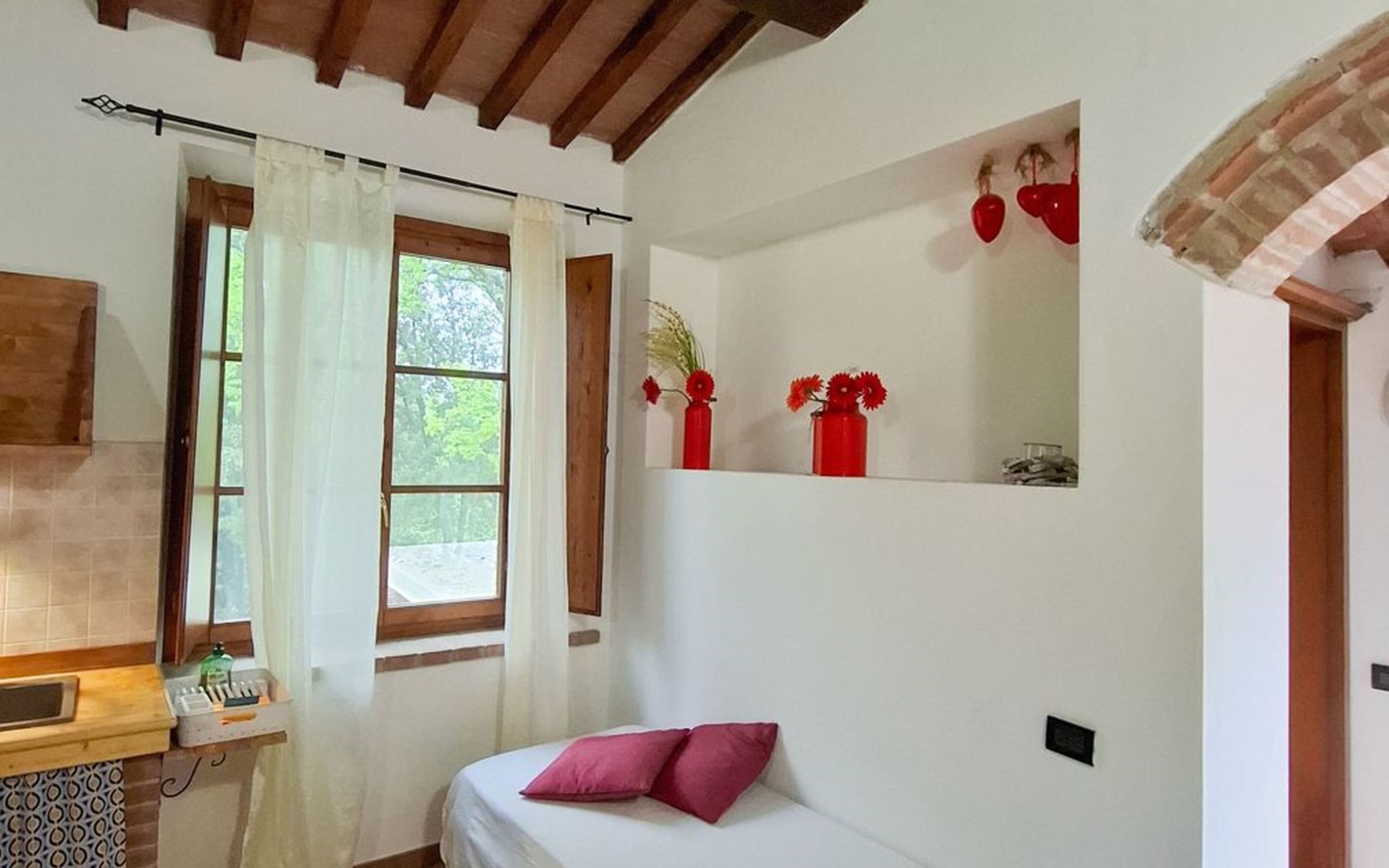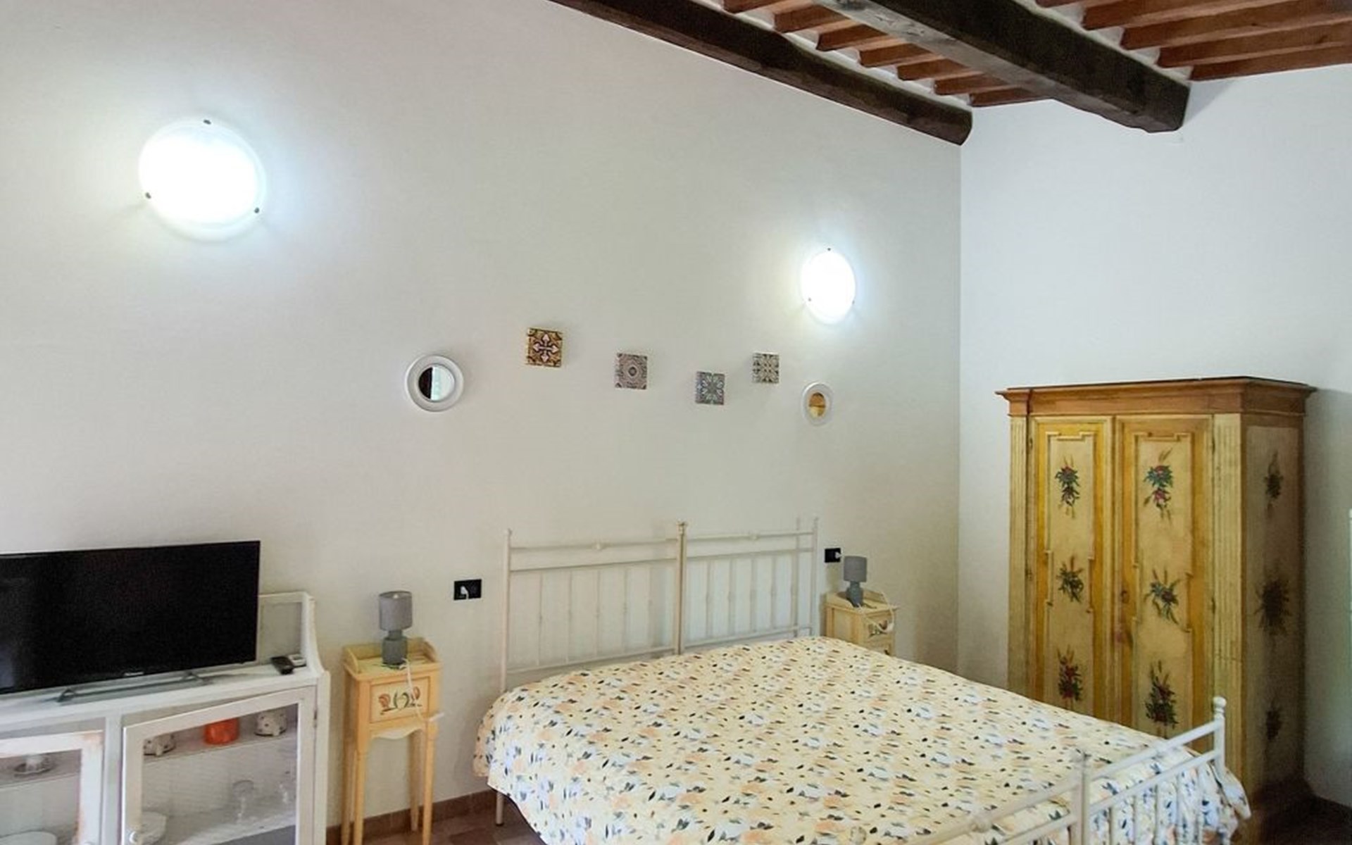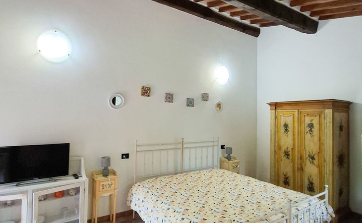 Guests have access to a shared swimming pool, perfect for cooling off on hot days or relaxing under the Tuscan sun. The shared garden invites for quiet moments outdoors, perhaps reading a book or enjoying a coffee prepared with the coffee maker available in the flat. The environment is ideal for those who wish to bring their pets with them, as they are allowed in this enchanting space.
